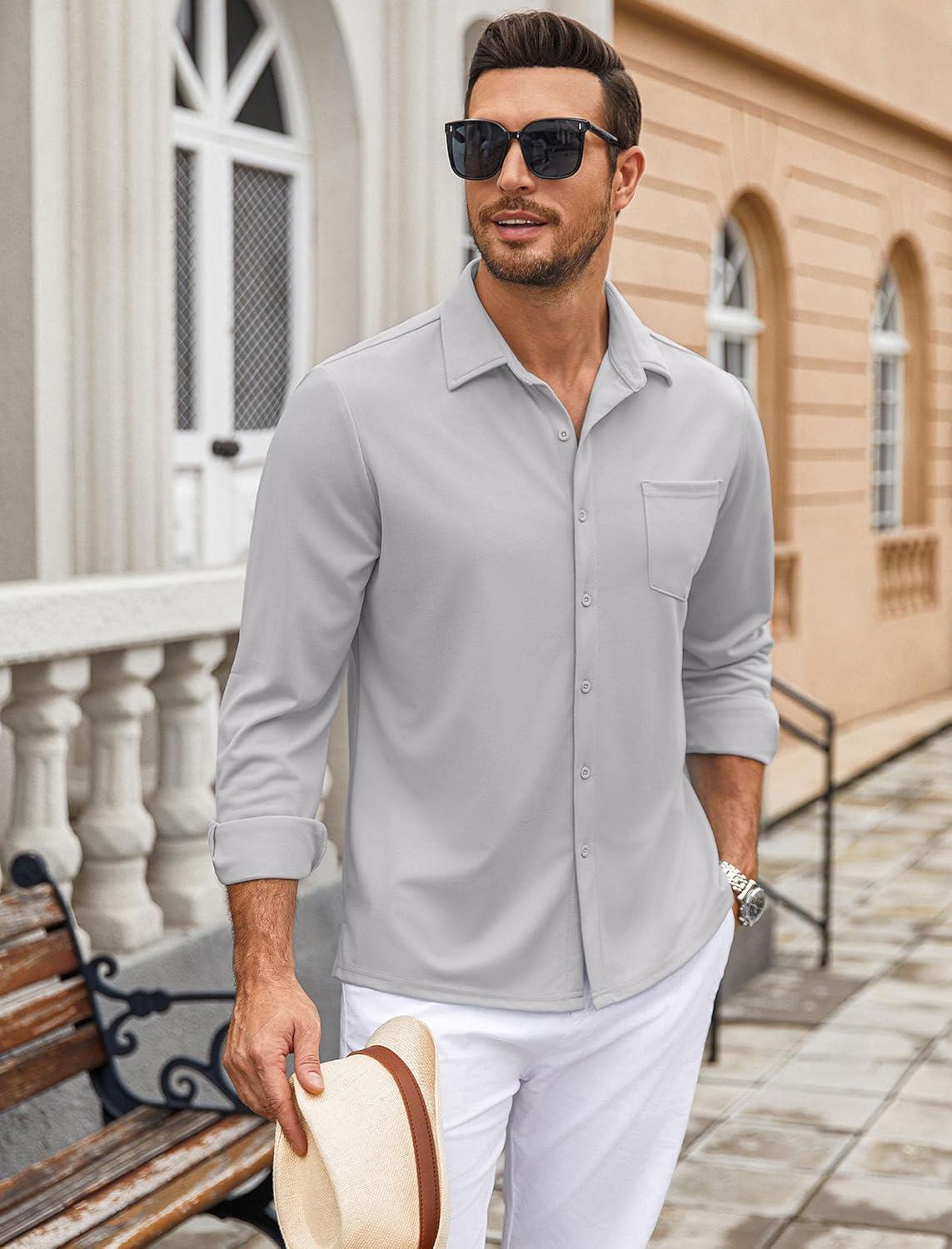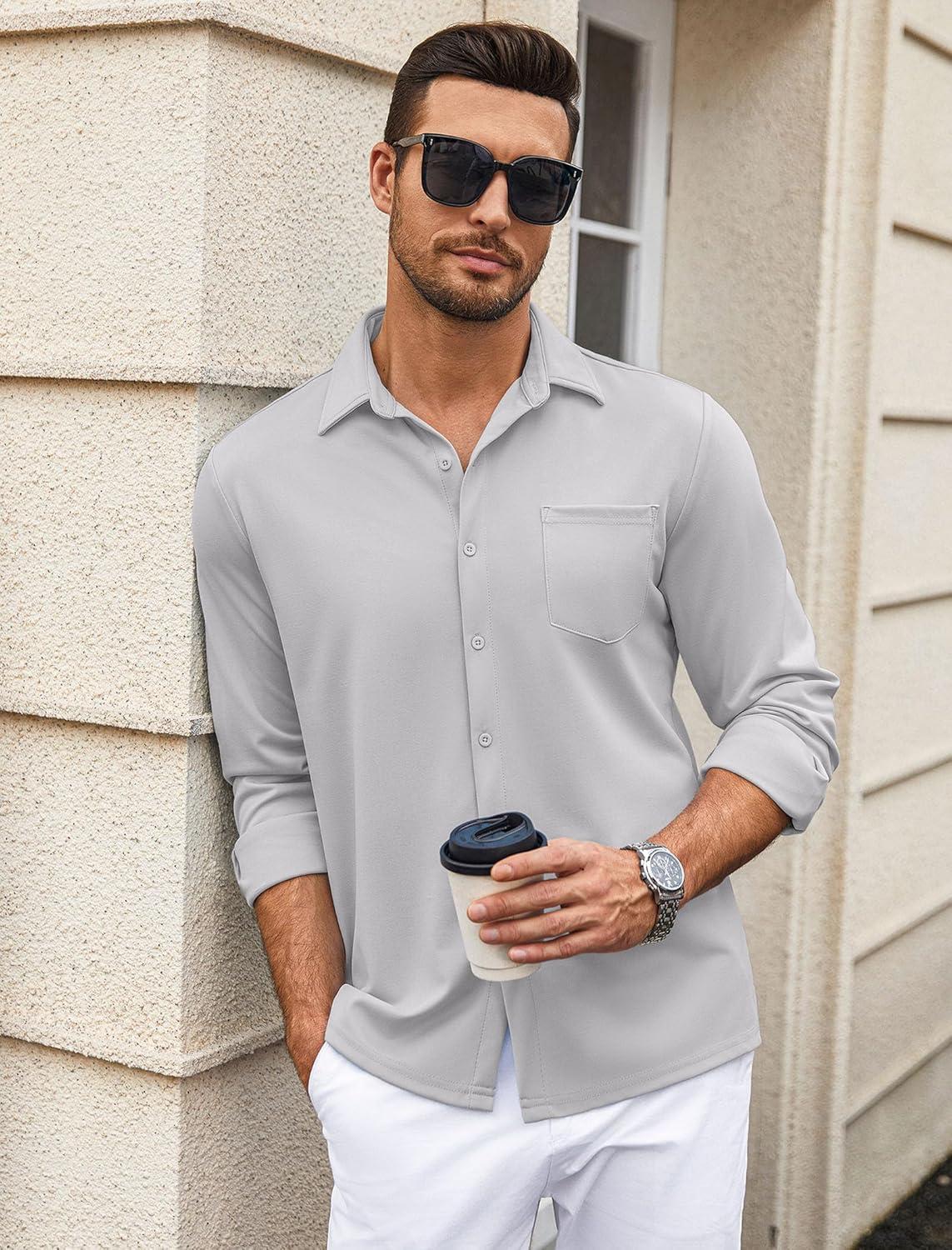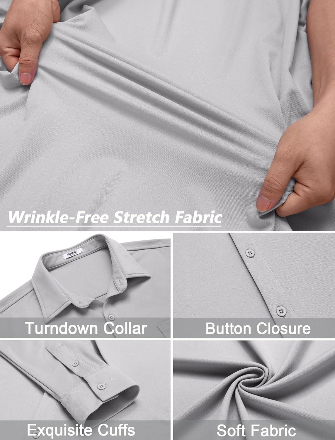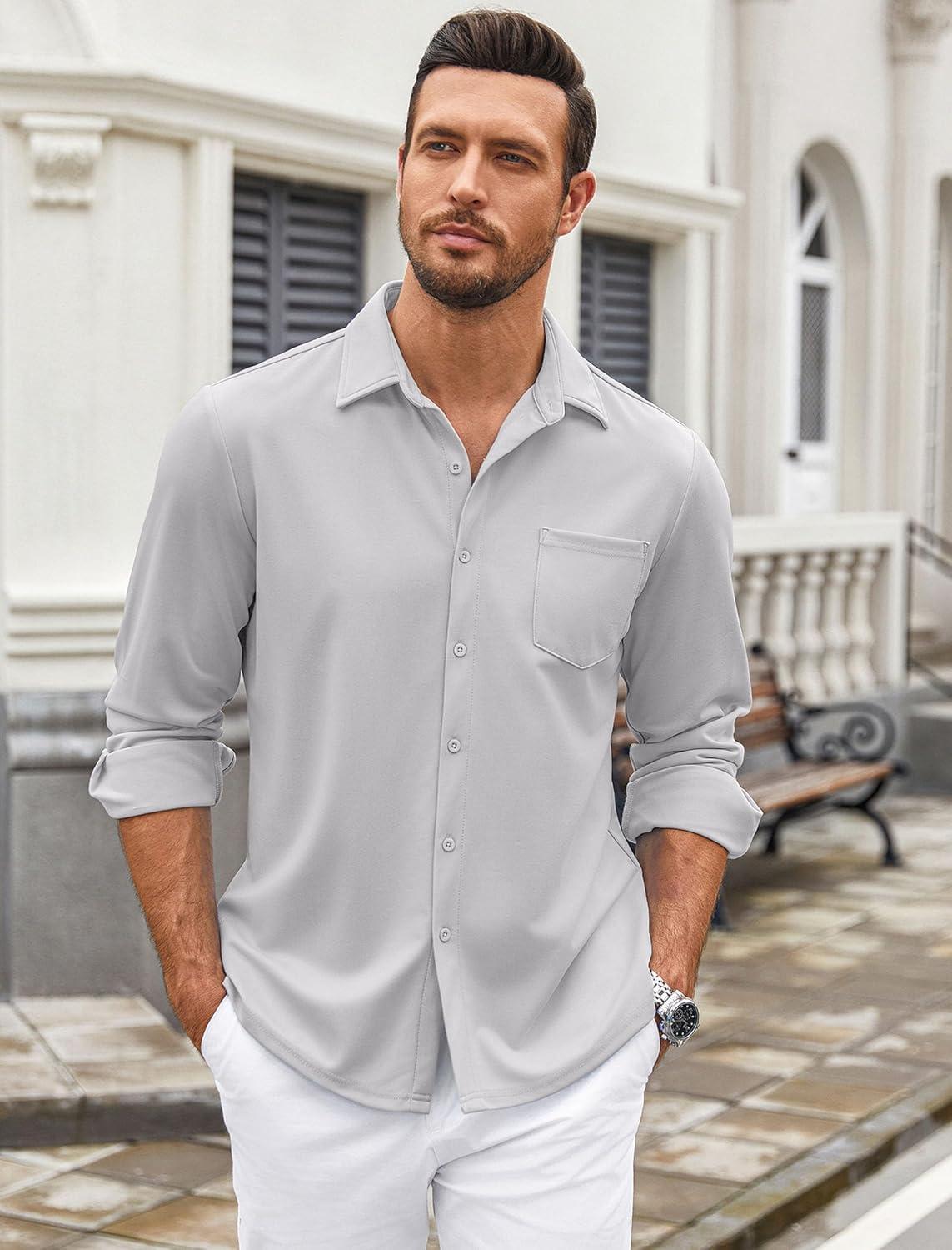 COOFANDY Mens Wrinkle Free Dress Shirts Long Sleeve Untucked Shirts Casual Button Down Shirts(Light Grey)