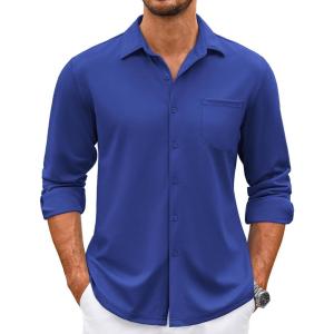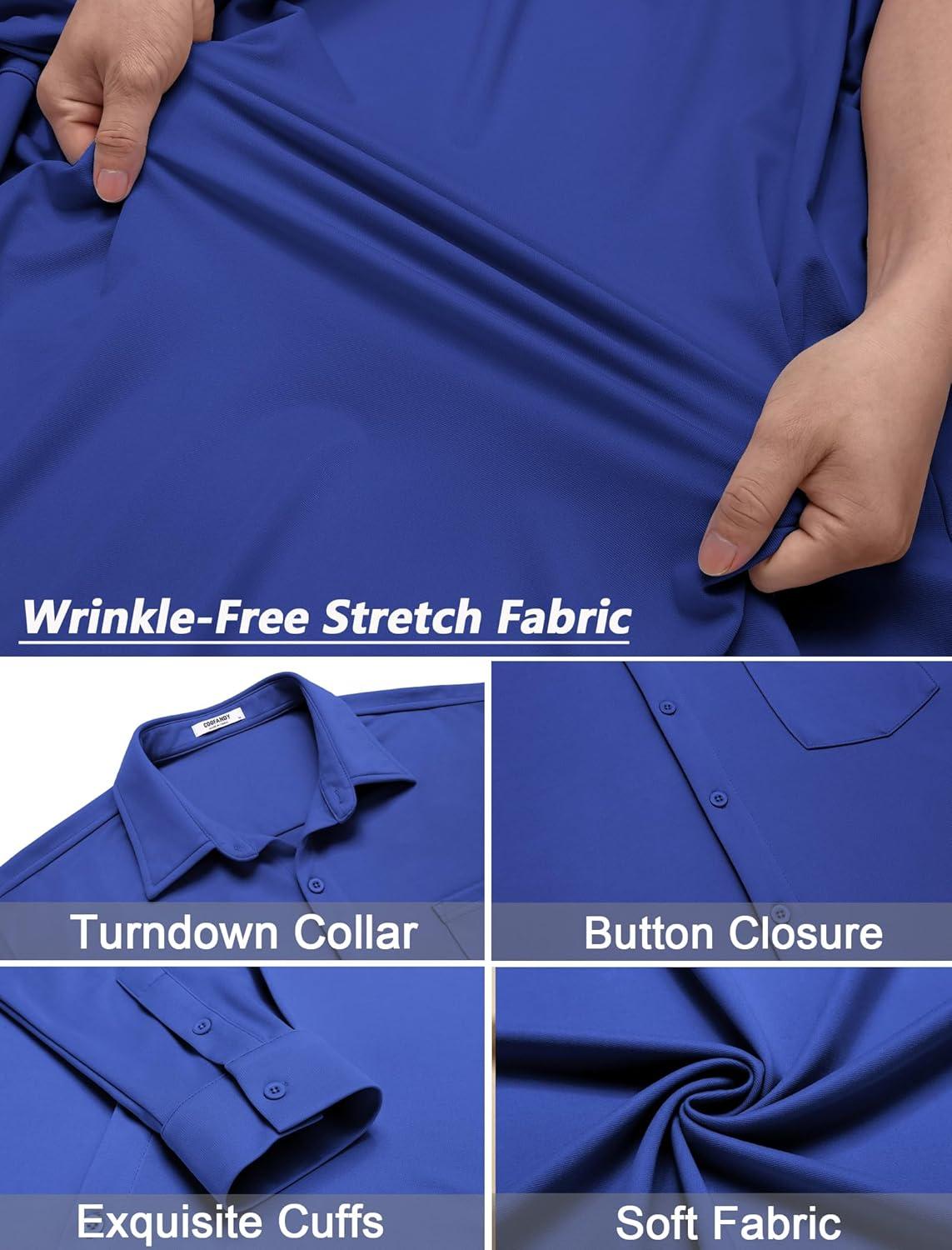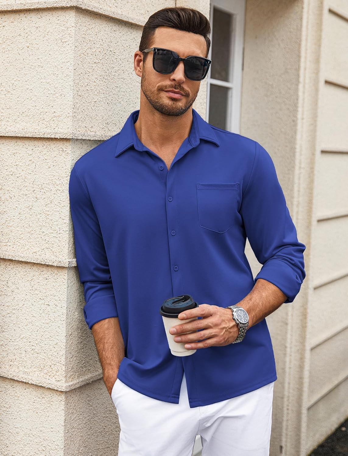 COOFANDY Mens Wrinkle Free Dress Shirts Long Sleeve Untucked Shirts Casual Button Down Shirts(Royal Blue)