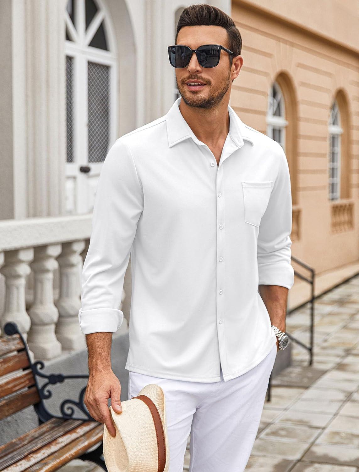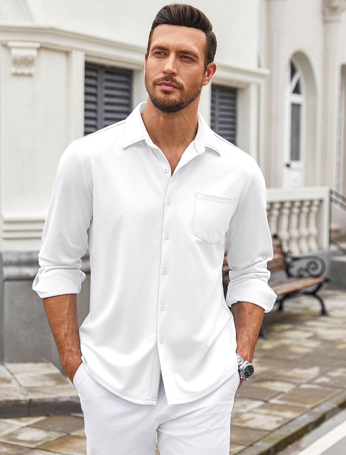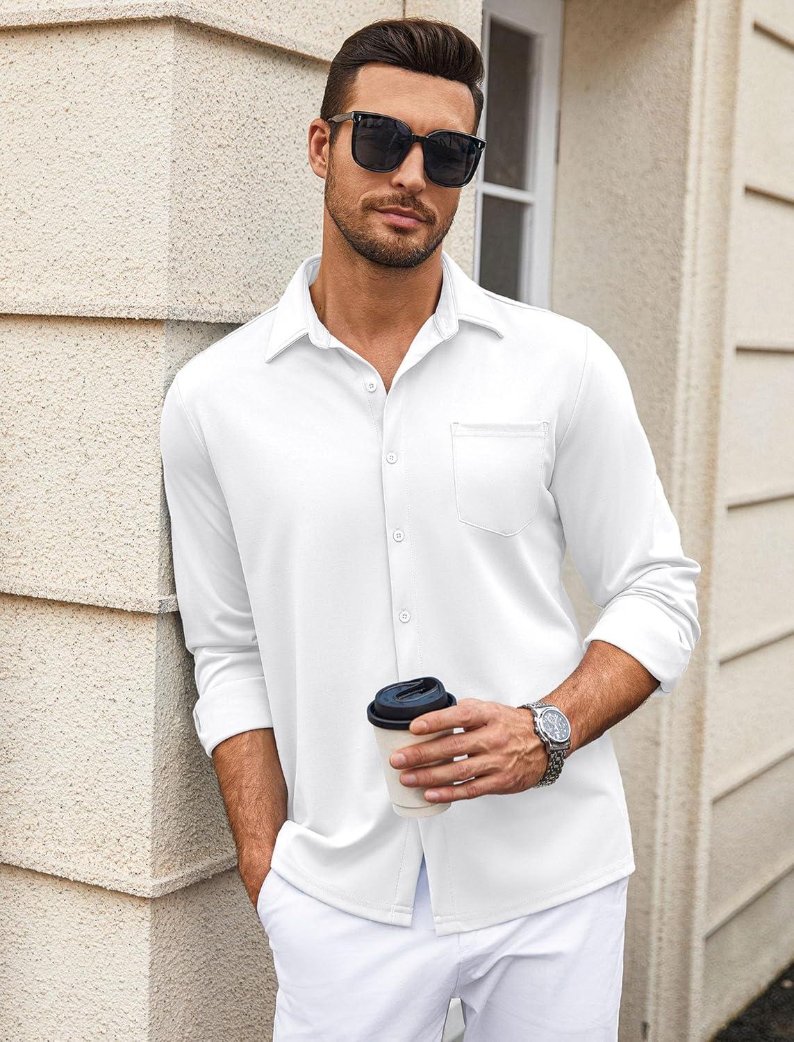 COOFANDY Mens Wrinkle Free Dress Shirts Long Sleeve Untucked Shirts Casual Button Down Shirts(White)
