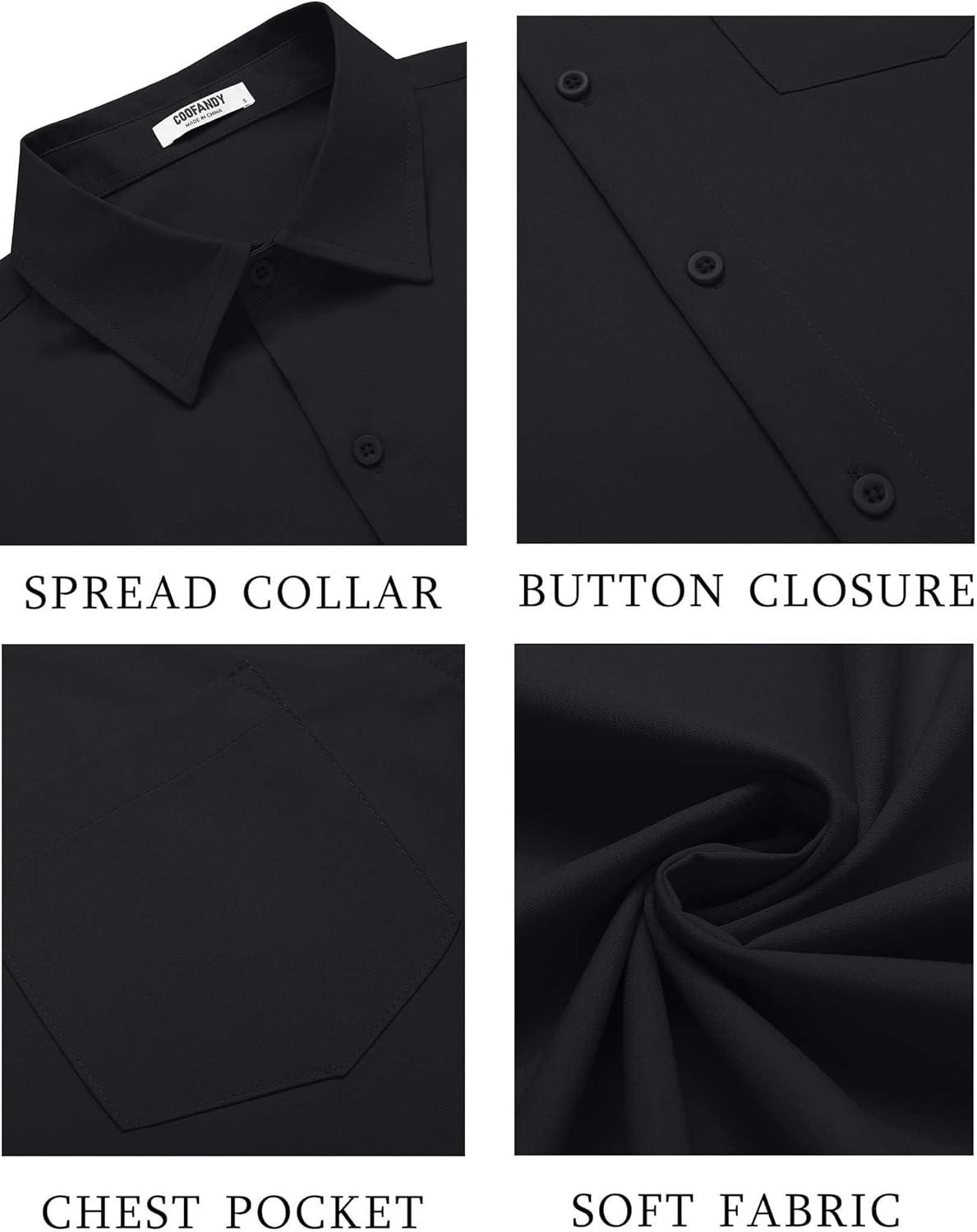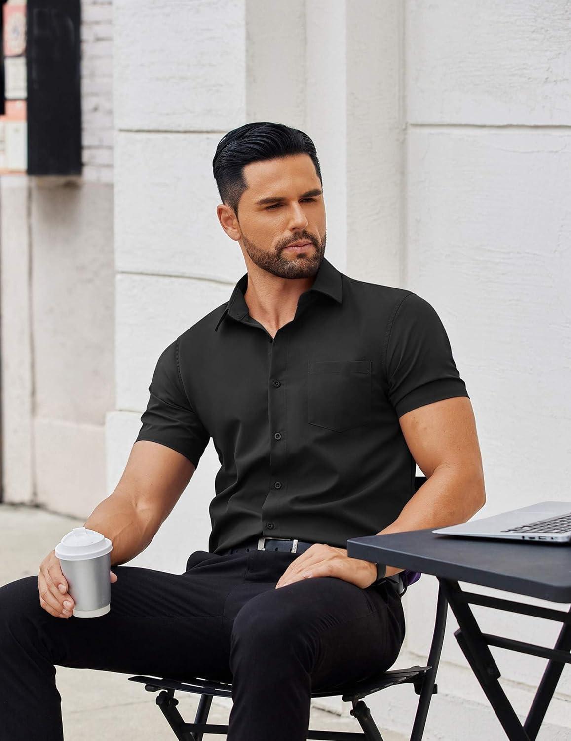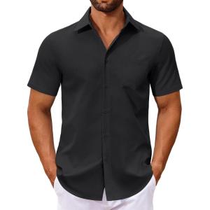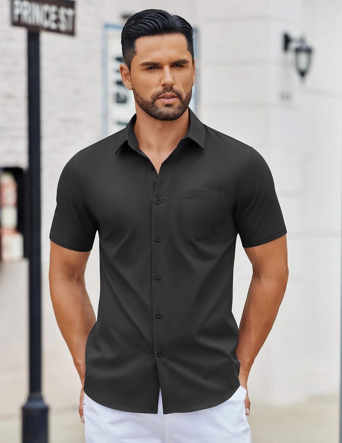 COOFANDY Men’s Button Down Shirts Short Sleeve Casual Dress Shirts Untucked Summer Shirt with Pocket(Black)