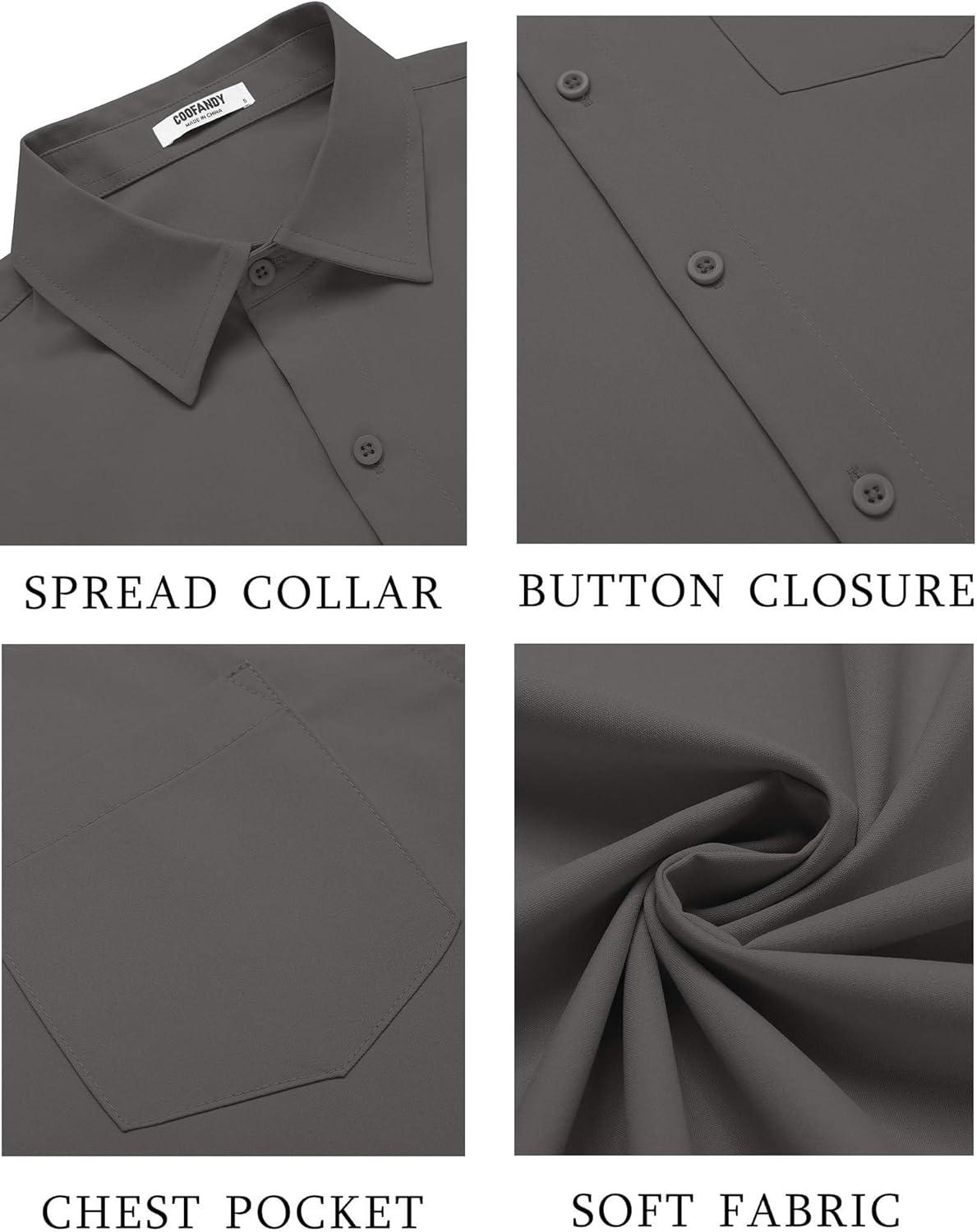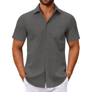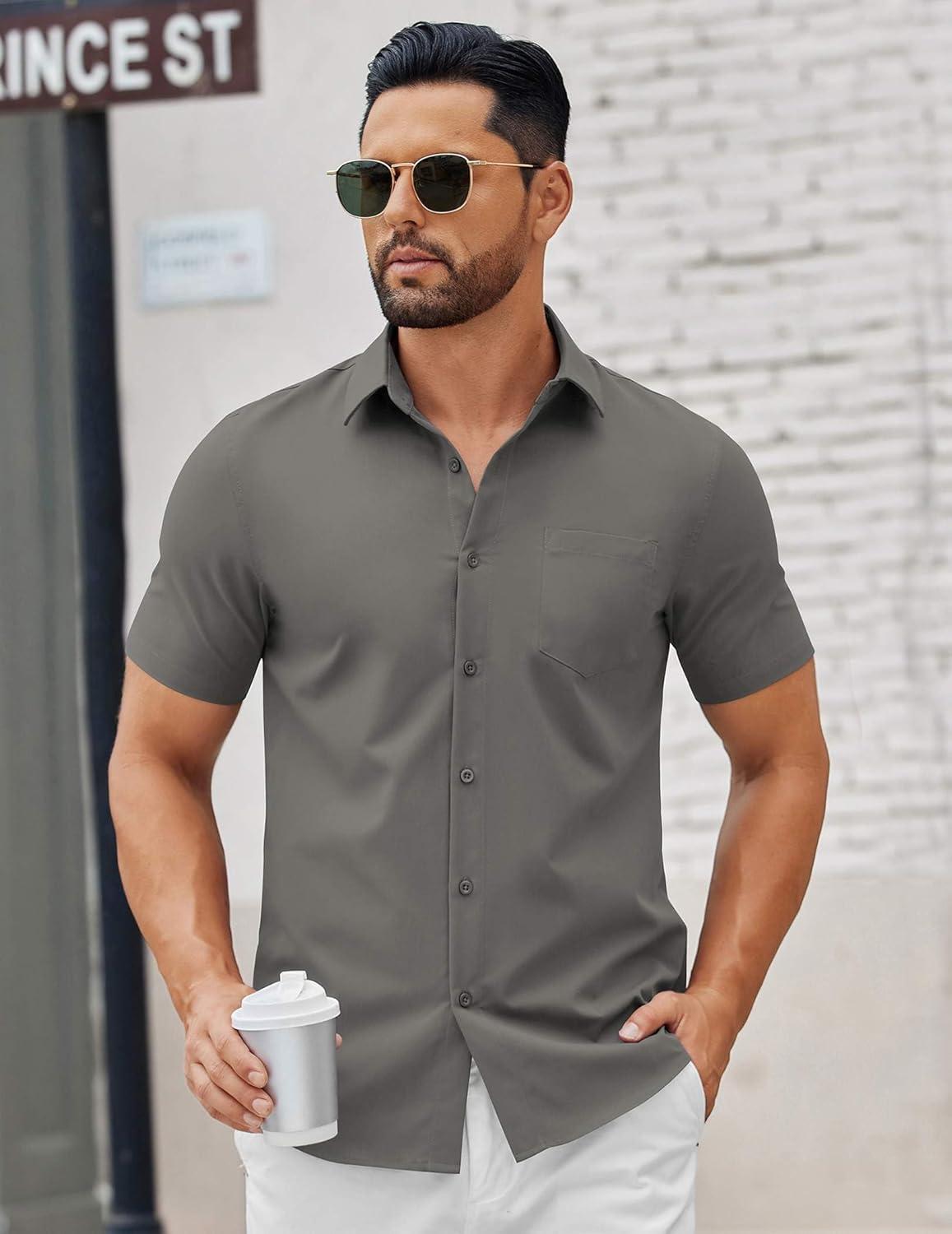 COOFANDY Men’s Button Down Shirts Short Sleeve Casual Dress Shirts Untucked Summer Shirt with Pocket(Dark Grey)