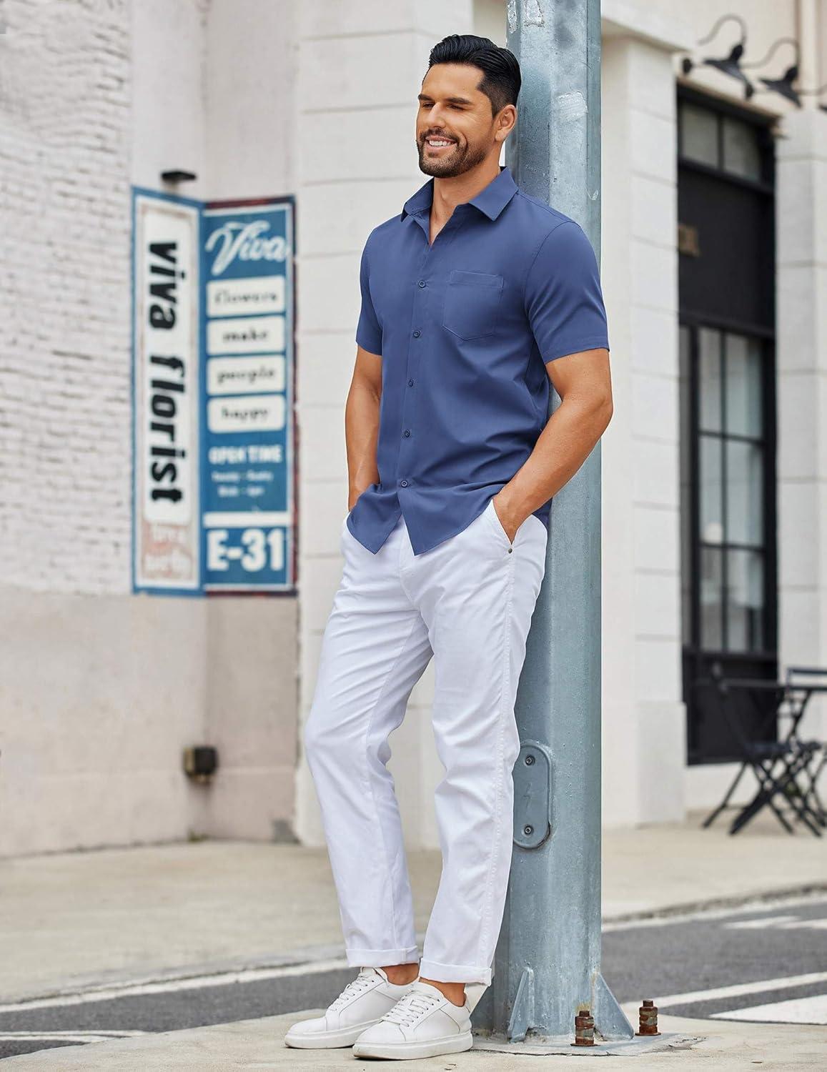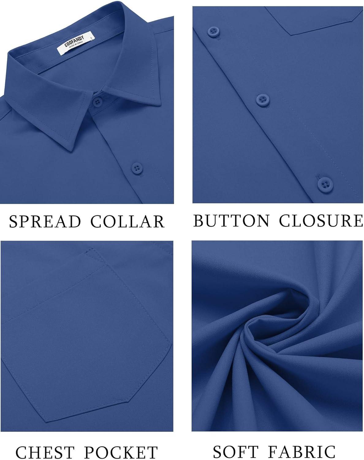 COOFANDY Men’s Button Down Shirts Short Sleeve Casual Dress Shirts Untucked Summer Shirt with Pocket(Denim Blue)