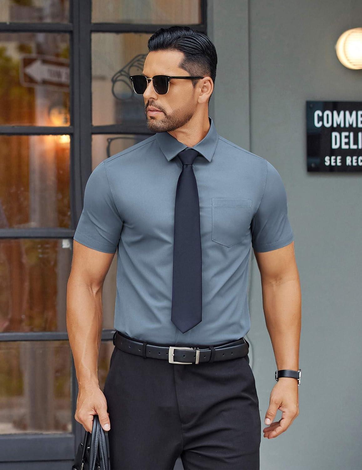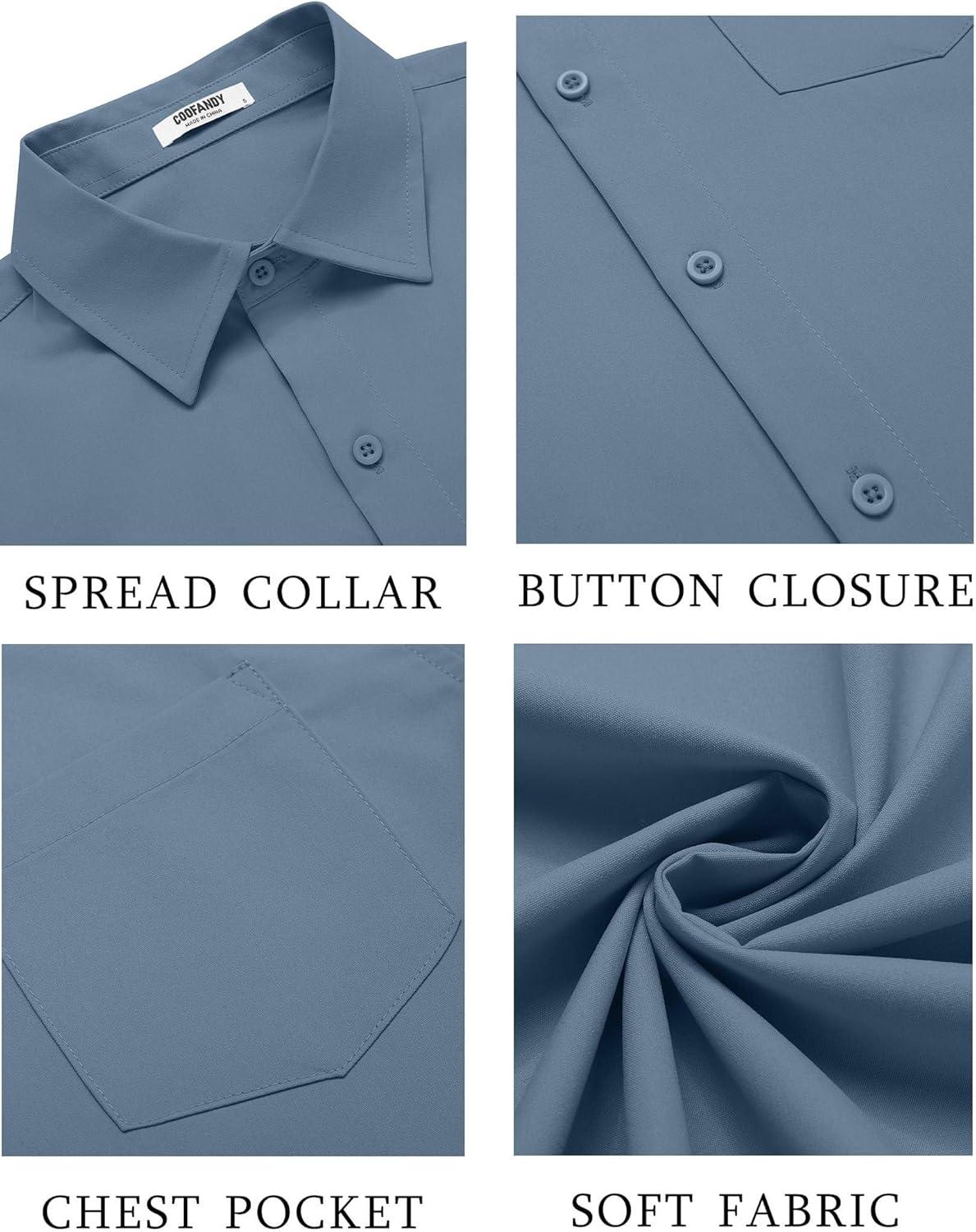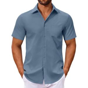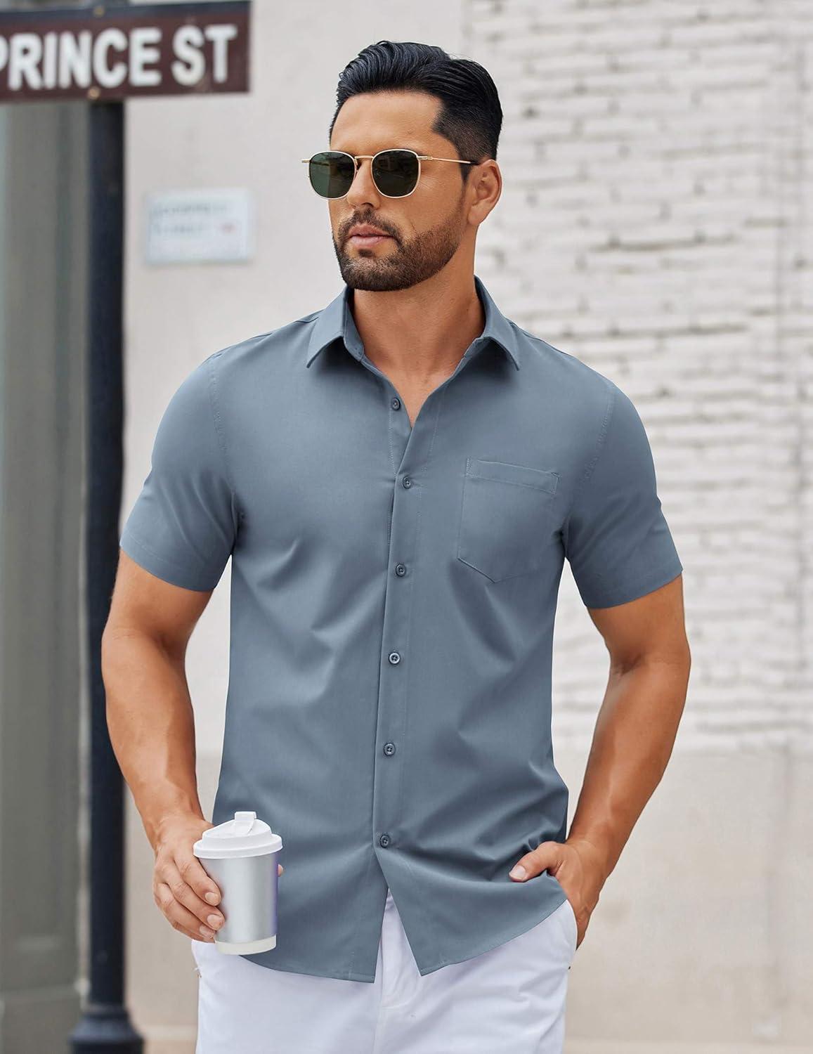 COOFANDY Men’s Button Down Shirts Short Sleeve Casual Dress Shirts Untucked Summer Shirt with Pocket(Grey Blue)