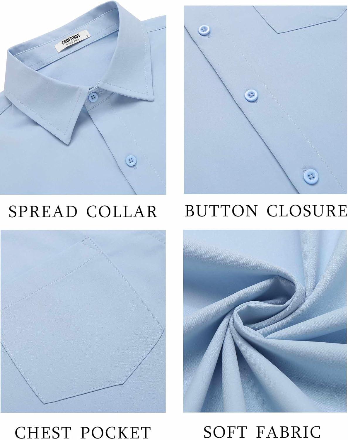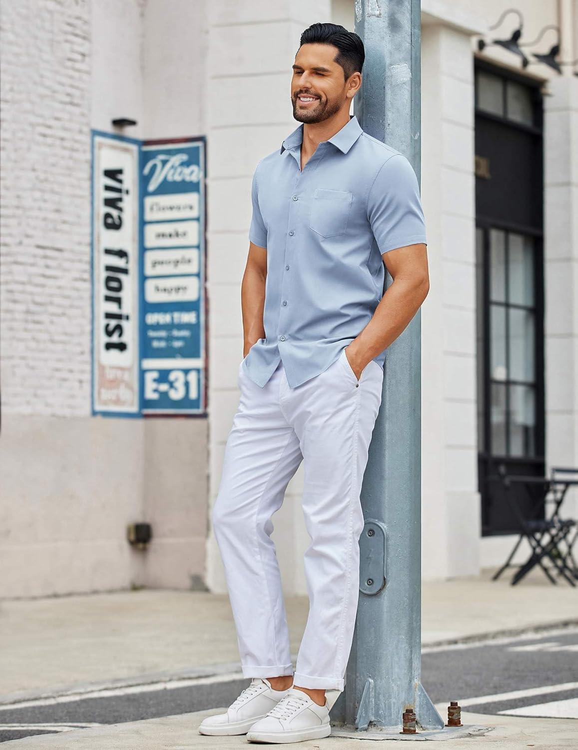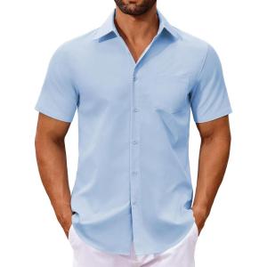 COOFANDY Men’s Button Down Shirts Short Sleeve Casual Dress Shirts Untucked Summer Shirt with Pocket(Light Blue)