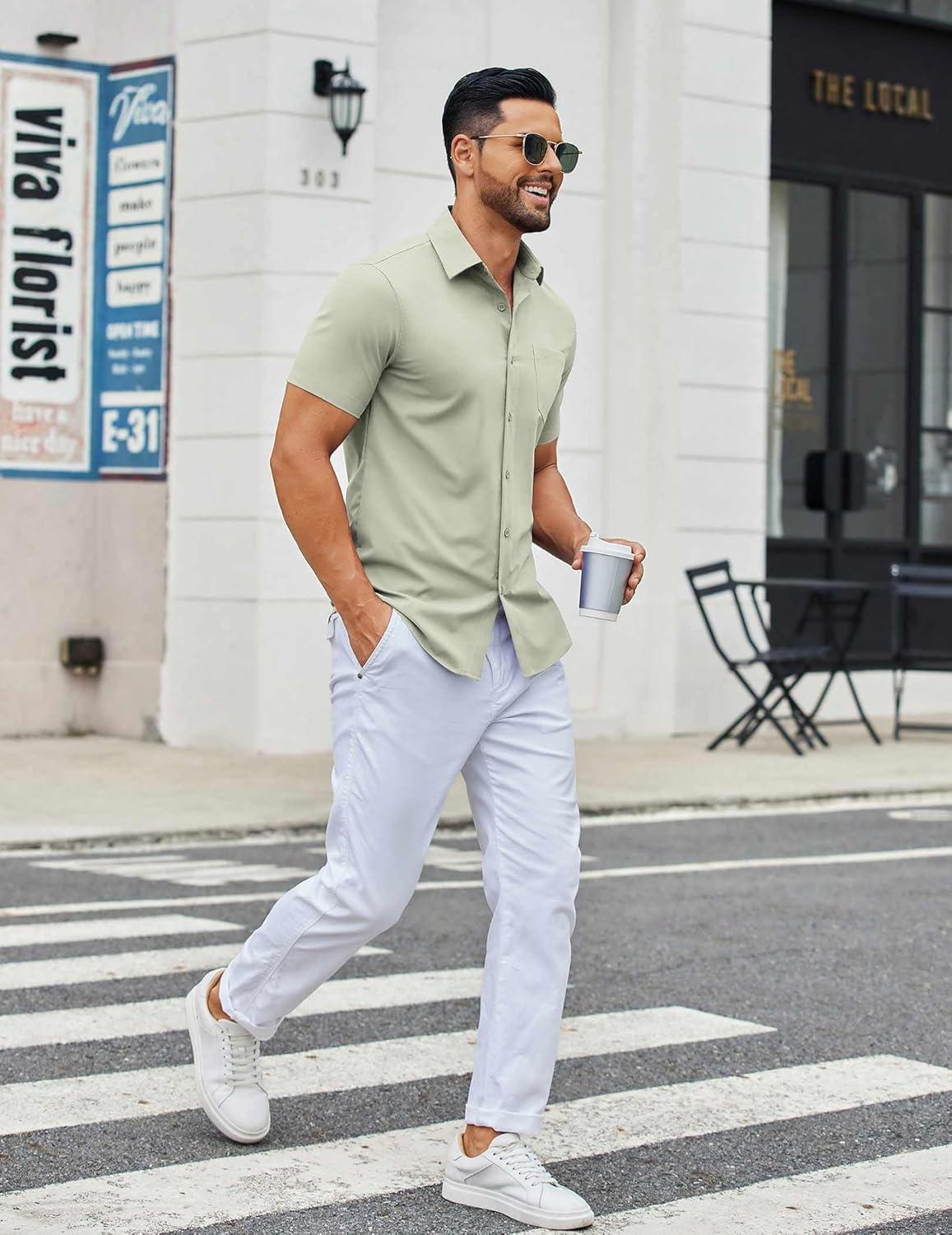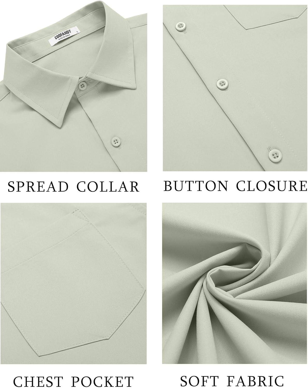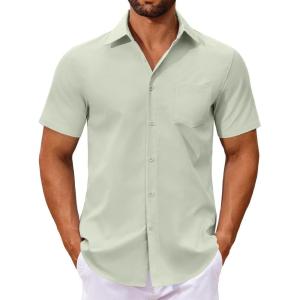 COOFANDY Men’s Button Down Shirts Short Sleeve Casual Dress Shirts Untucked Summer Shirt with Pocket(Light Green)