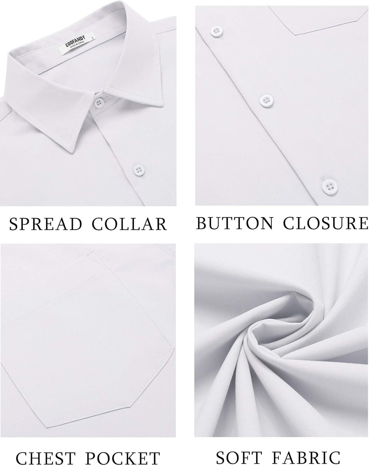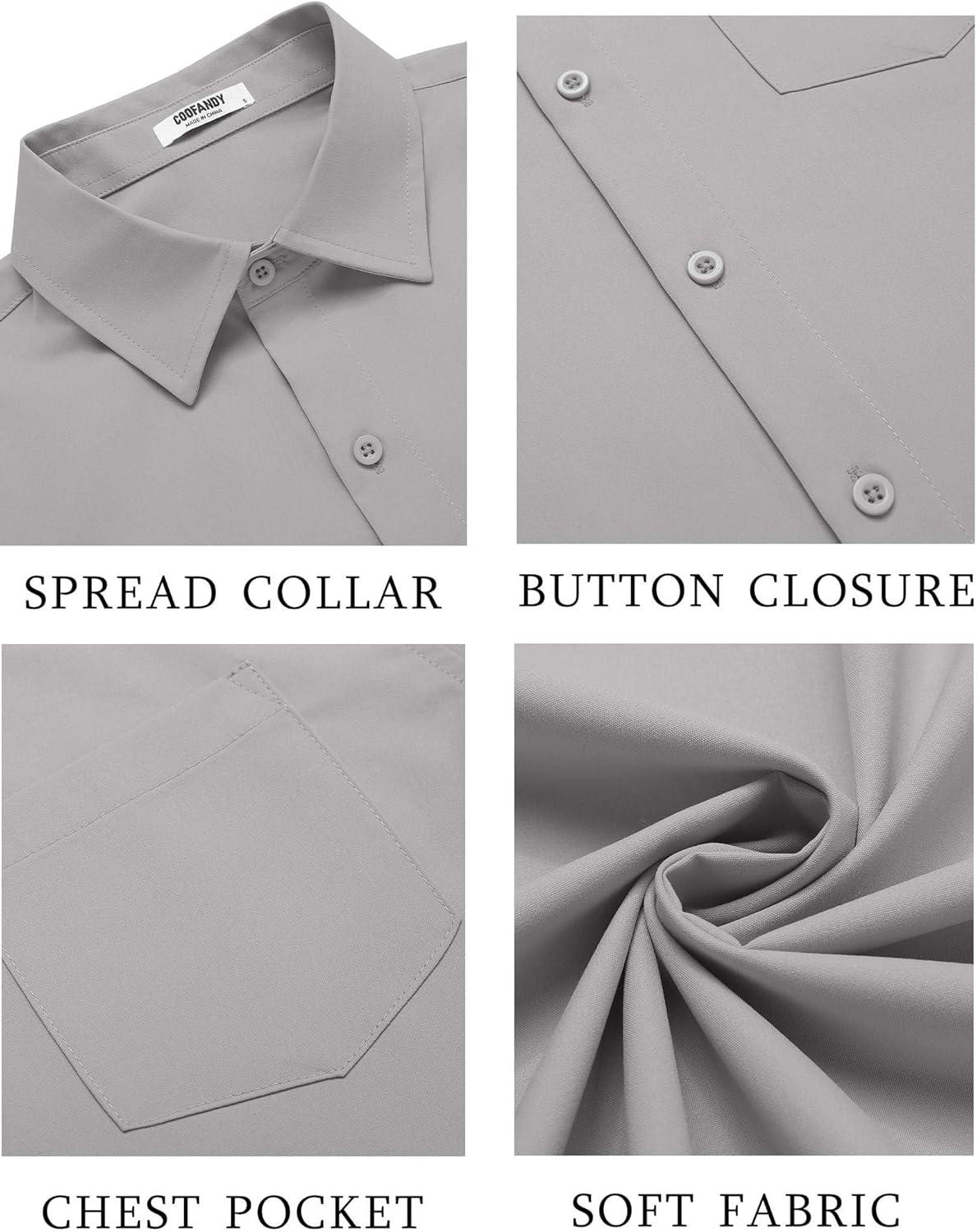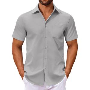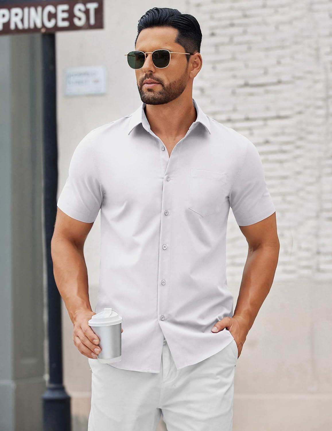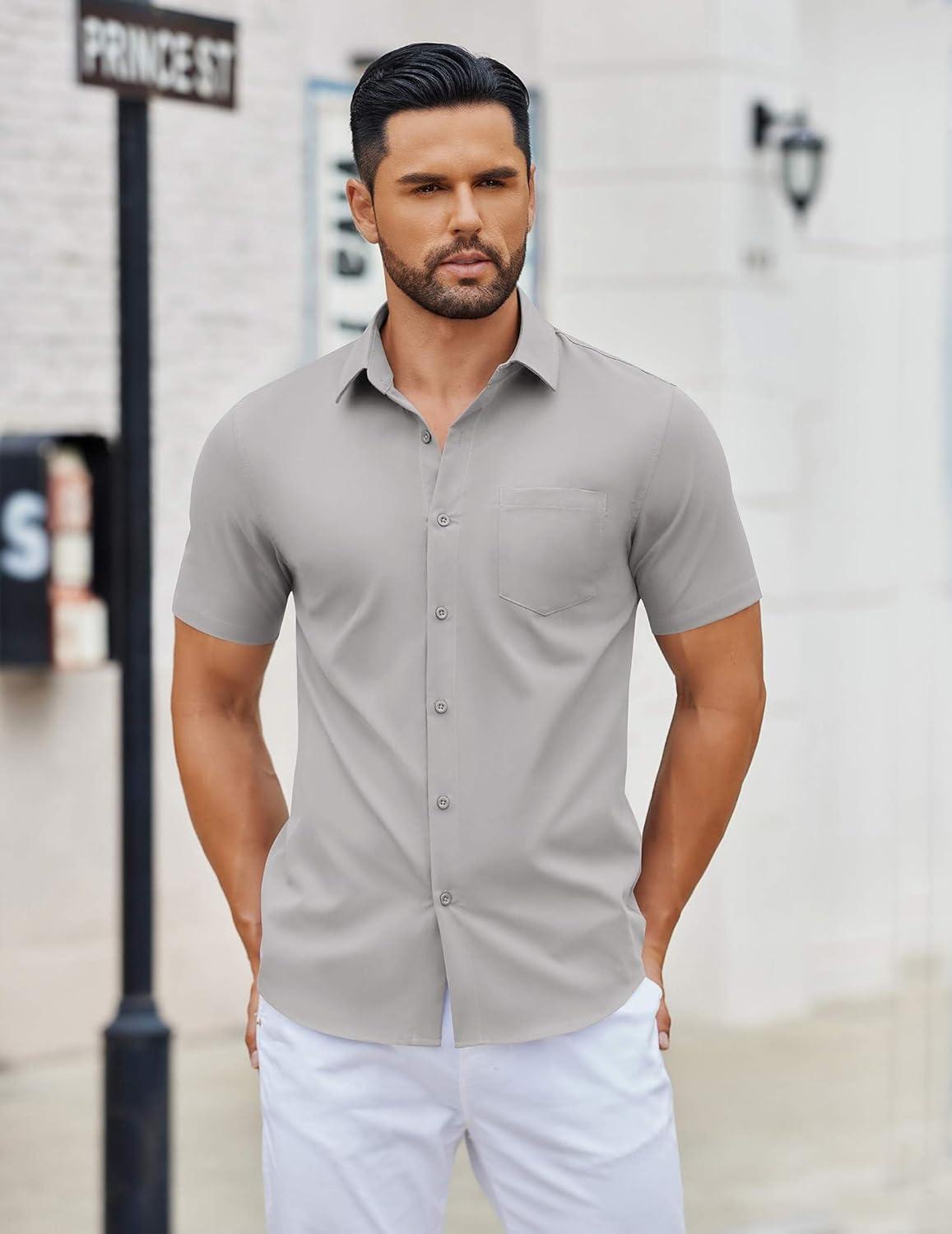 COOFANDY Men’s Button Down Shirts Short Sleeve Casual Dress Shirts Untucked Summer Shirt with Pocket(Light Grey)