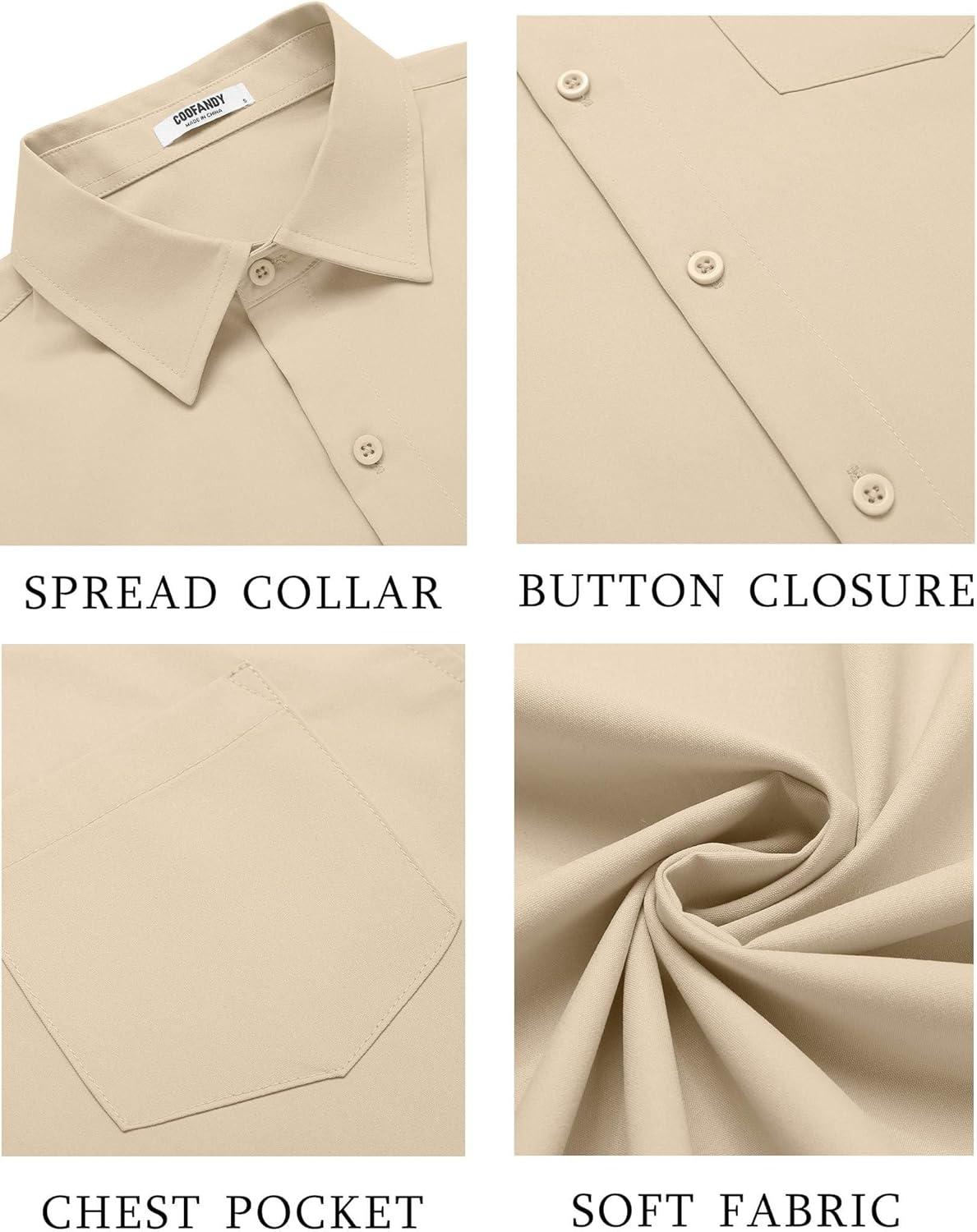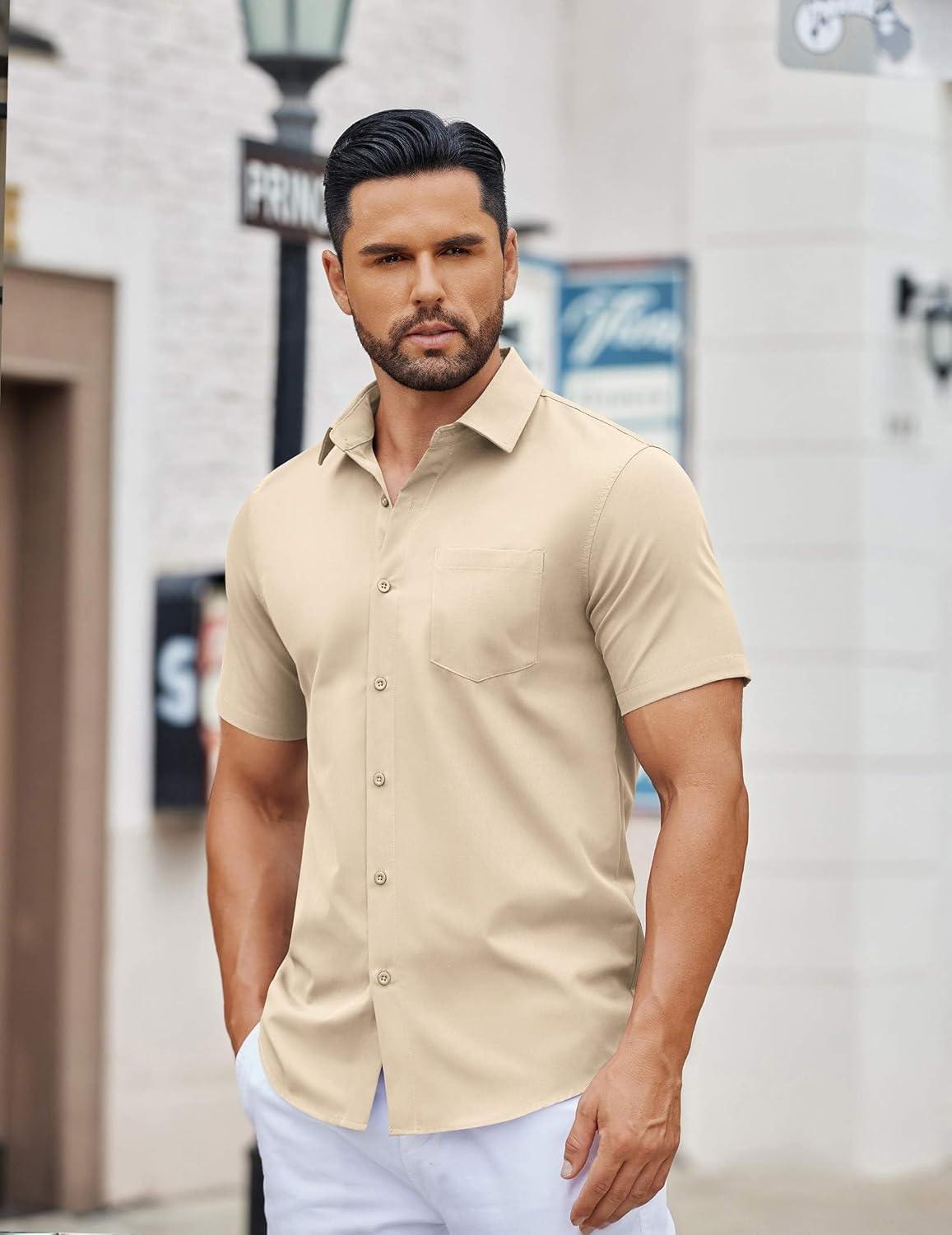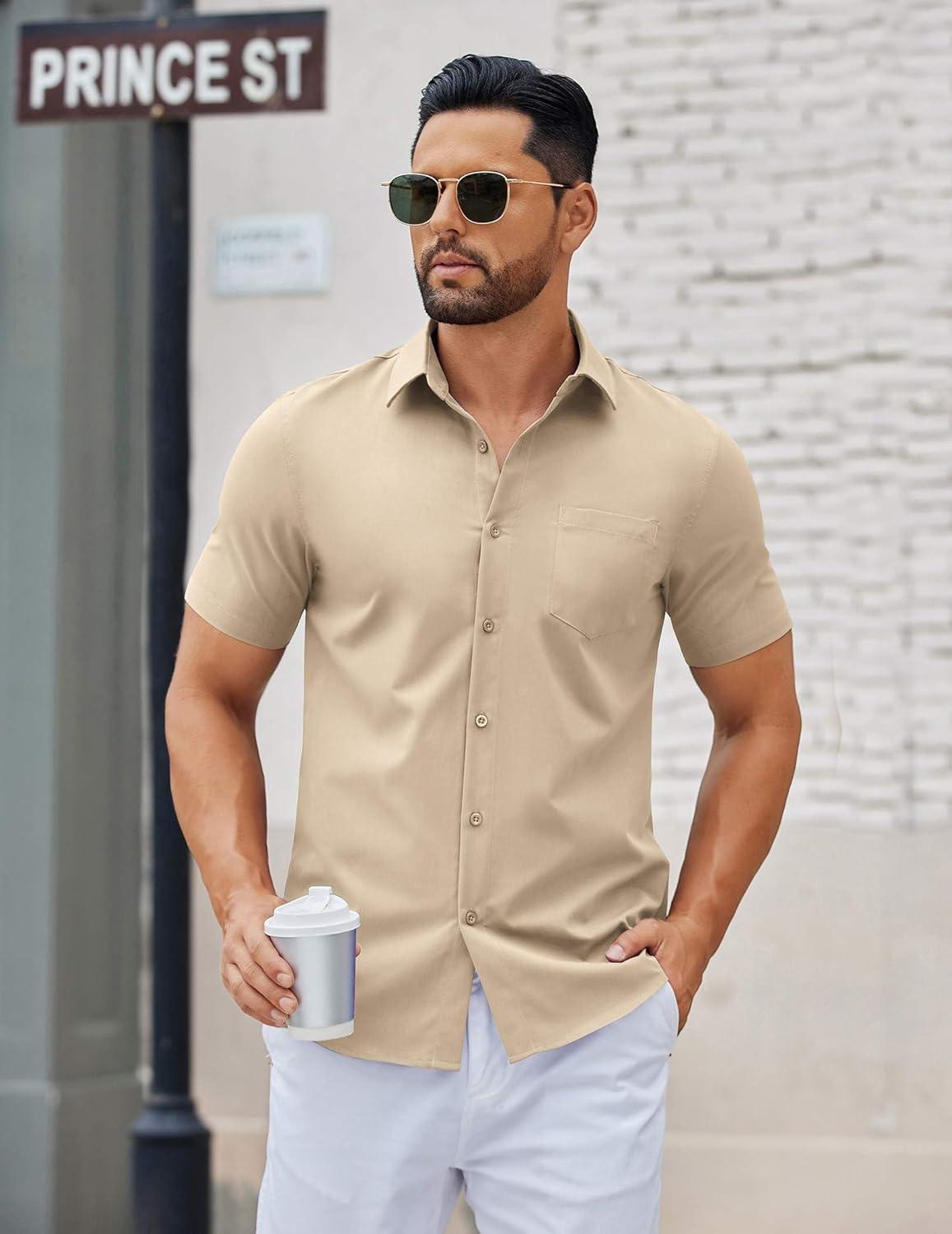 COOFANDY Men’s Button Down Shirts Short Sleeve Casual Dress Shirts Untucked Summer Shirt with Pocket(Light Khaki)