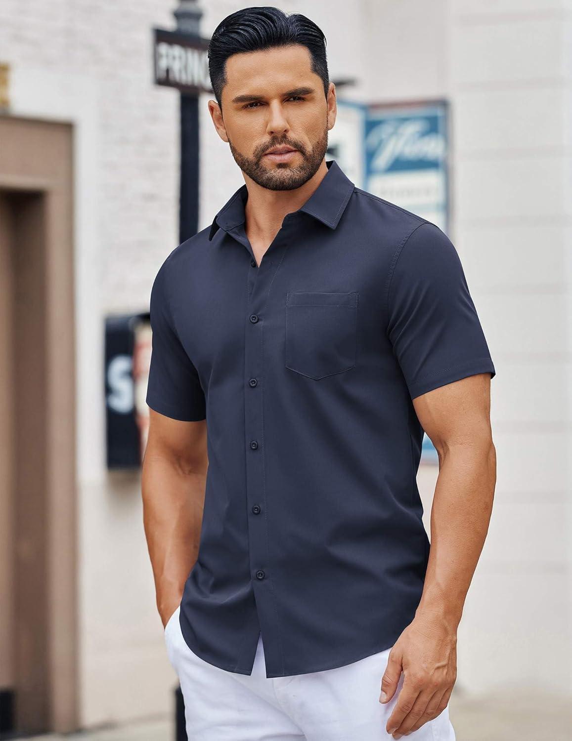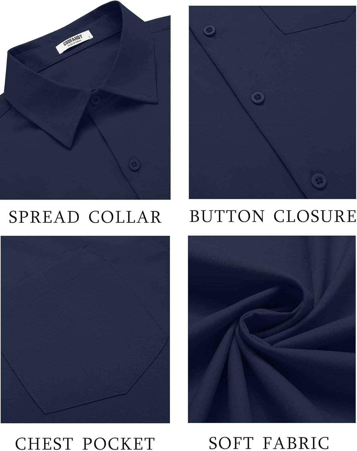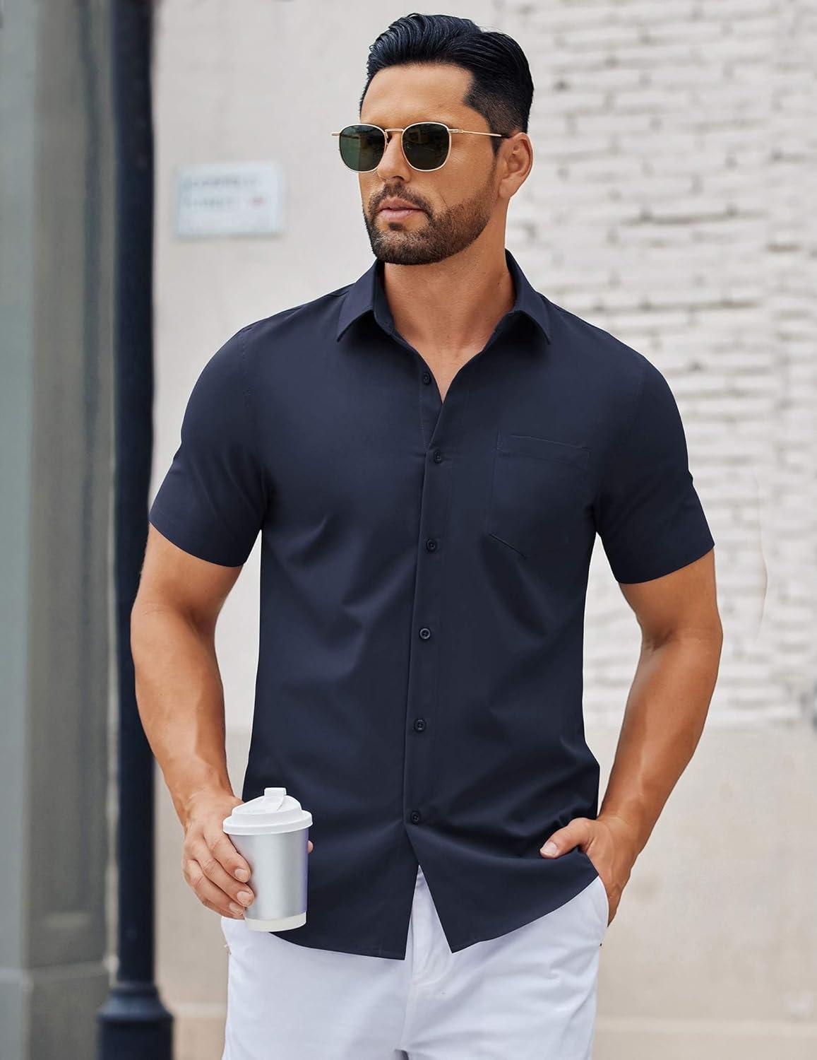 COOFANDY Men’s Button Down Shirts Short Sleeve Casual Dress Shirts Untucked Summer Shirt with Pocket(Navy Blue)