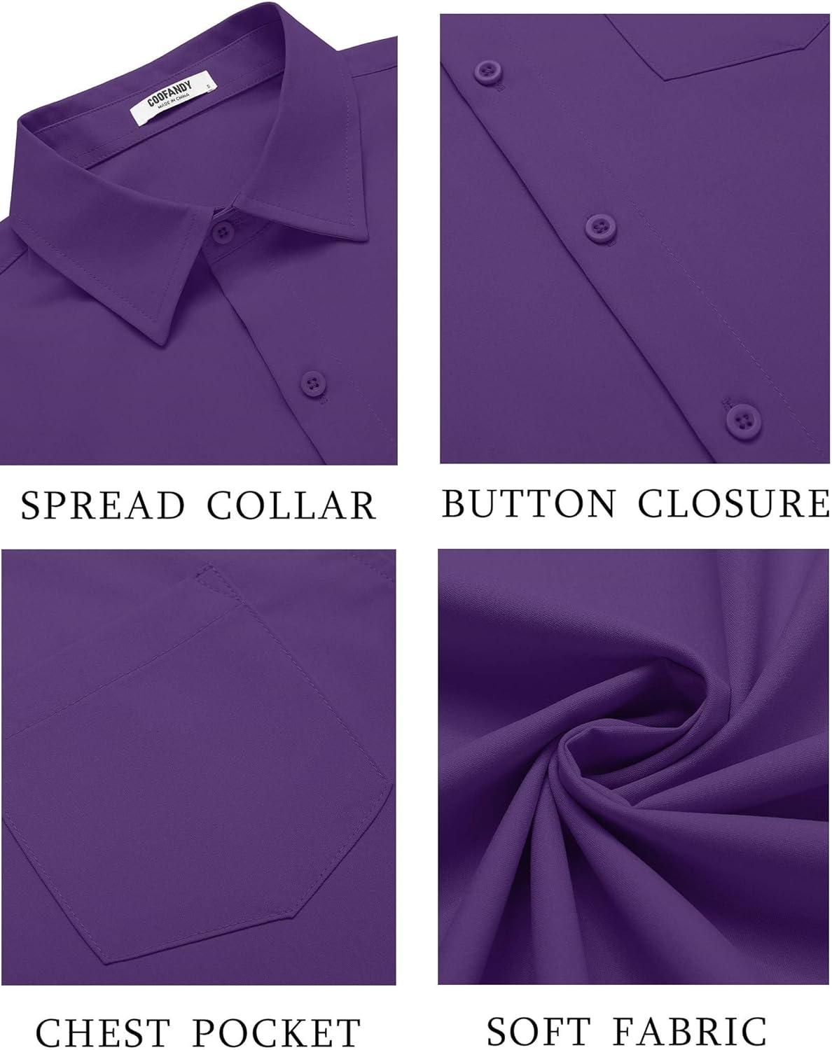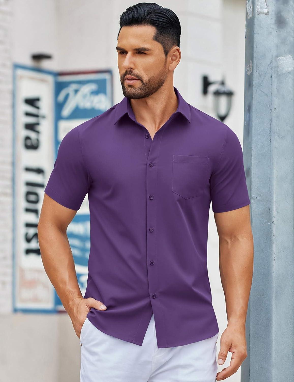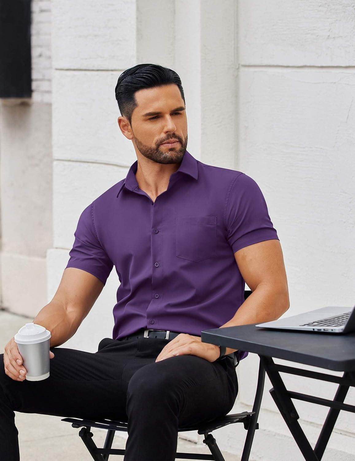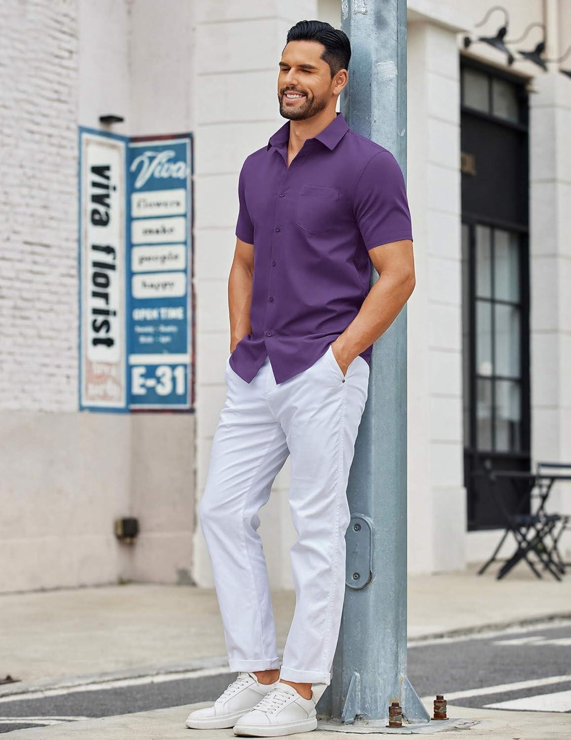 COOFANDY Men’s Button Down Shirts Short Sleeve Casual Dress Shirts Untucked Summer Shirt with Pocket(Purple)