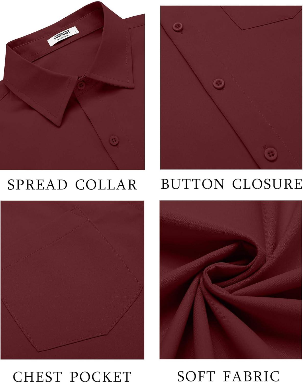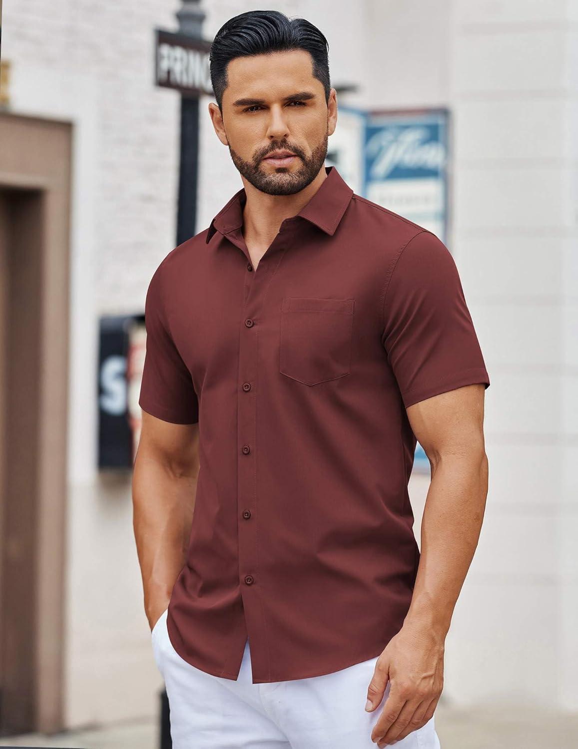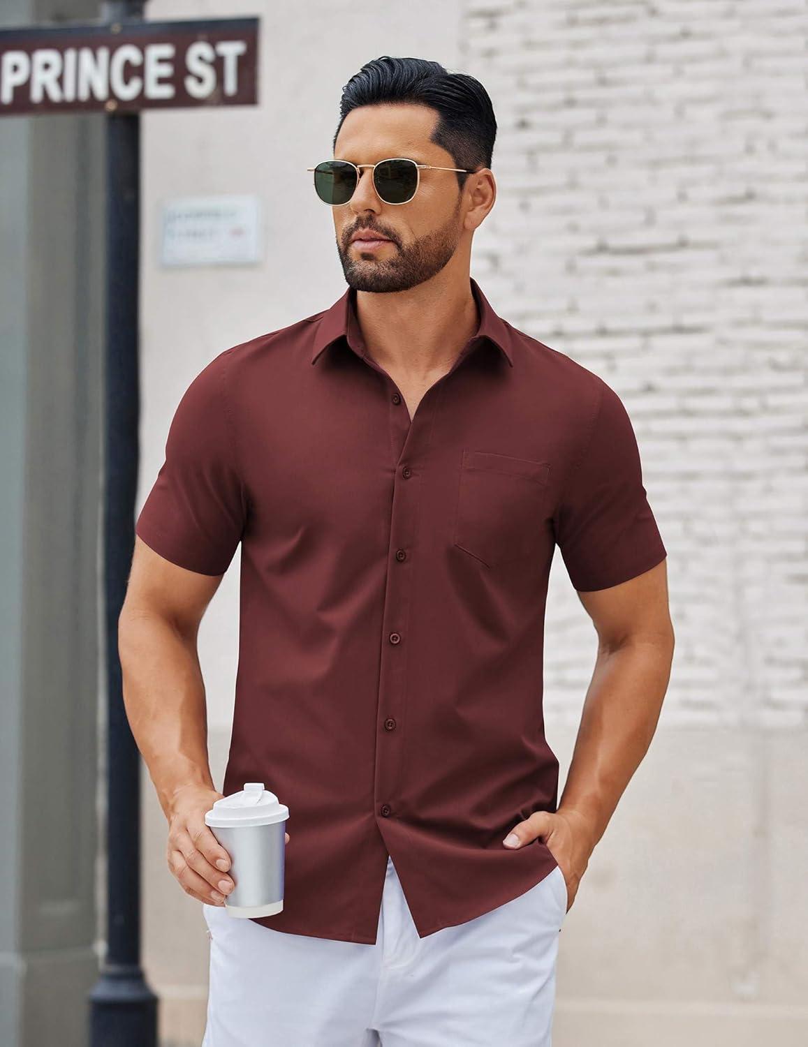 COOFANDY Men’s Button Down Shirts Short Sleeve Casual Dress Shirts Untucked Summer Shirt with Pocket(Wine Red)