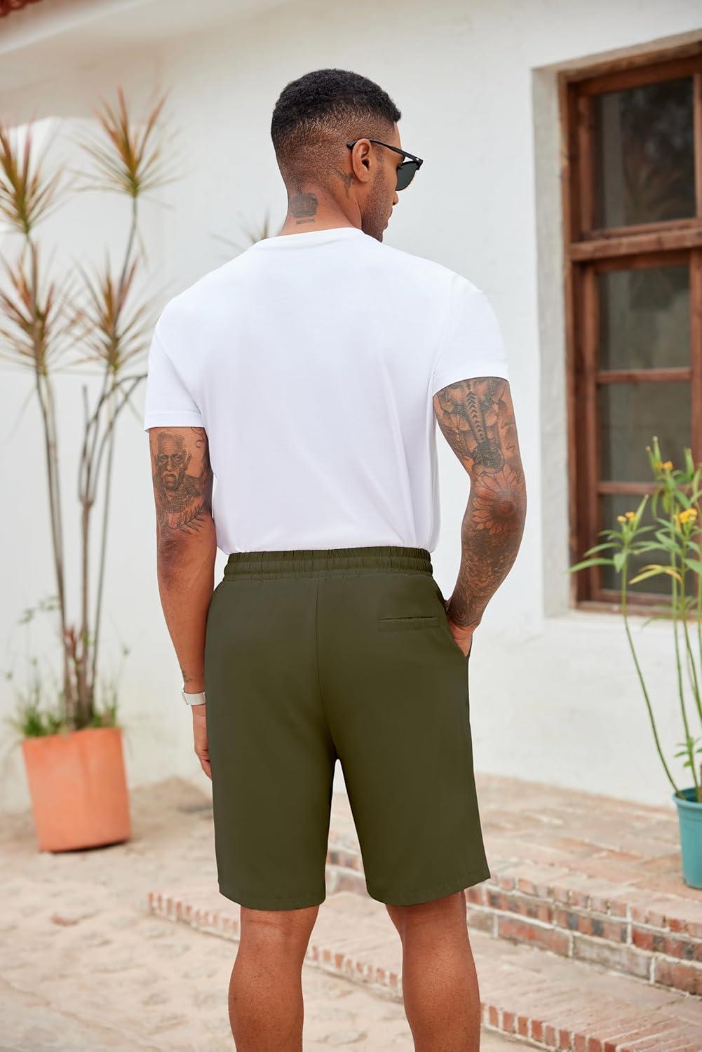 COOFANDY Men’s Casual Drawstring Shorts Lightweight Elastic Waist Walking Shorts with Pockets(Army Green)