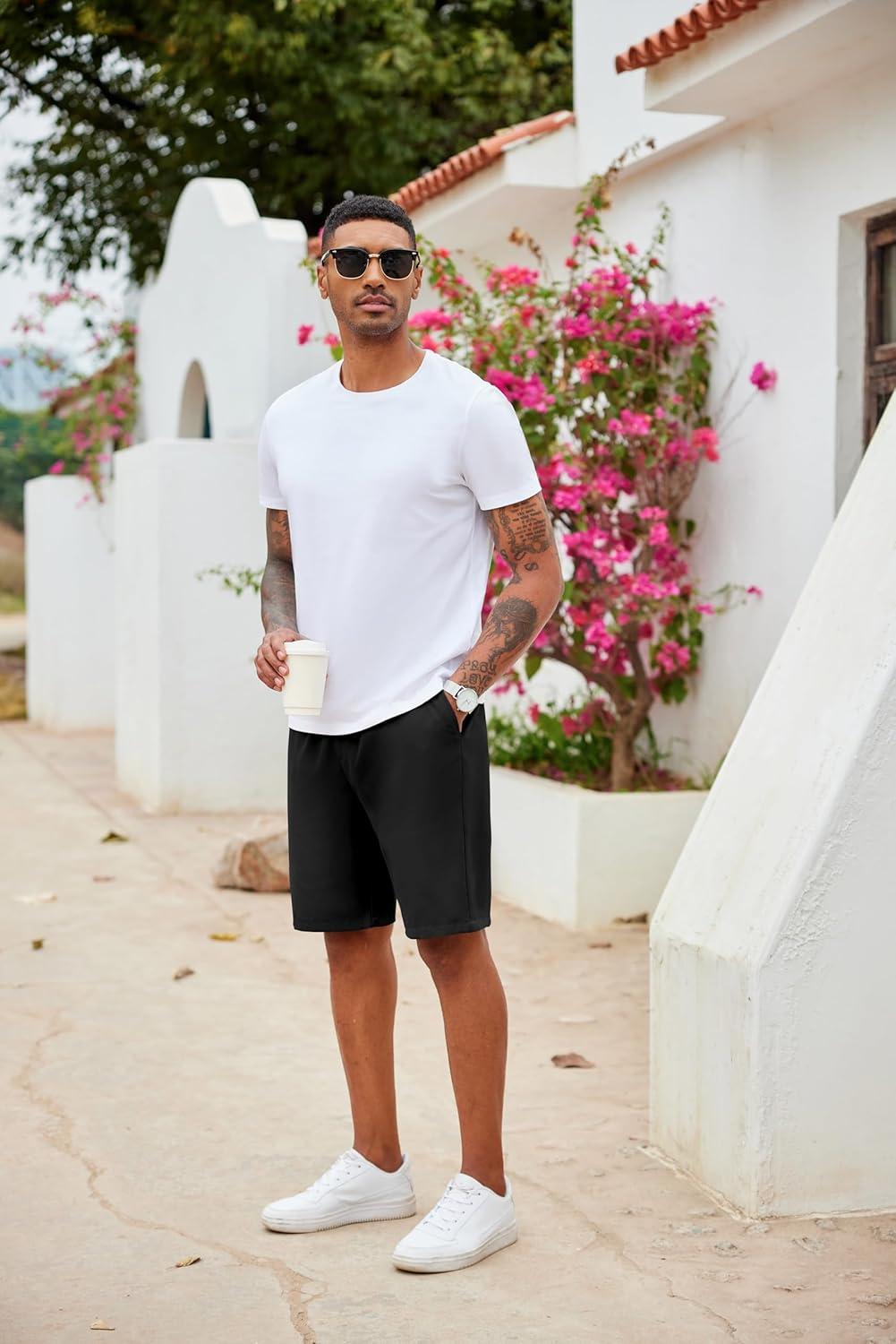 COOFANDY Men’s Casual Drawstring Shorts Lightweight Elastic Waist Walking Shorts with Pockets(Black)