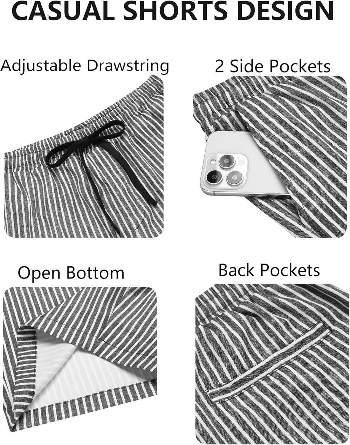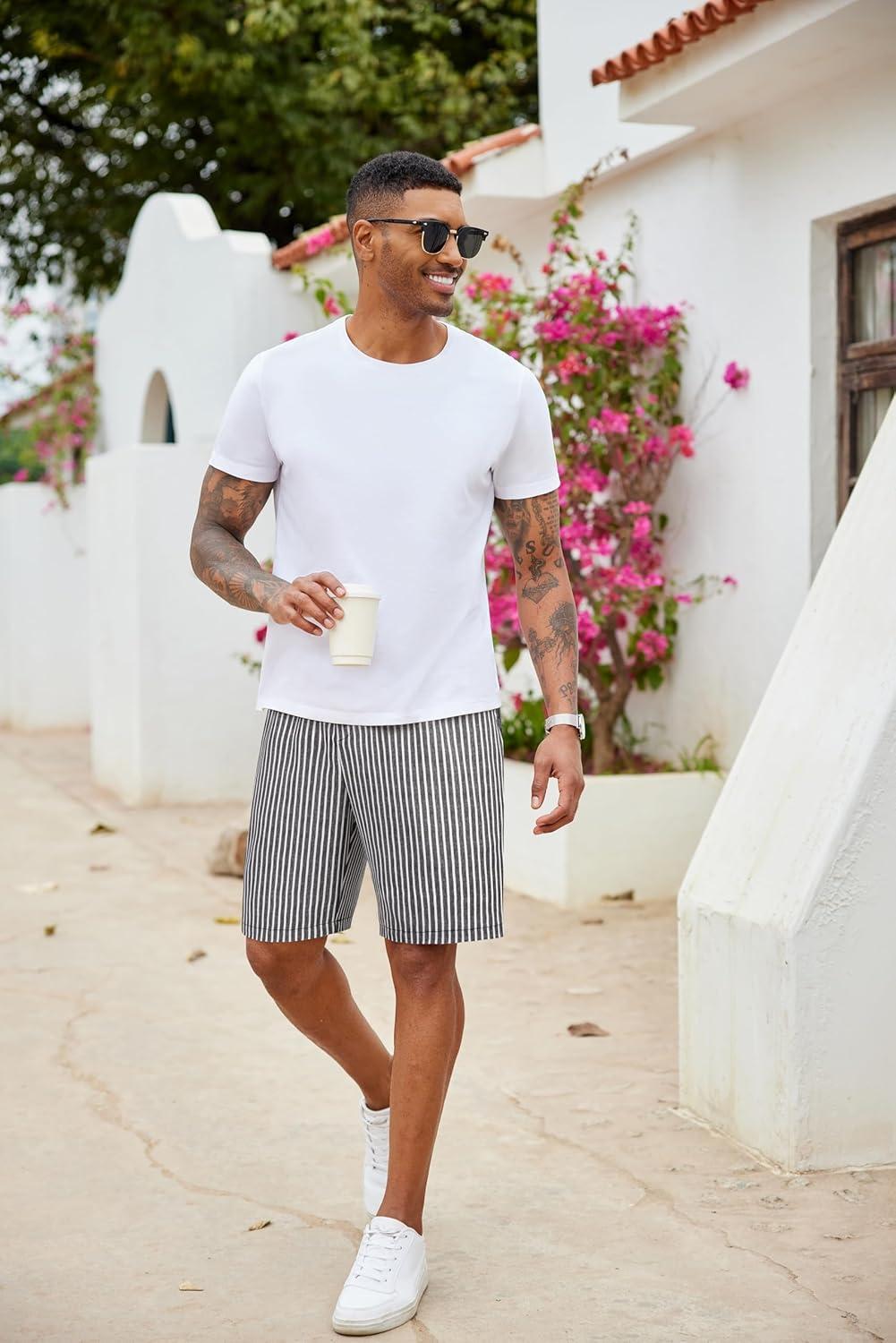COOFANDY Men’s Casual Drawstring Shorts Lightweight Elastic Waist Walking Shorts with Pockets(Black White Stripes)