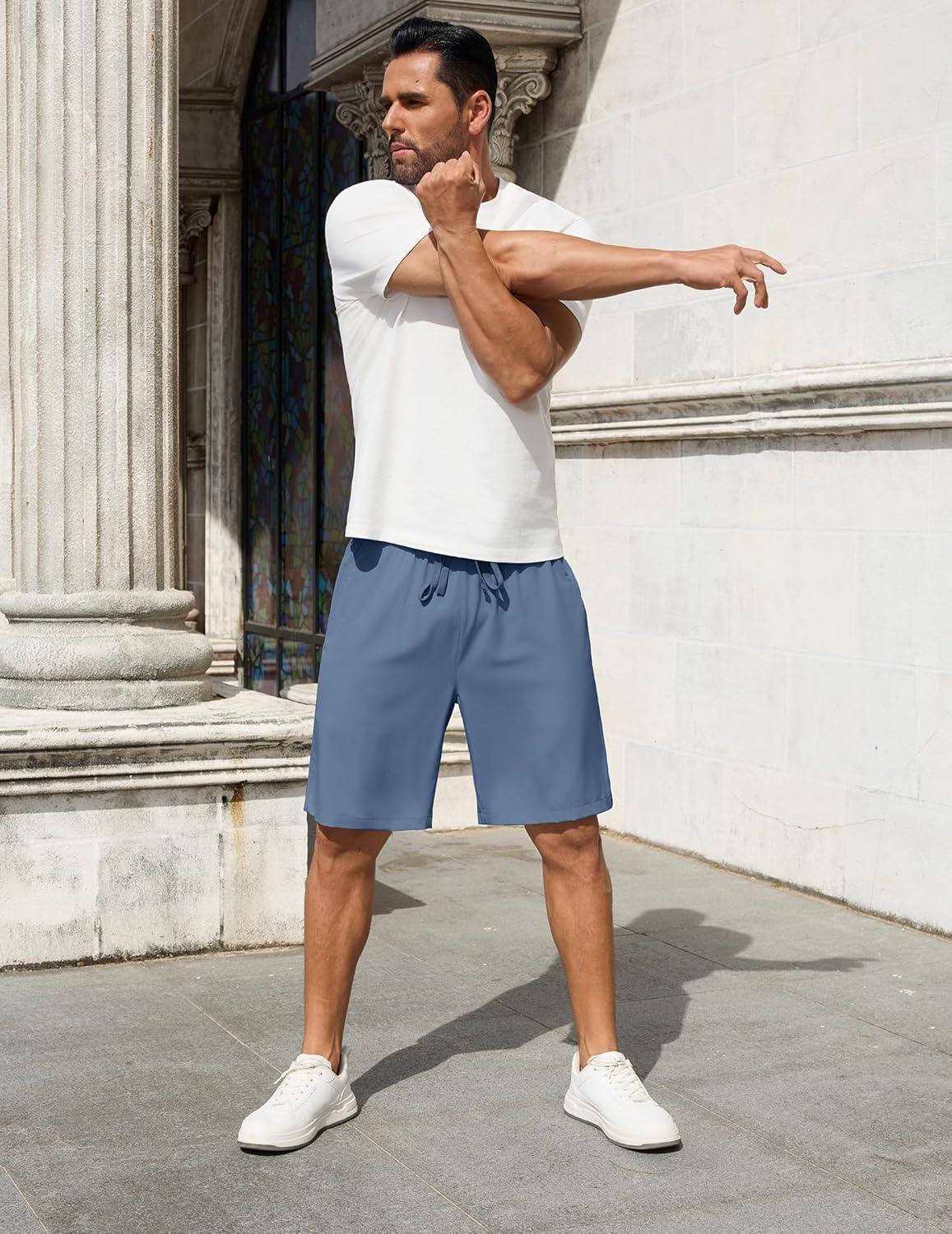 COOFANDY Men’s Casual Drawstring Shorts Lightweight Elastic Waist Walking Shorts with Pockets(White Dolphin)