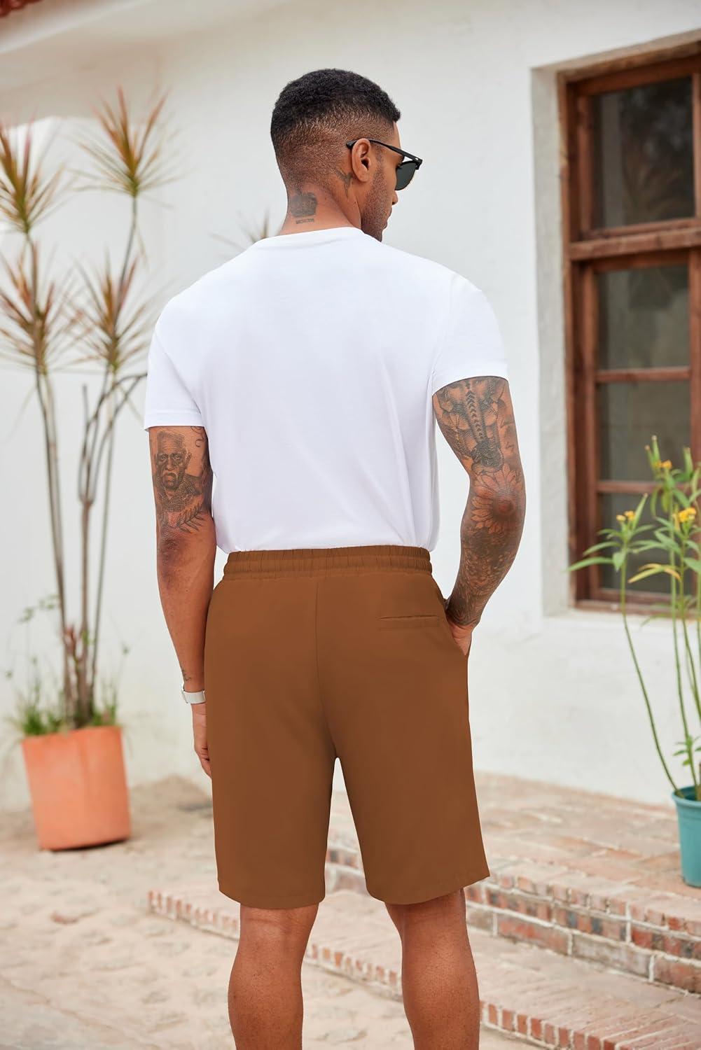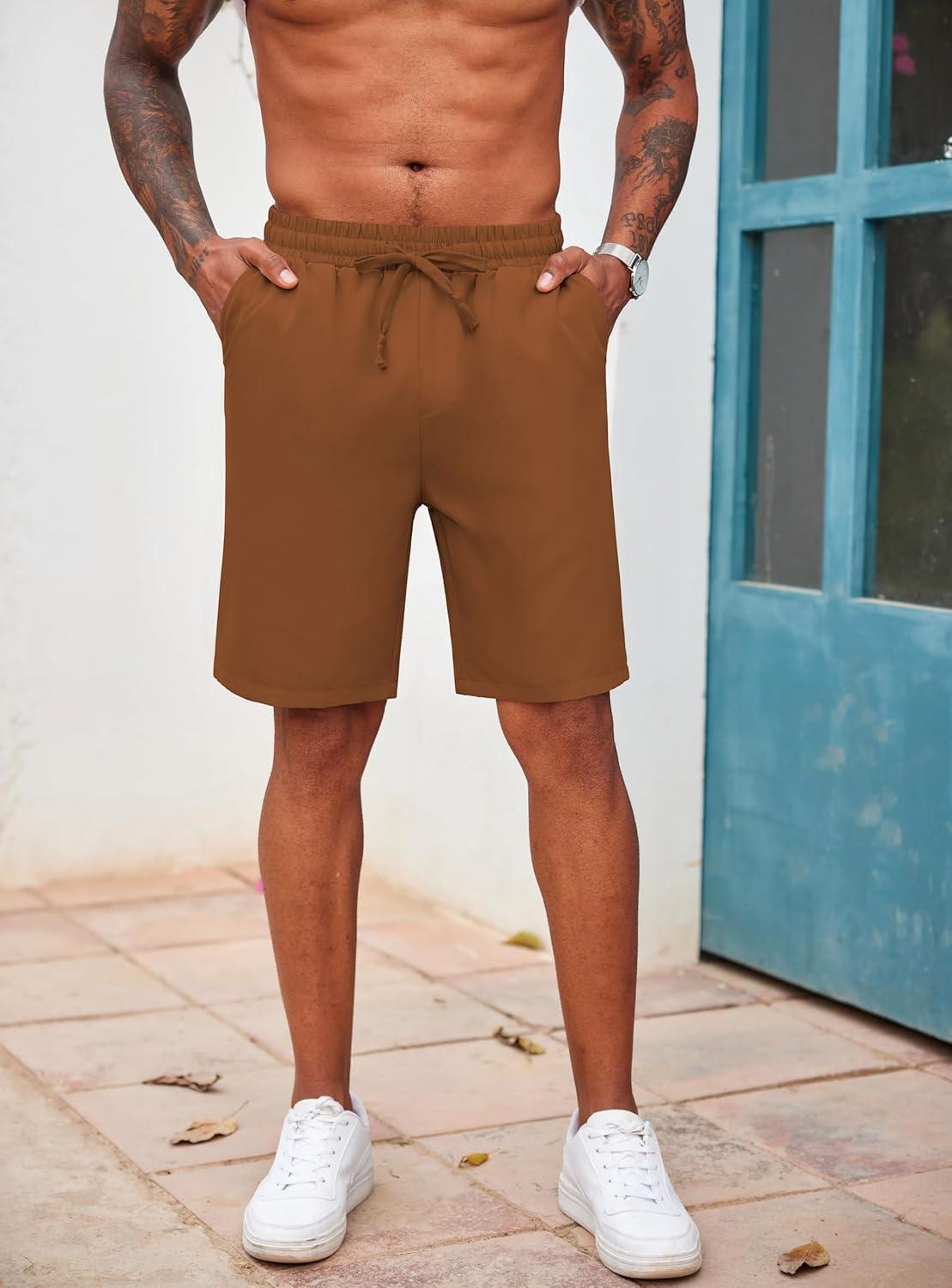 COOFANDY Men’s Casual Drawstring Shorts Lightweight Elastic Waist Walking Shorts with Pockets(Brown)