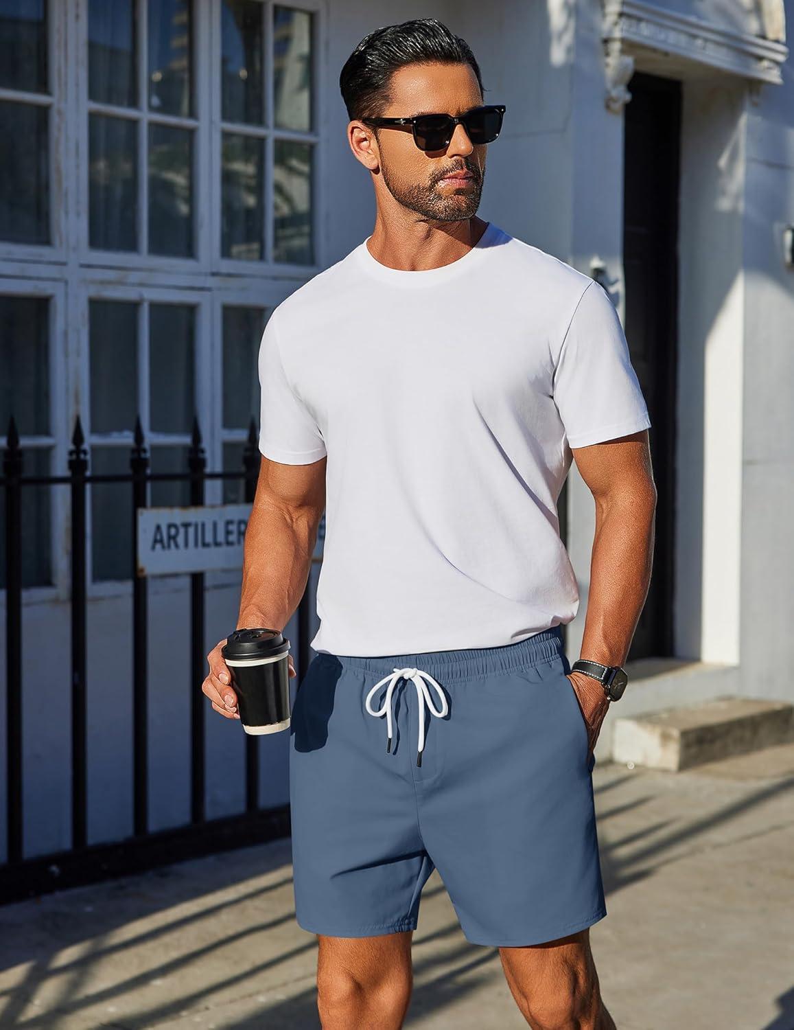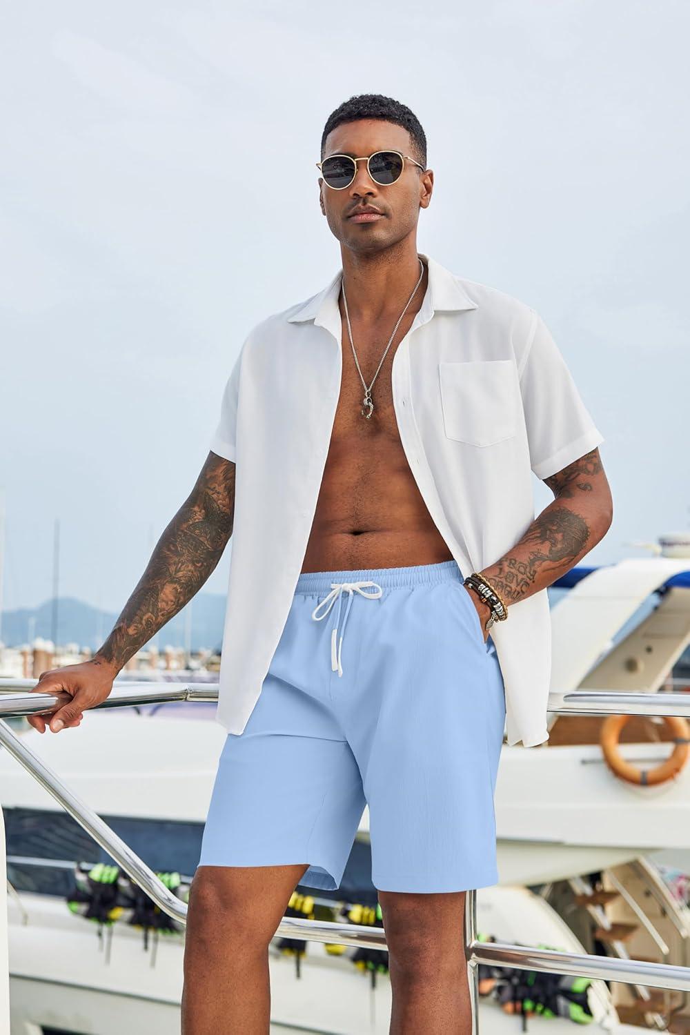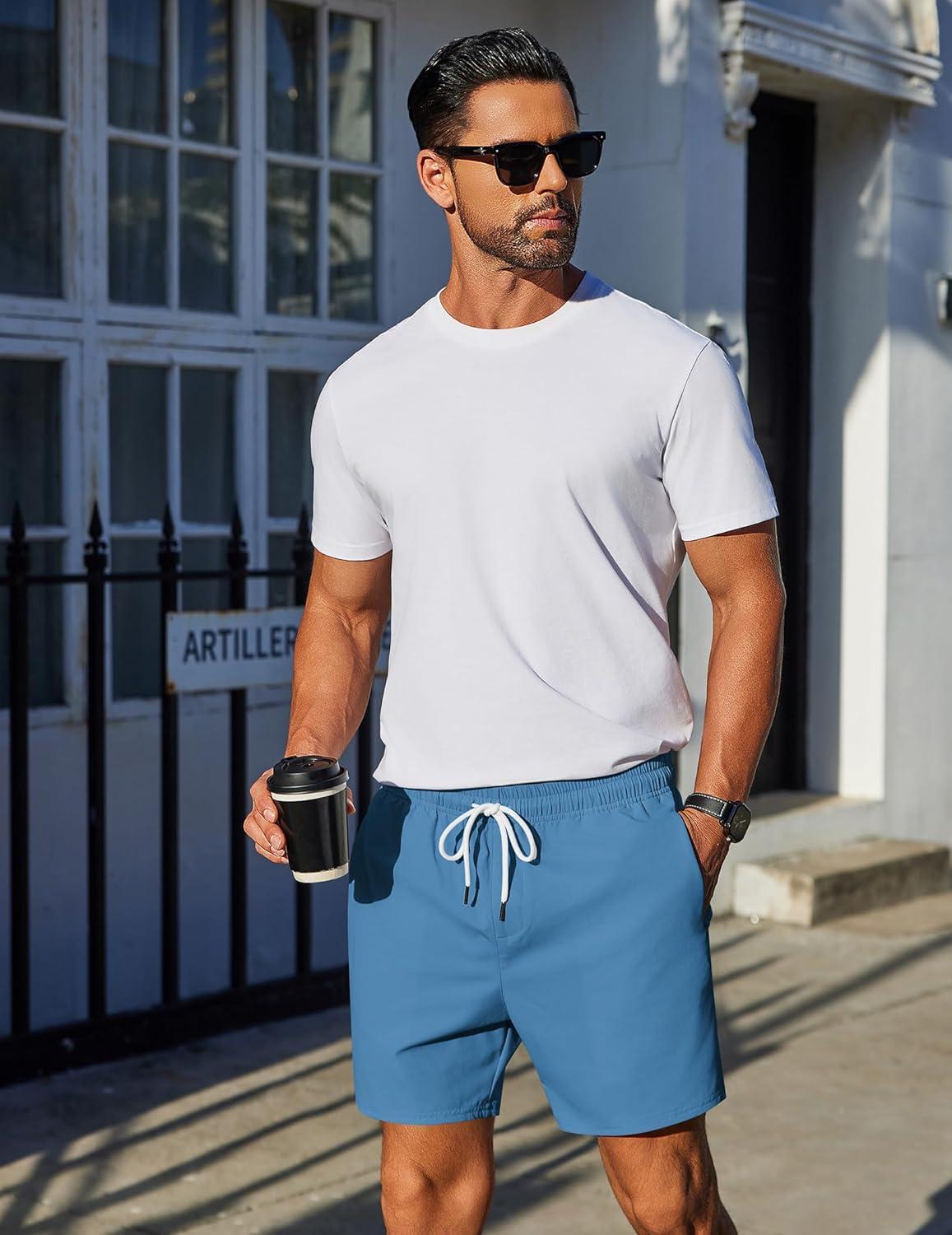 COOFANDY Men’s Casual Shorts Drawstring Summer Beach Shorts Lightweight Elastic Waist Vacation Short with Pockets(Light Blue)