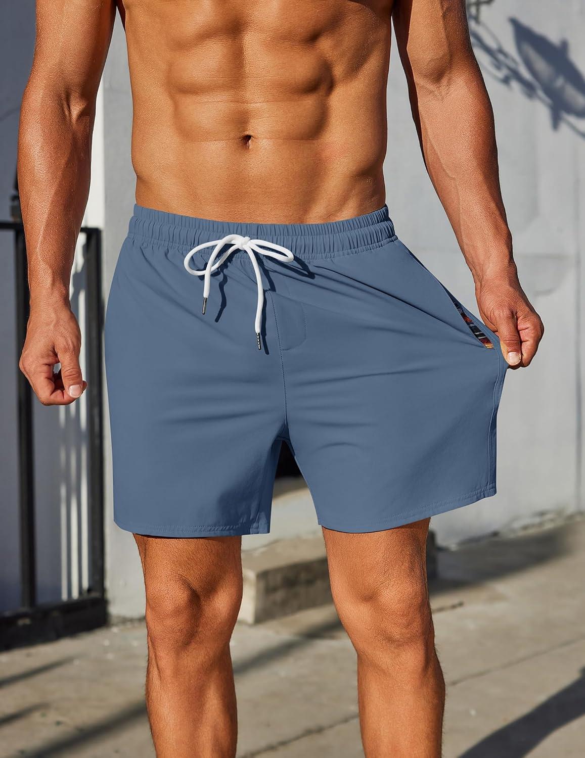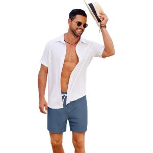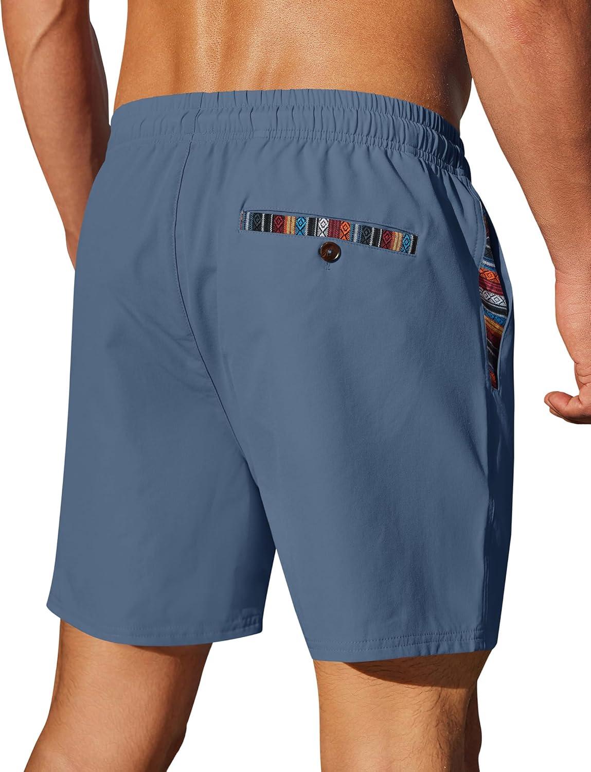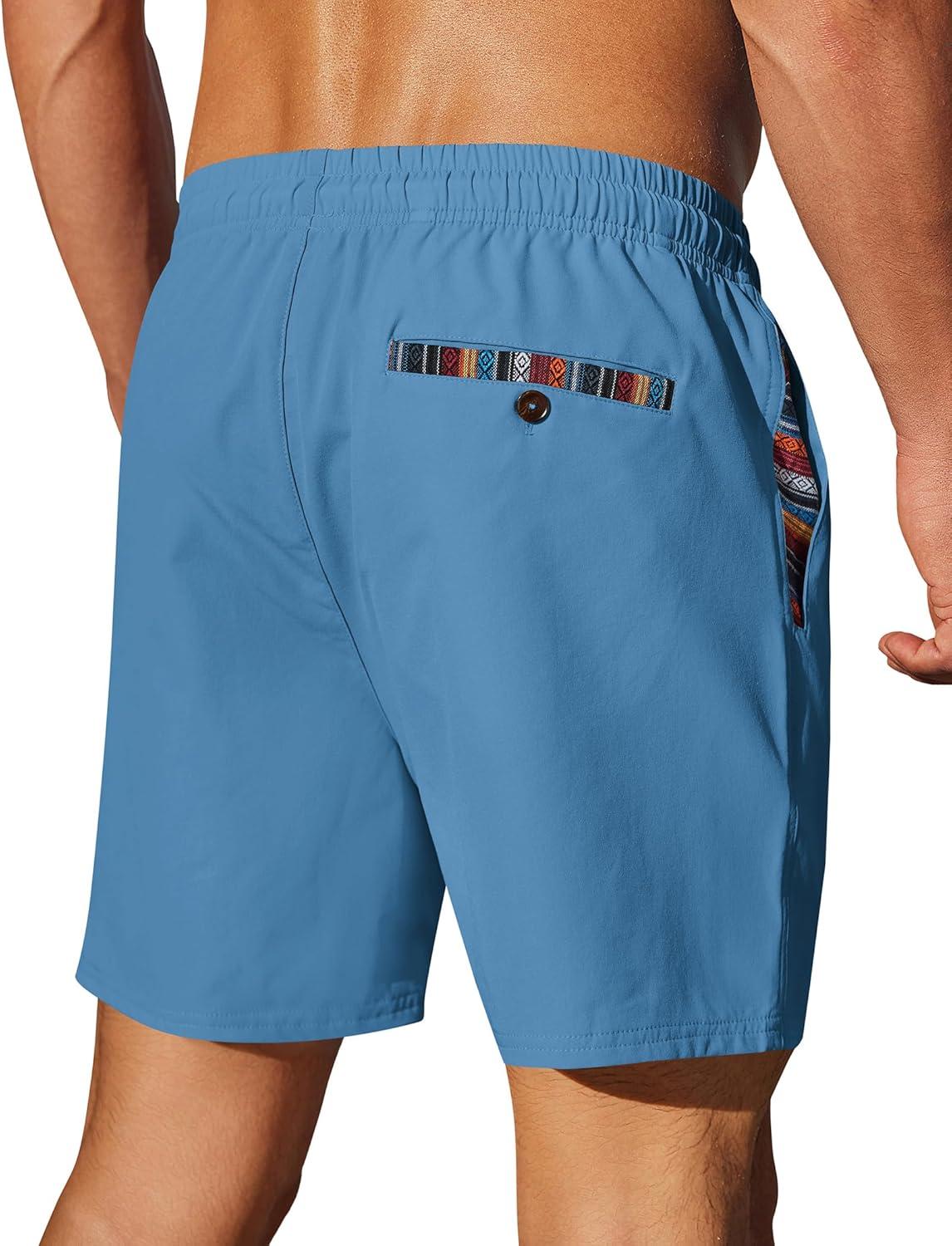 COOFANDY Men’s Casual Shorts Drawstring Summer Beach Shorts Lightweight Elastic Waist Vacation Short with Pockets(Blue)