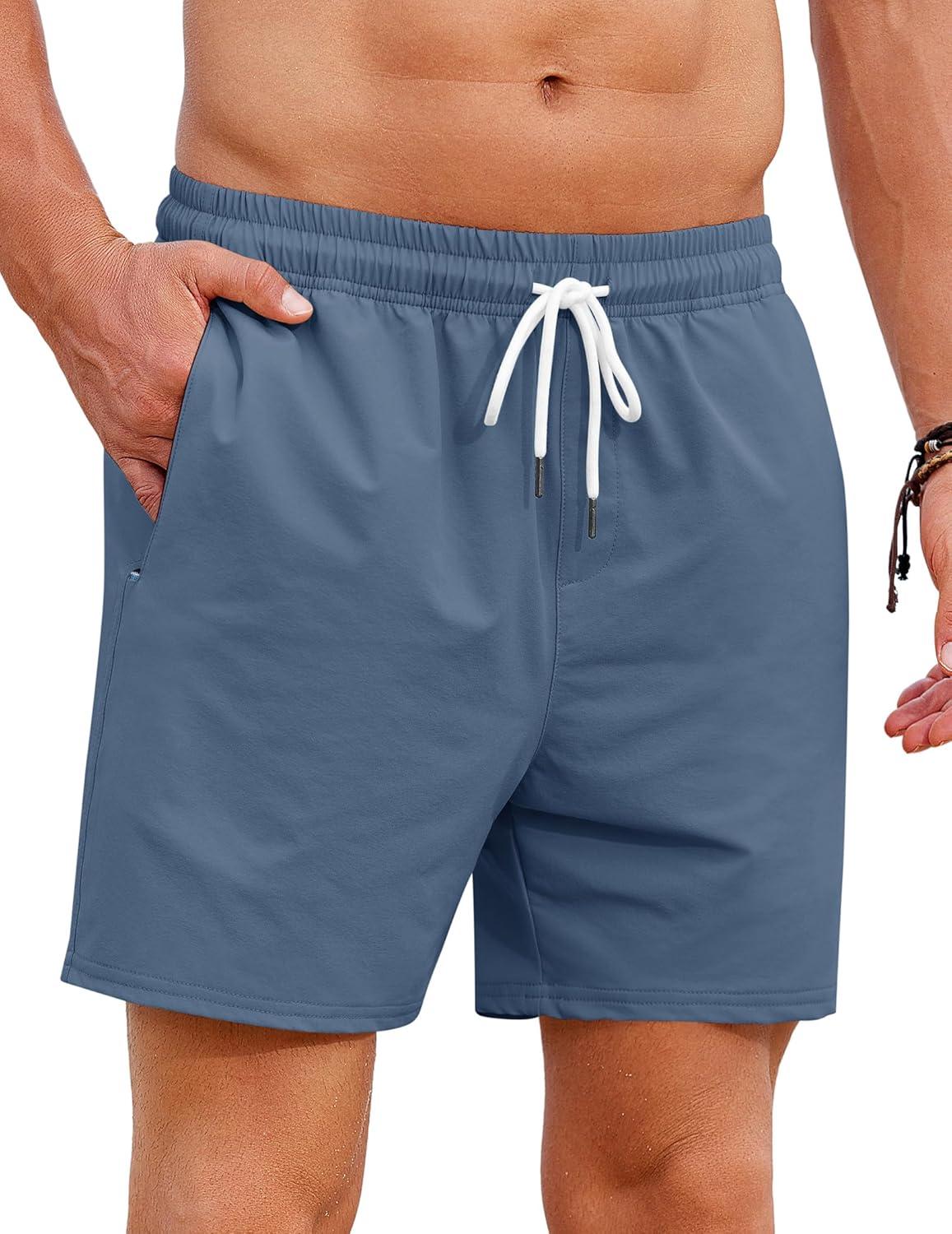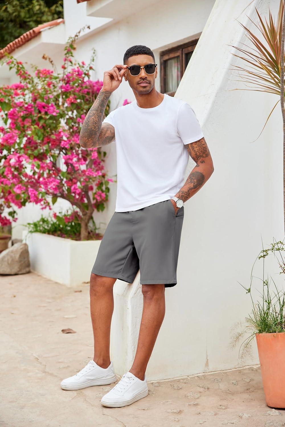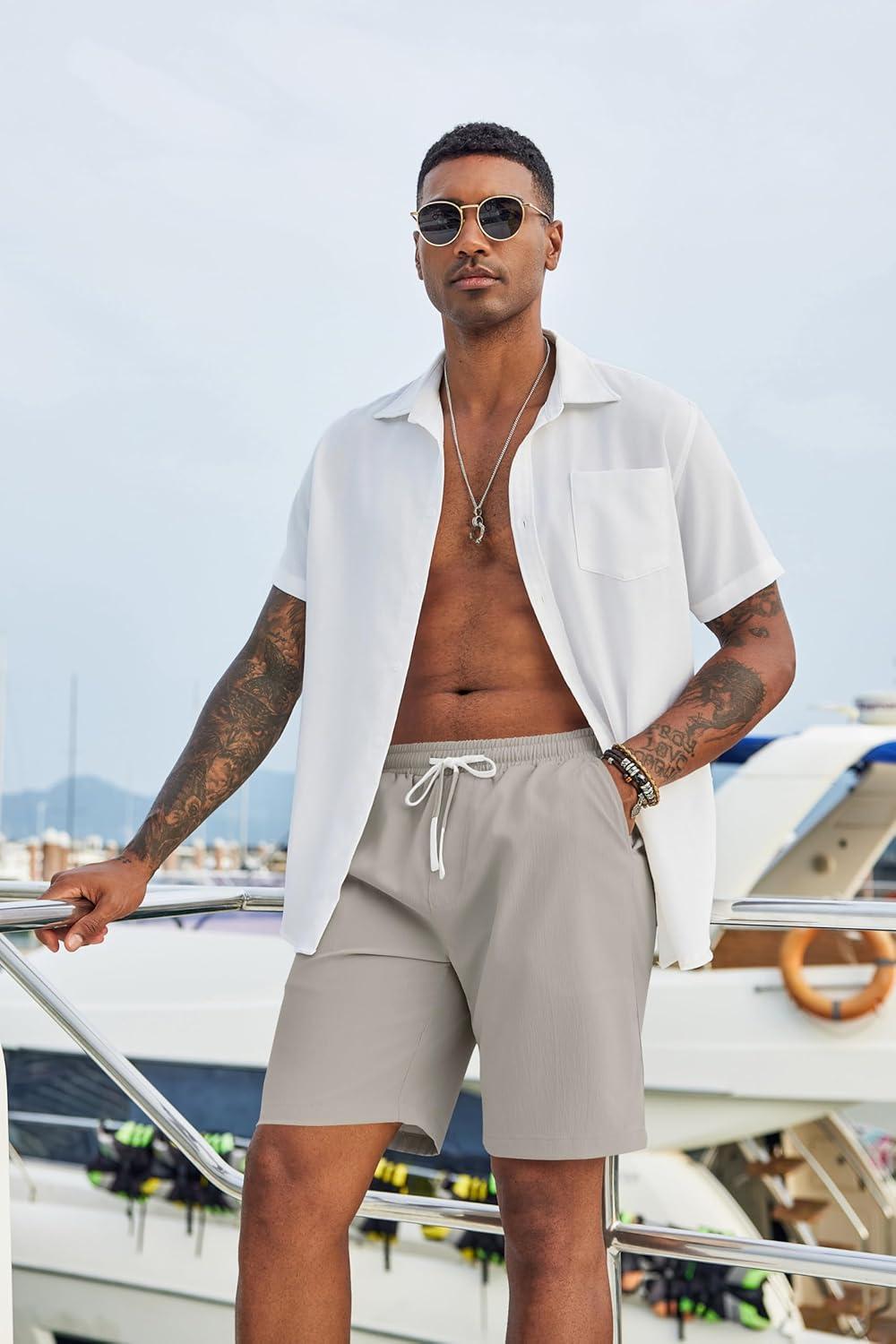 COOFANDY Men’s Casual Shorts Drawstring Summer Beach Shorts Lightweight Elastic Waist Vacation Short with Pockets(Light Gray)