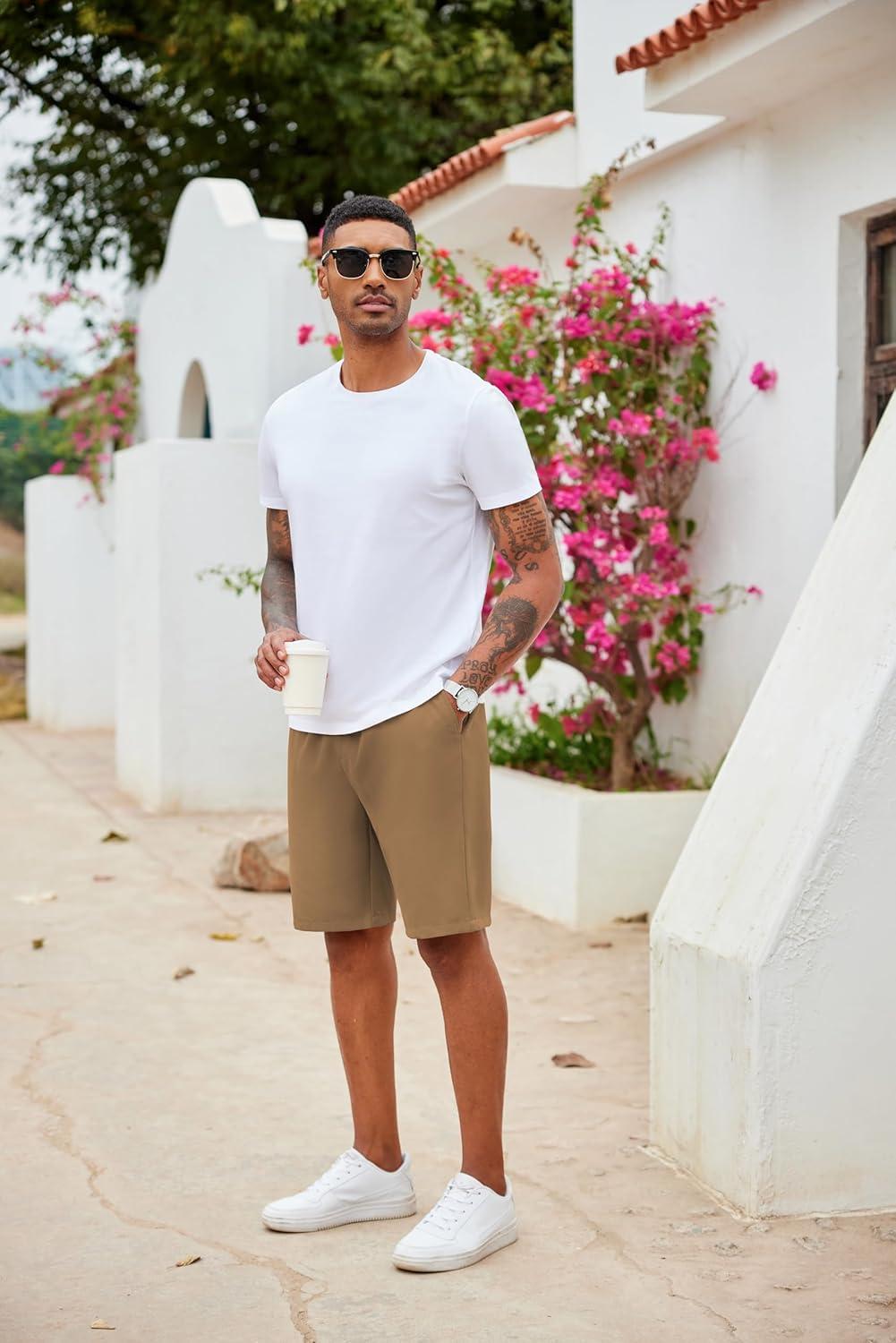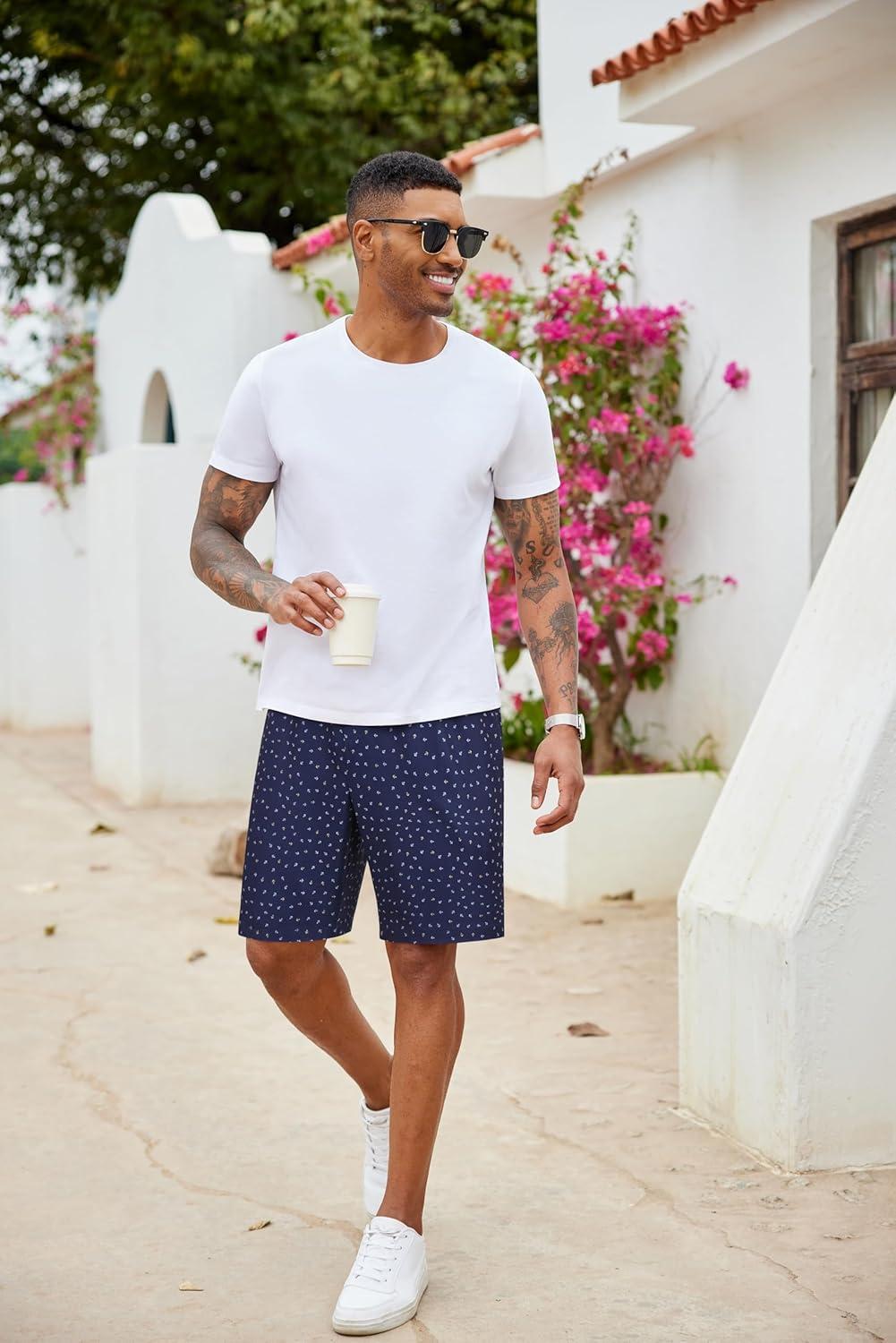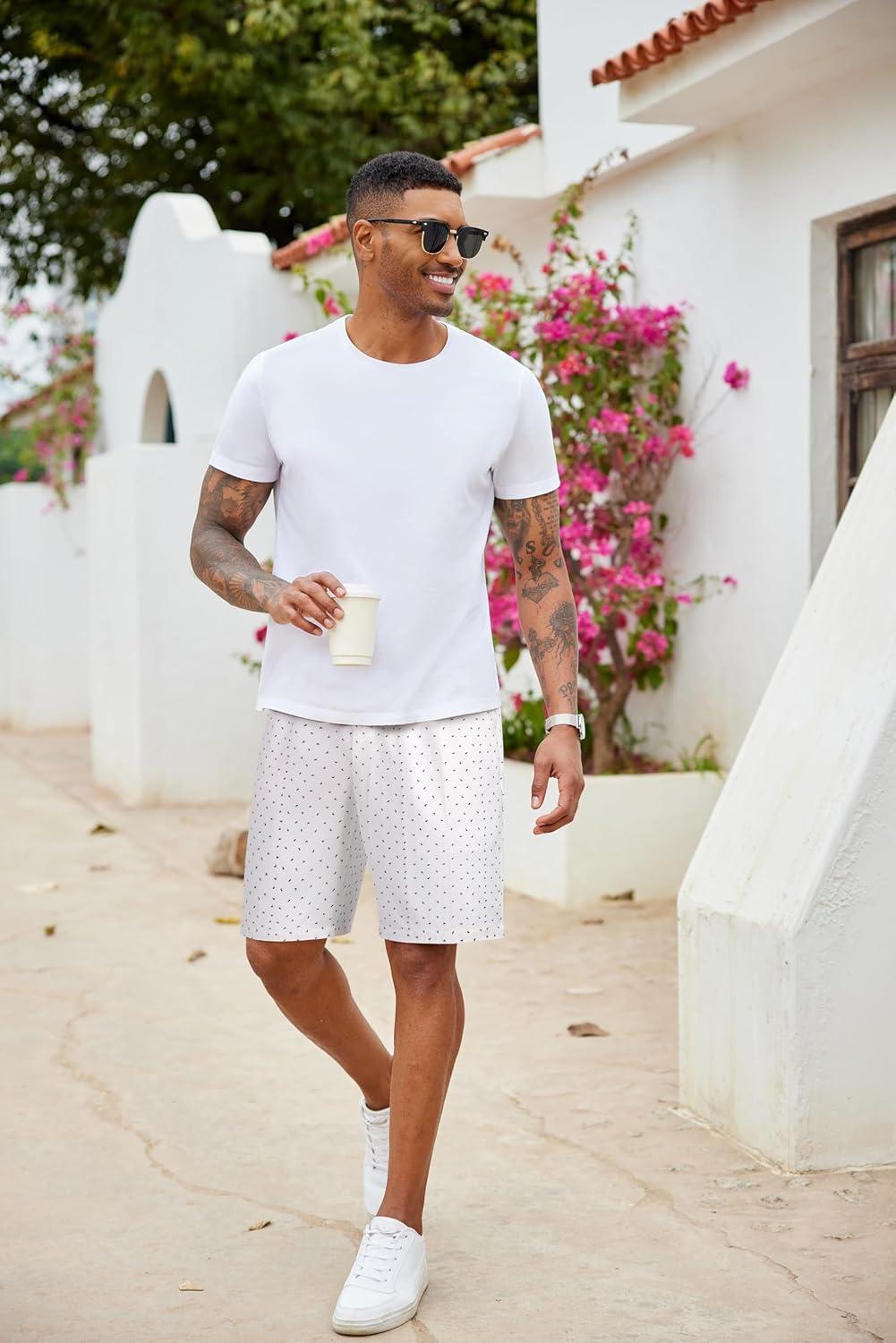COOFANDY Men’s Casual Drawstring Shorts Lightweight Elastic Waist Walking Shorts with Pockets(White Dolphin)