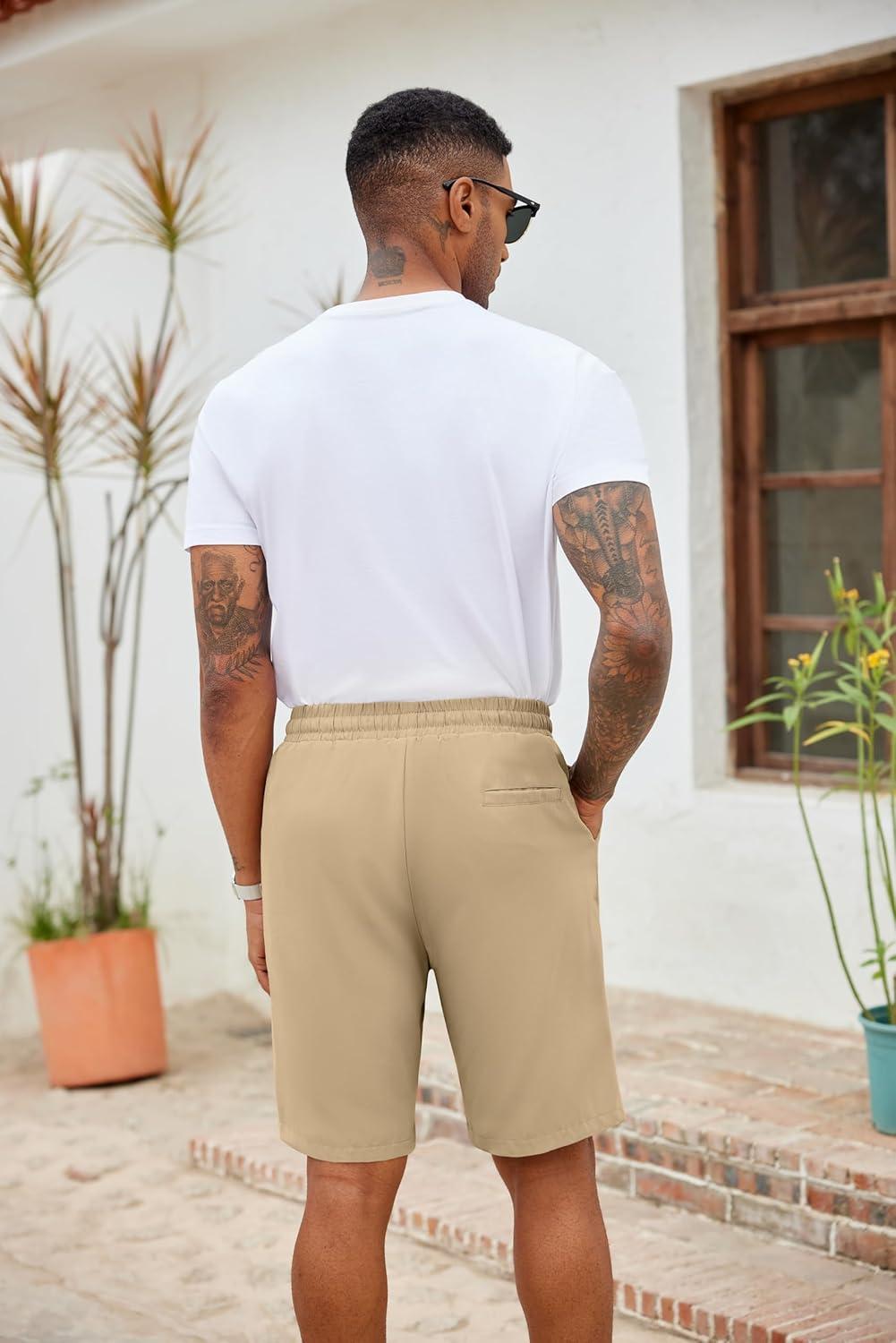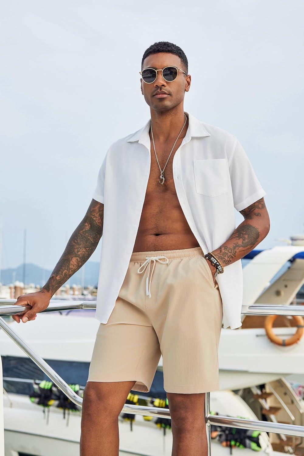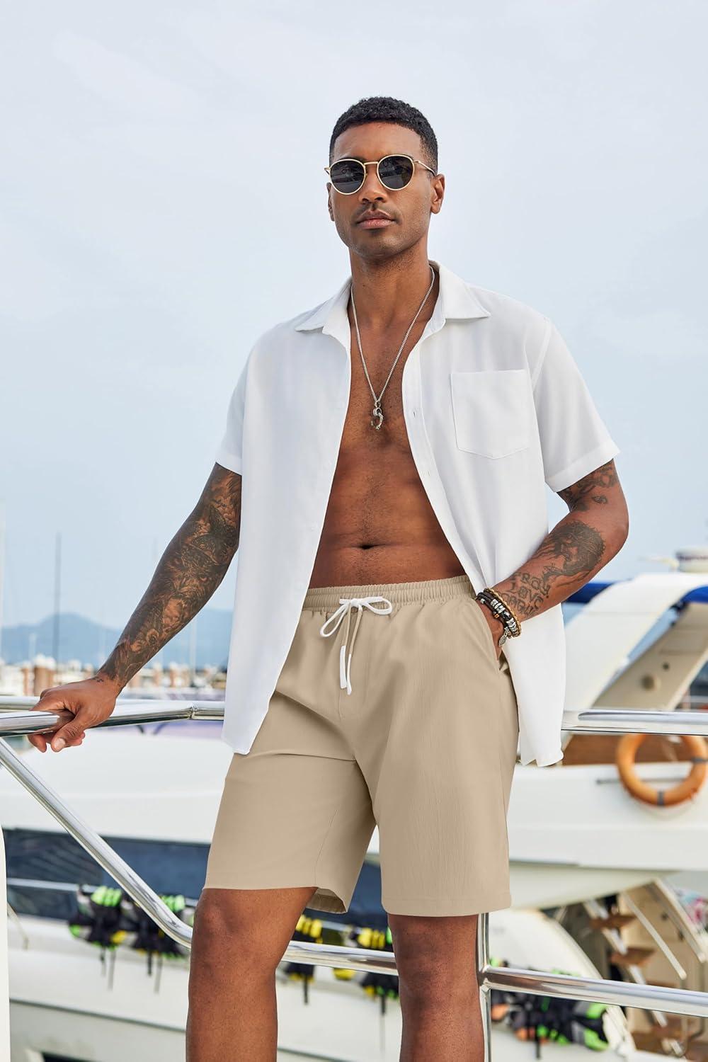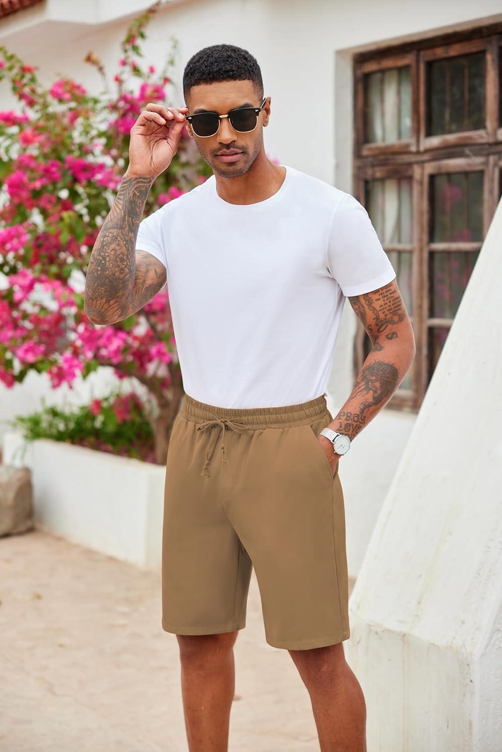 COOFANDY Men’s Casual Shorts Drawstring Summer Beach Shorts Lightweight Elastic Waist Vacation Short with Pockets(Khaki)
