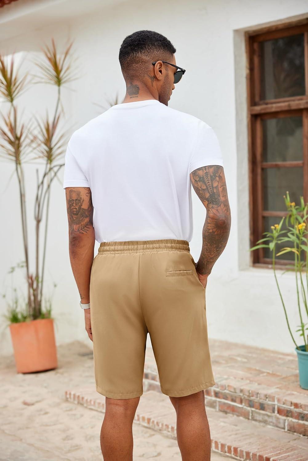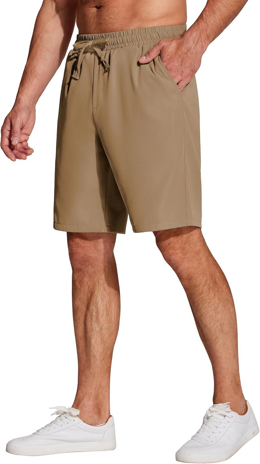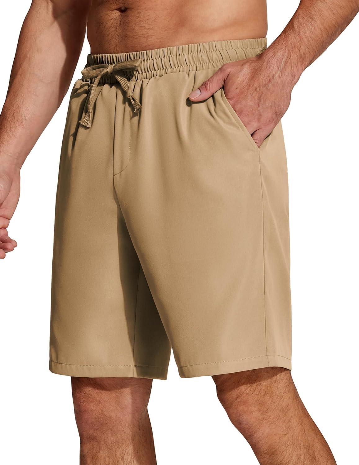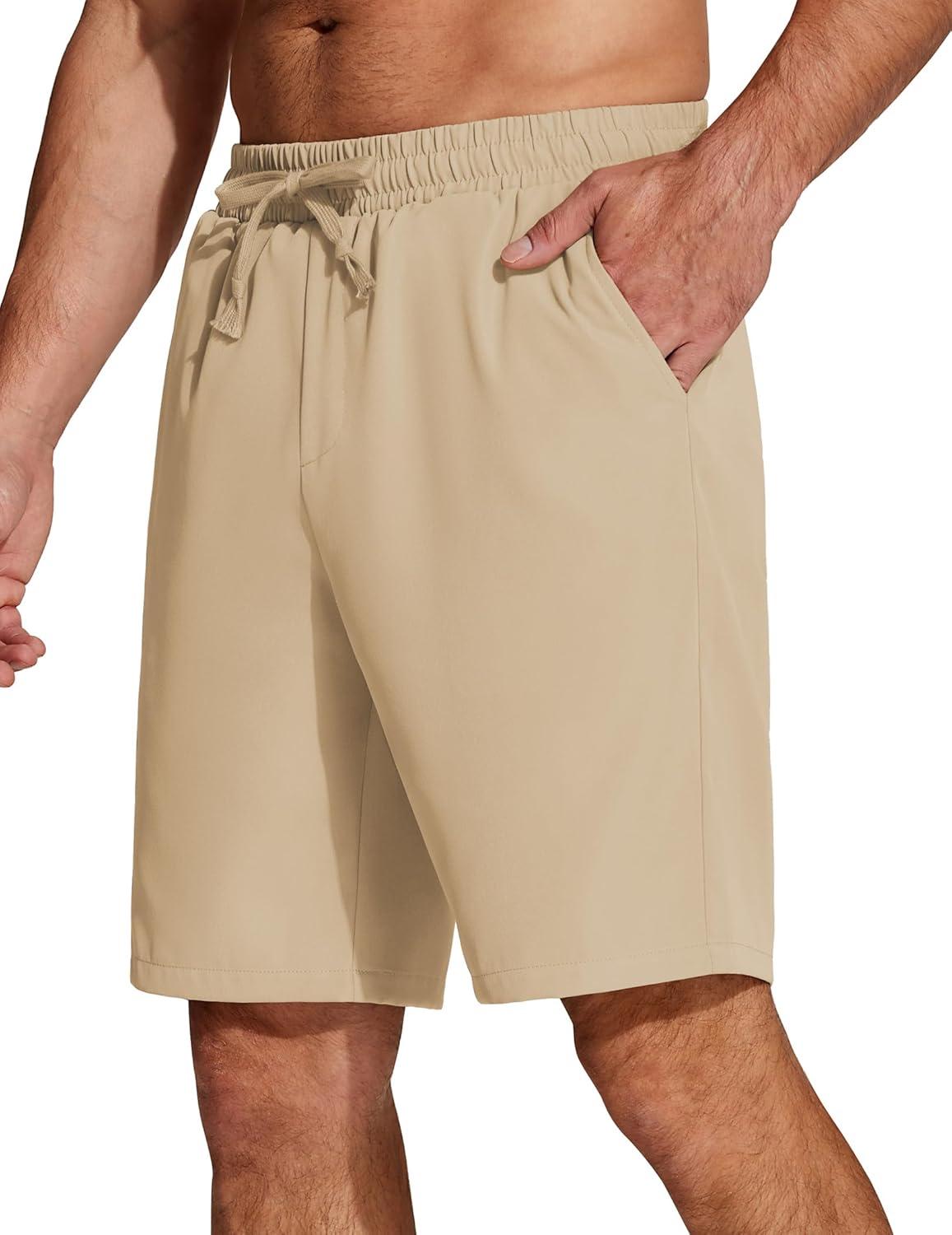 COOFANDY Men’s Casual Drawstring Shorts Lightweight Elastic Waist Walking Shorts with Pockets(Light Khaki)