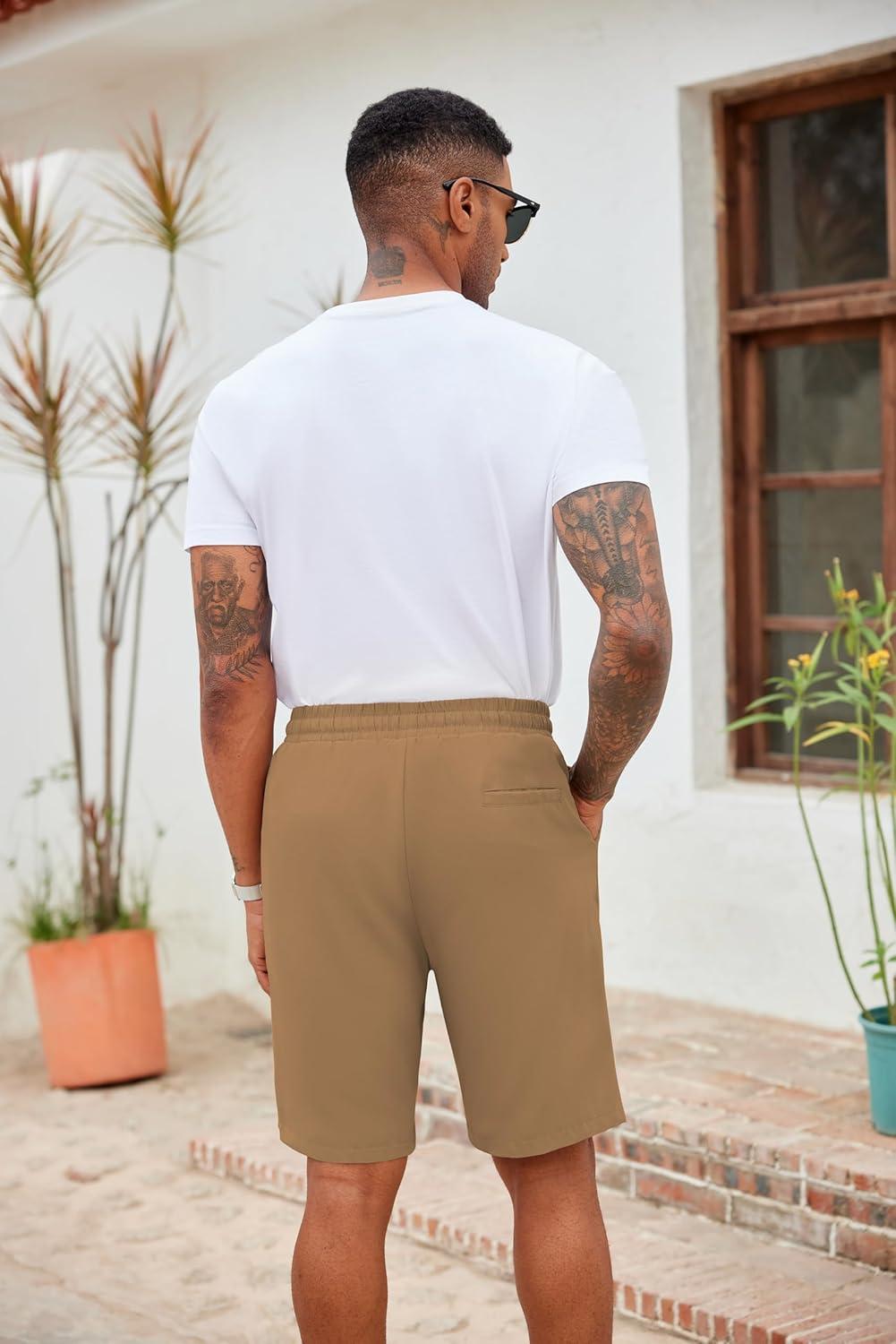 COOFANDY Men’s Casual Drawstring Shorts Lightweight Elastic Waist Walking Shorts with Pockets(Dark Khaki)