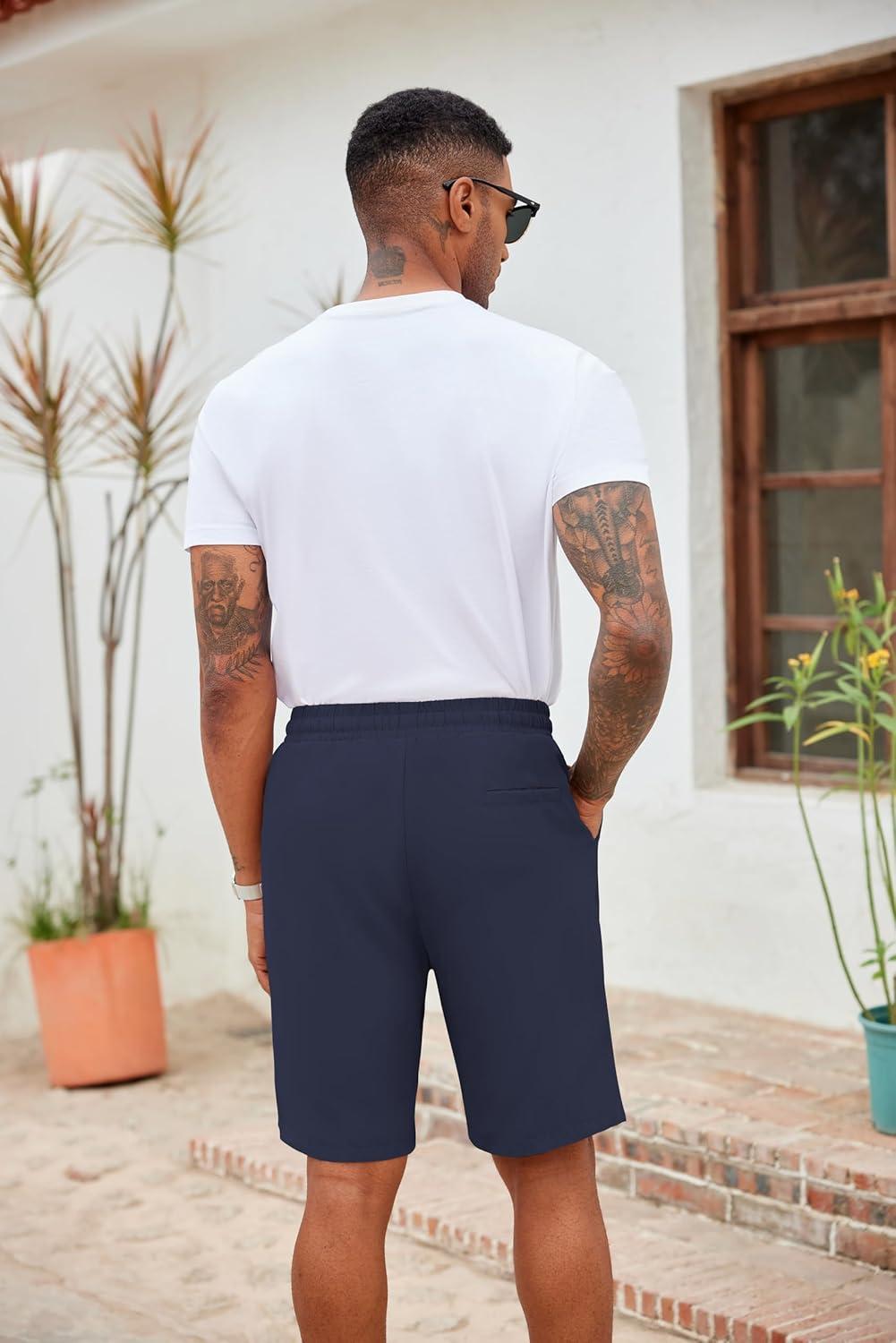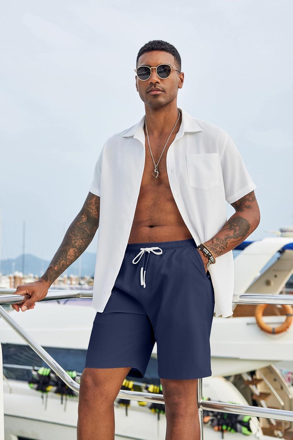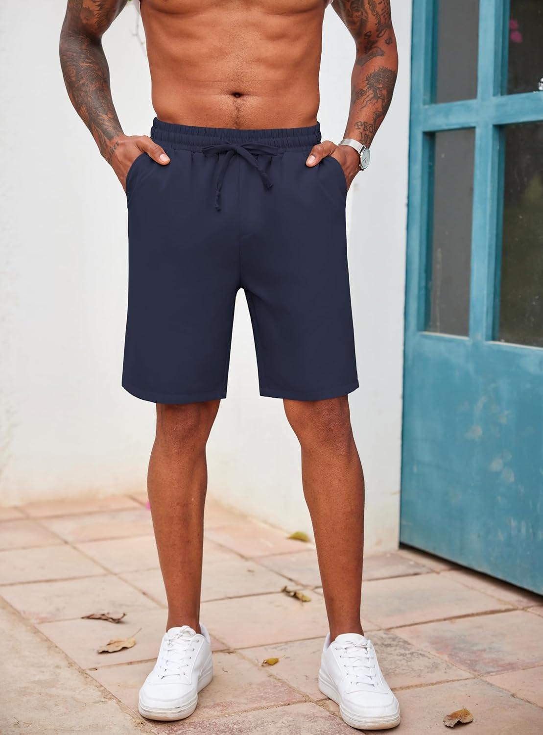 COOFANDY Men’s Casual Shorts Drawstring Summer Beach Shorts Lightweight Elastic Waist Vacation Short with Pockets(Navy Blue)