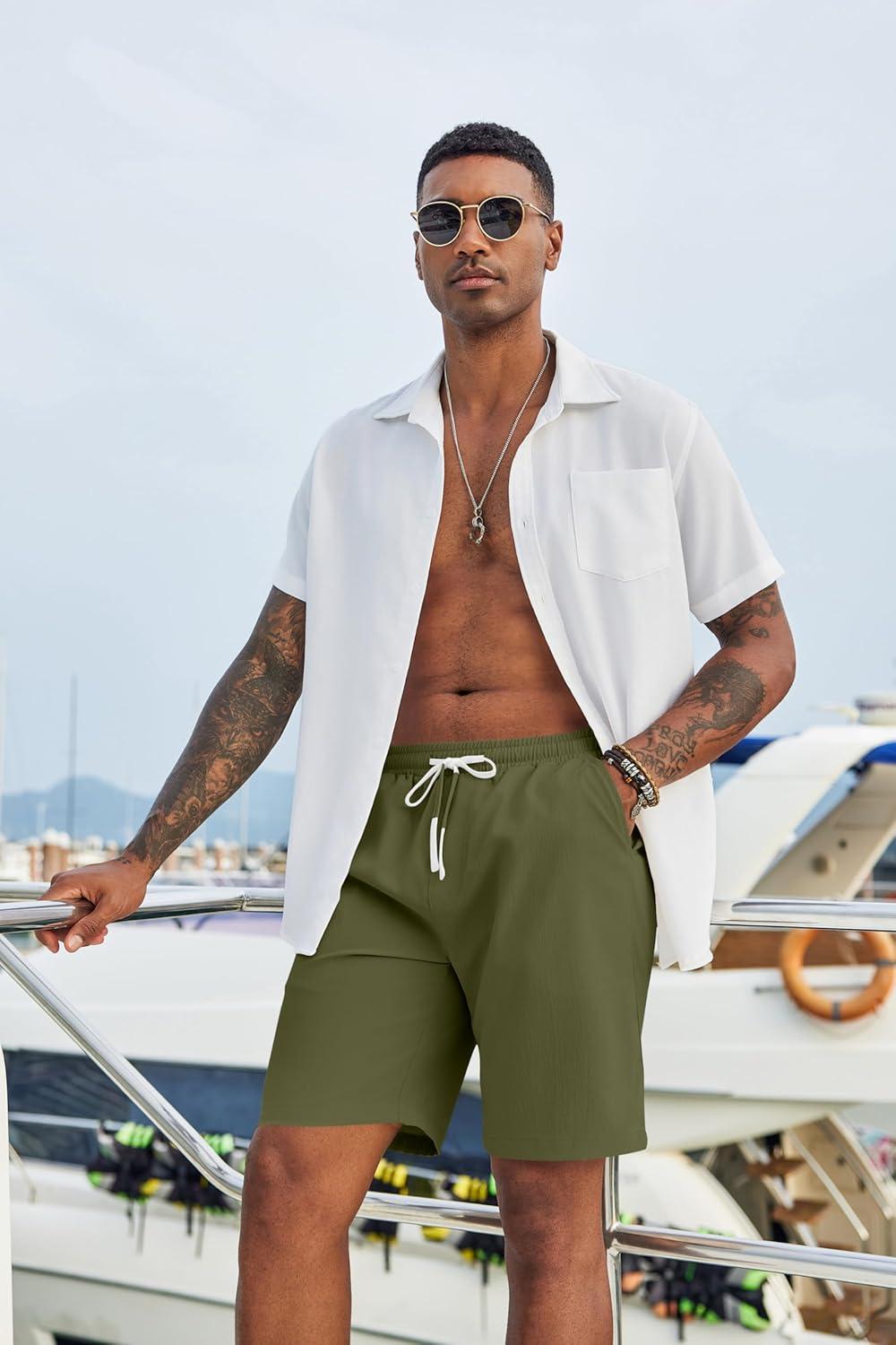 COOFANDY Men’s Casual Shorts Drawstring Summer Beach Shorts Lightweight Elastic Waist Vacation Short with Pockets(Army Green)