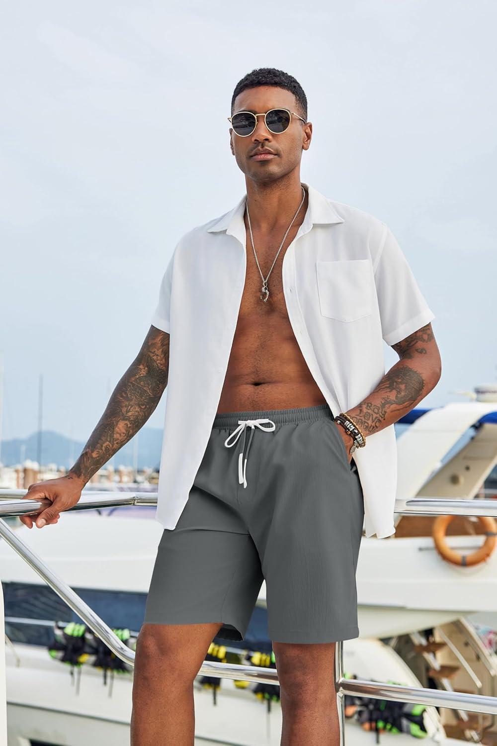 COOFANDY Men’s Casual Shorts Drawstring Summer Beach Shorts Lightweight Elastic Waist Vacation Short with Pockets(Dark Gray)