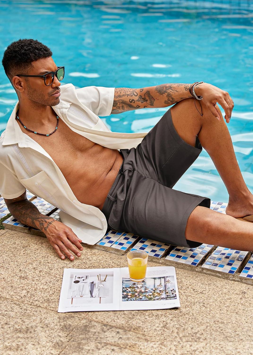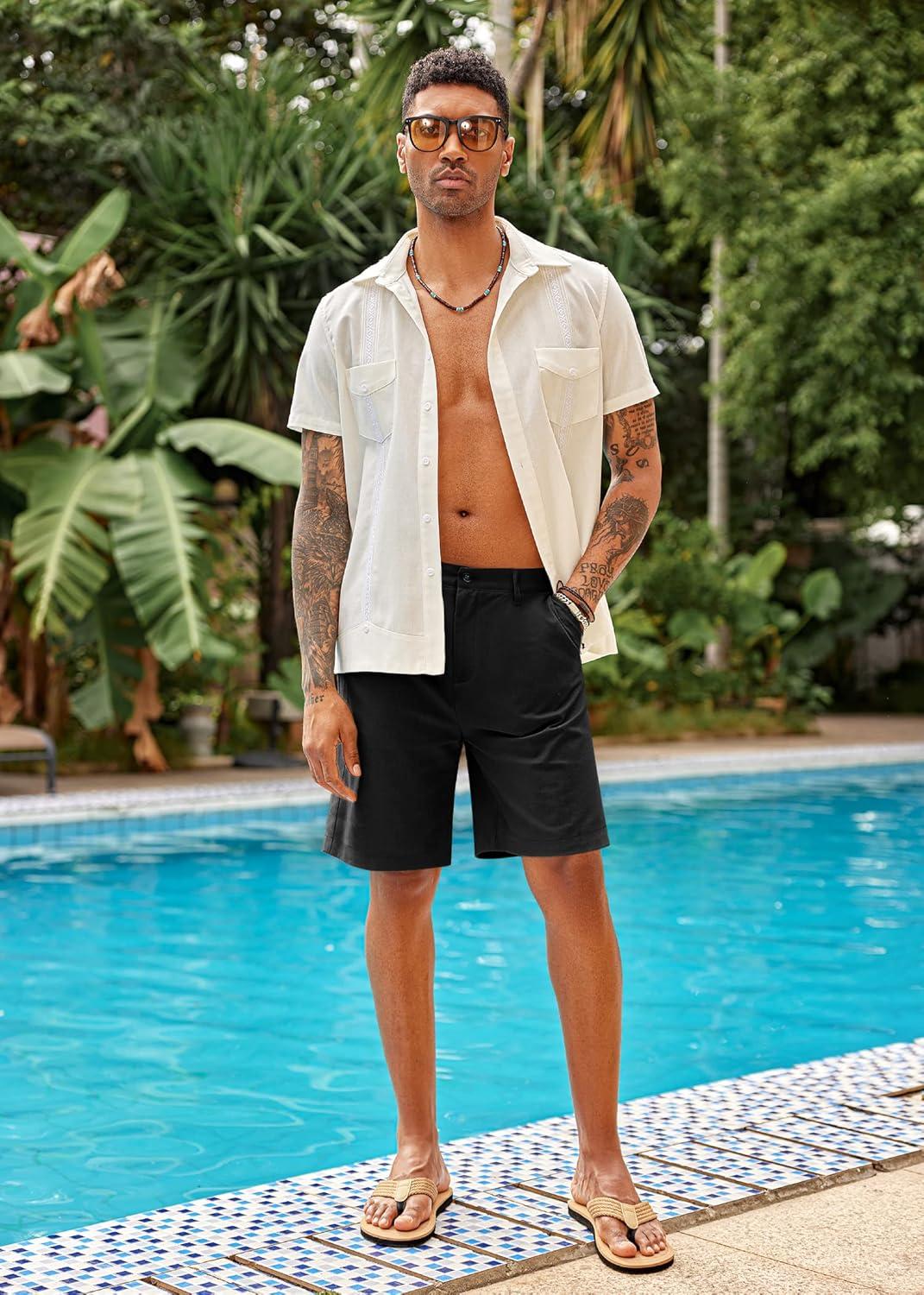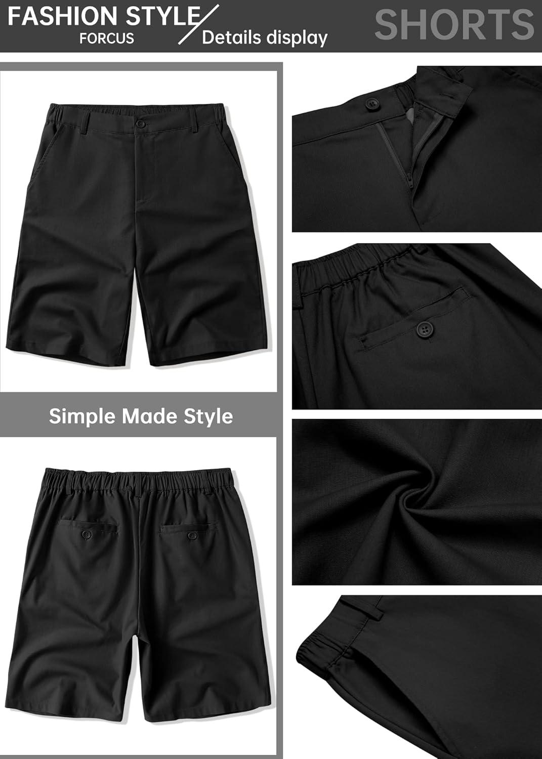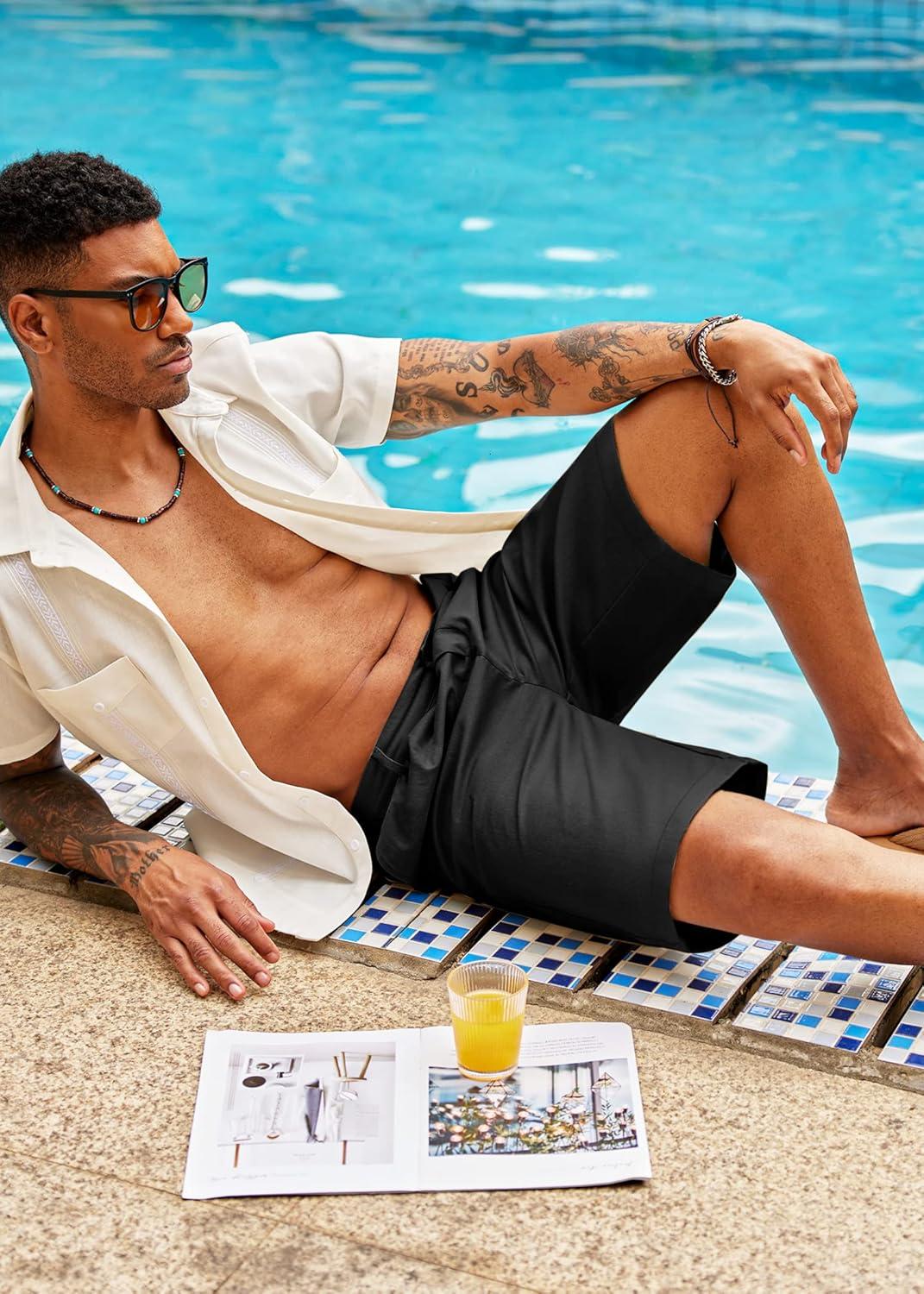 COOFANDY Men’s Casual Shorts Linen Flat Front Shorts Elastic Waist Summer Beach Shorts(Black)