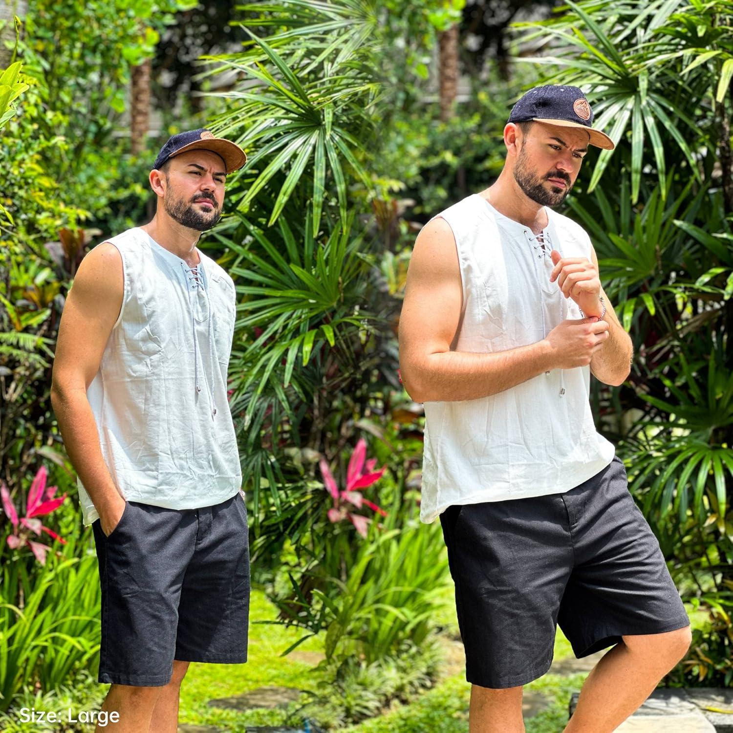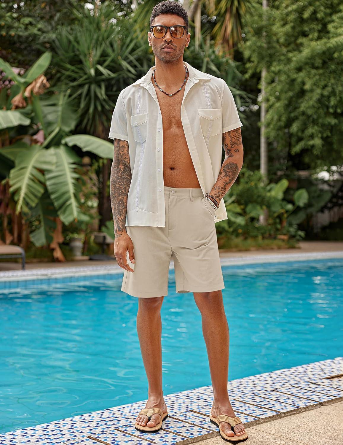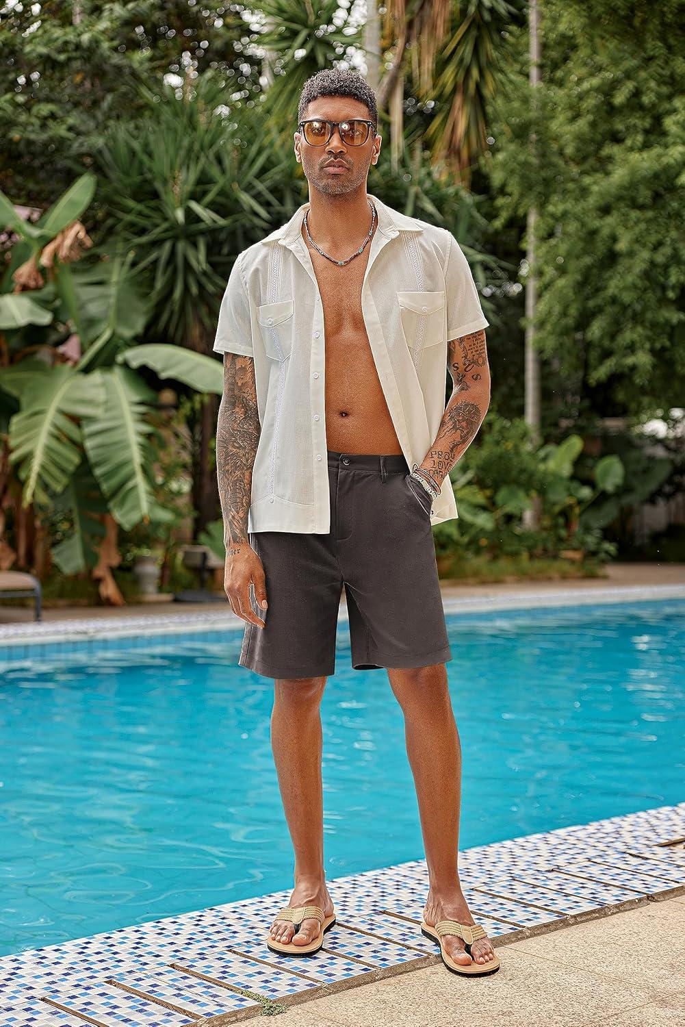 COOFANDY Men’s Casual Shorts Linen Flat Front Shorts Elastic Waist Summer Beach Shorts(White)