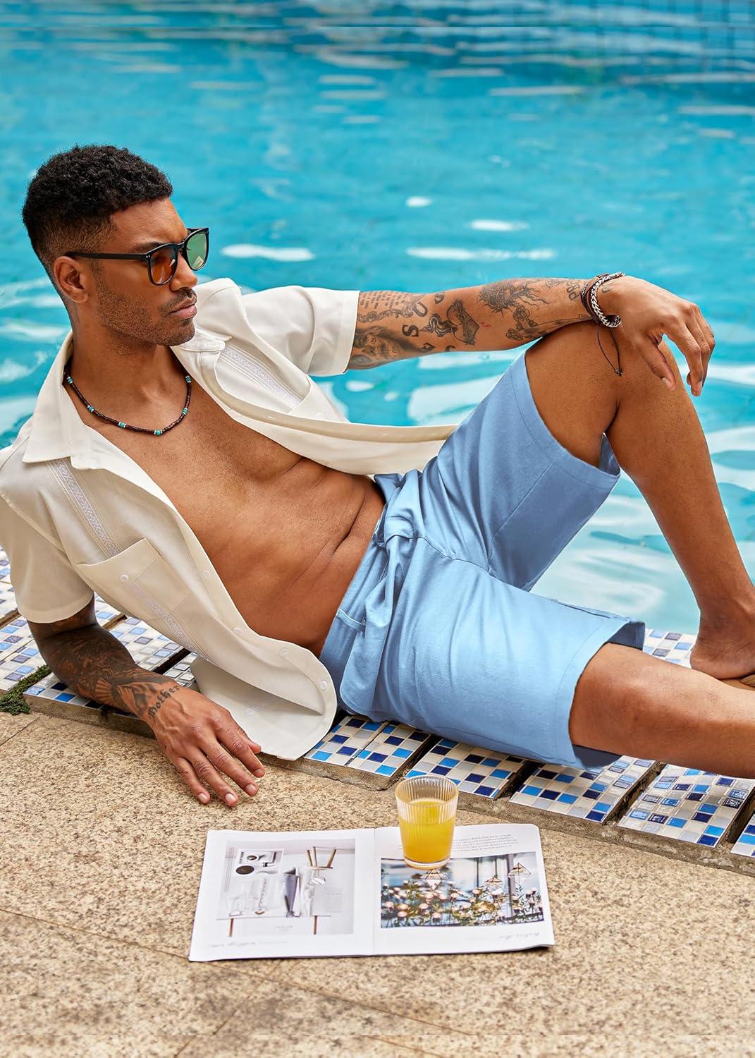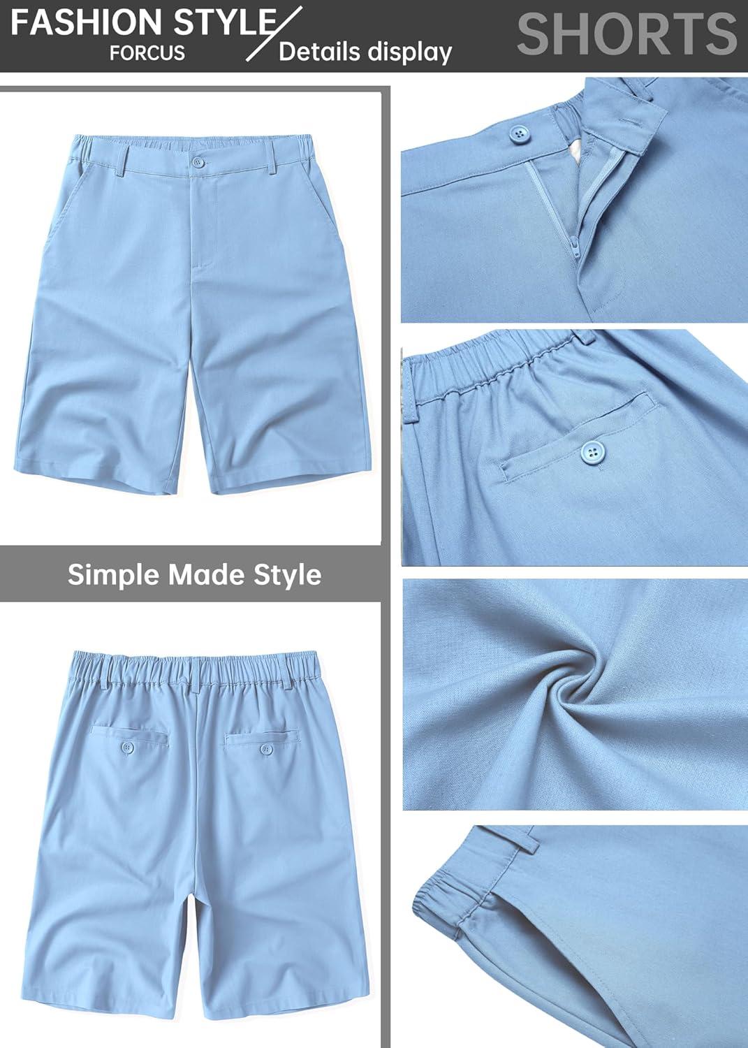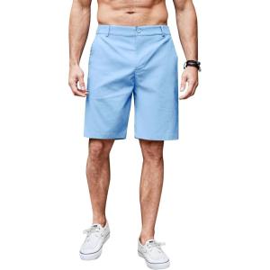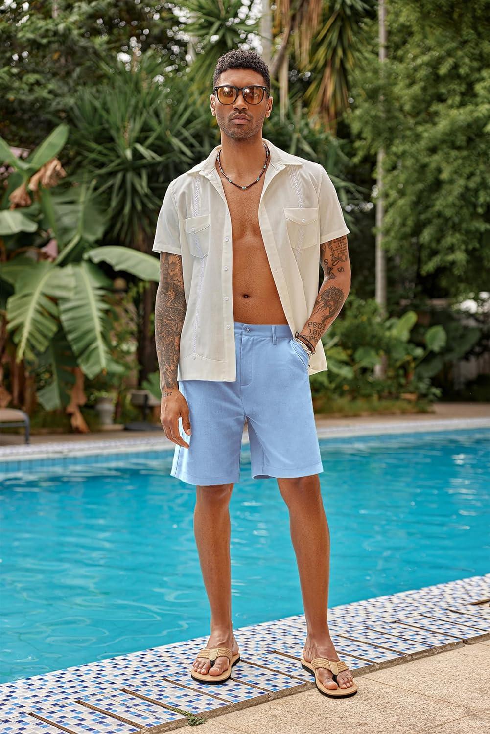 COOFANDY Men’s Casual Shorts Linen Flat Front Shorts Elastic Waist Summer Beach Shorts(Blue)