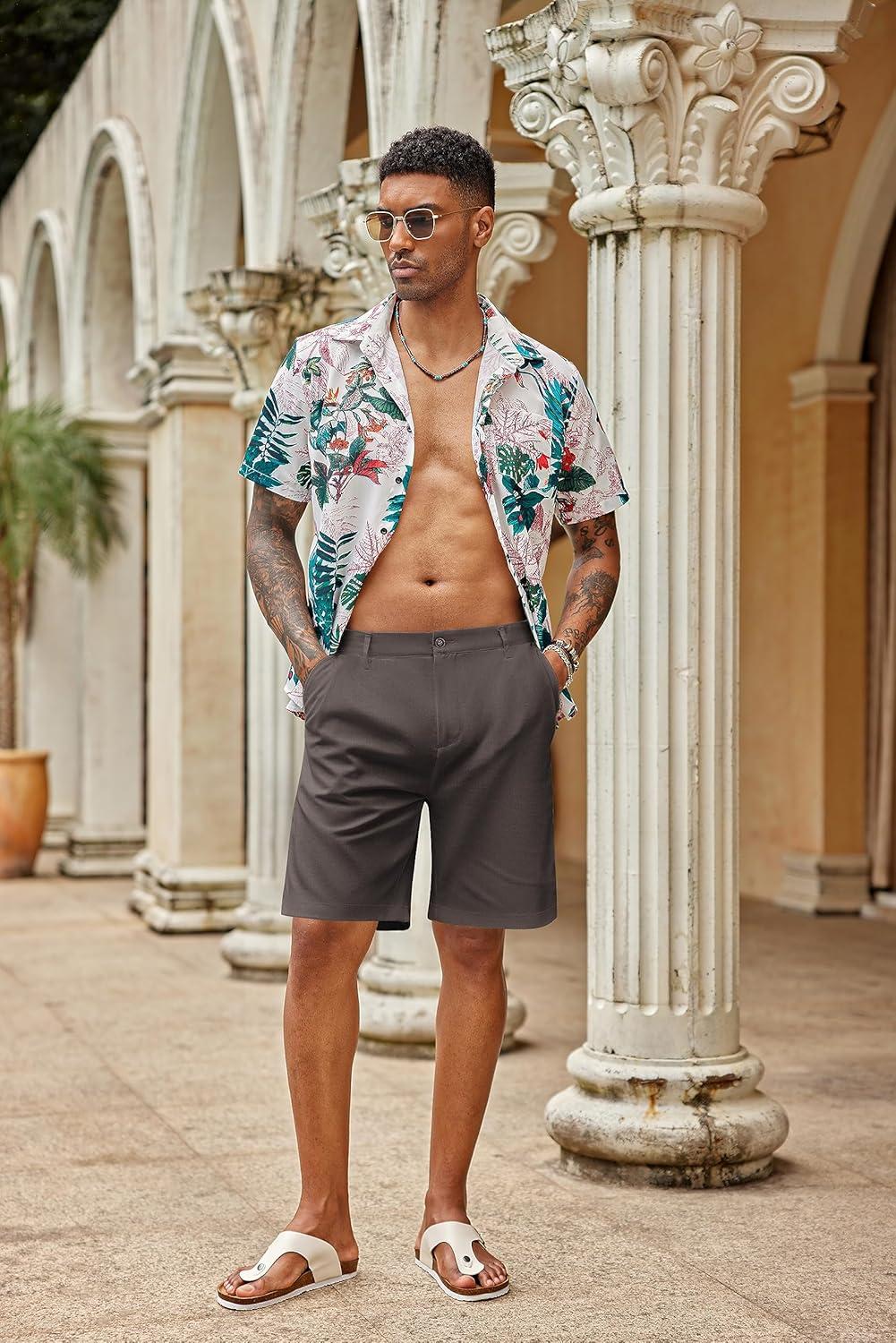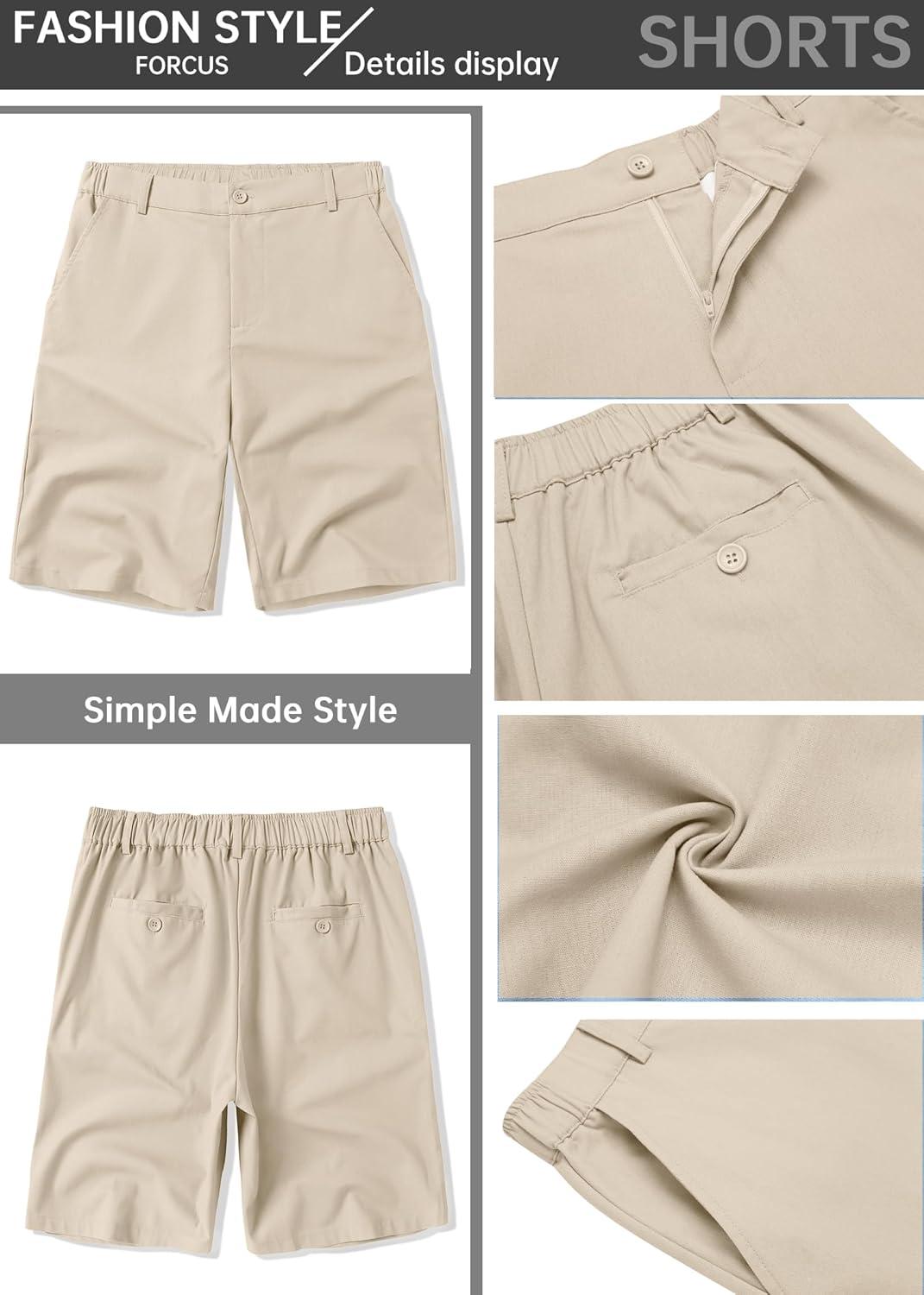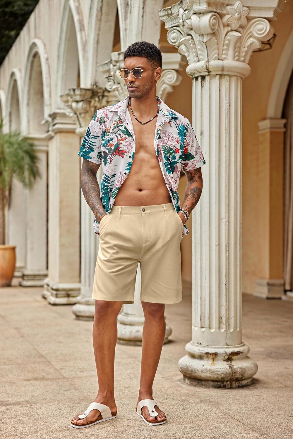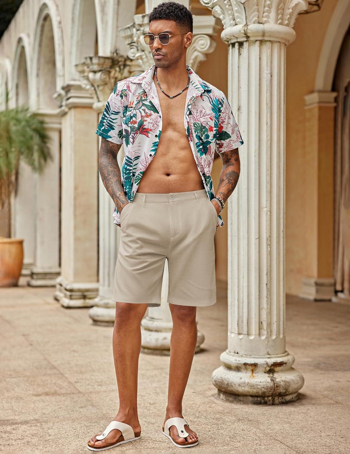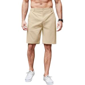 COOFANDY Men’s Casual Shorts Linen Flat Front Shorts Elastic Waist Summer Beach Shorts(Khaki)