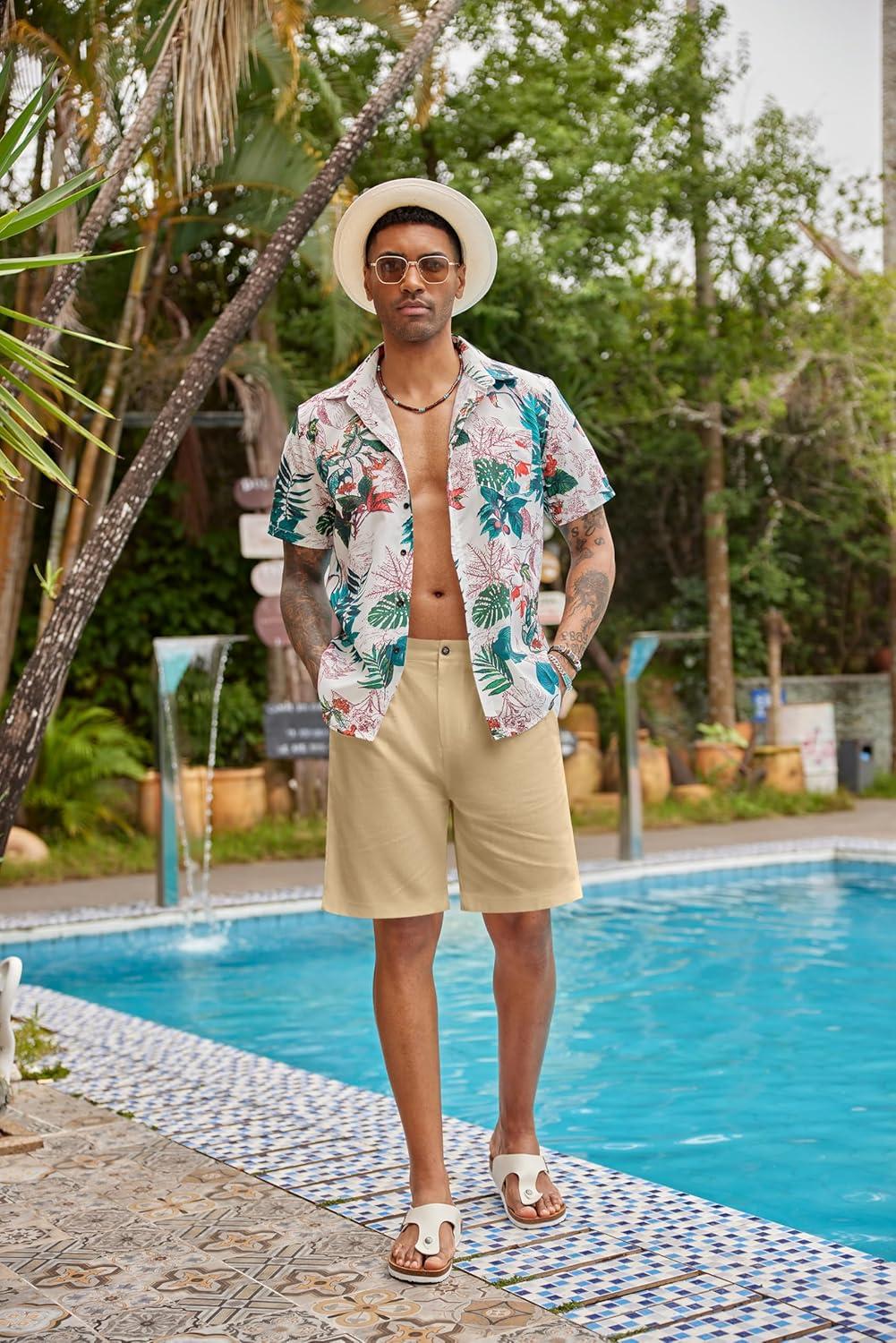 COOFANDY Men’s Casual Shorts Linen Flat Front Shorts Elastic Waist Summer Beach Shorts(A_white)