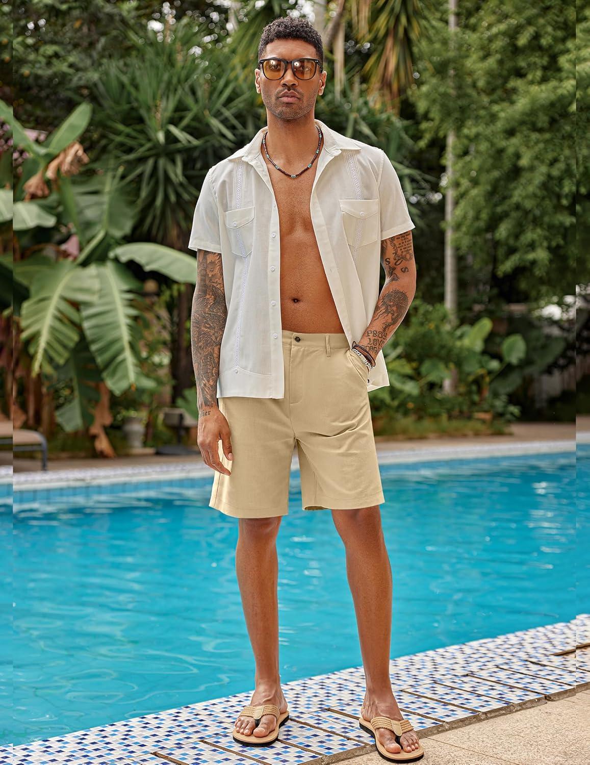 COOFANDY Men’s Casual Shorts Linen Flat Front Shorts Elastic Waist Summer Beach Shorts(Light Khaki)