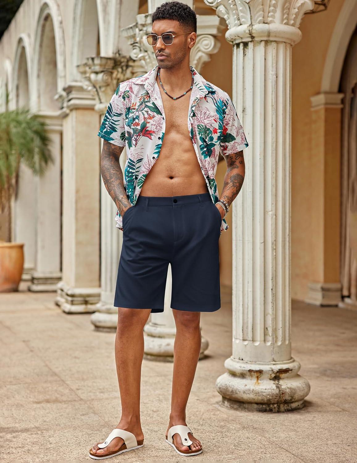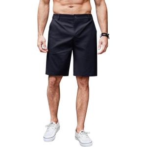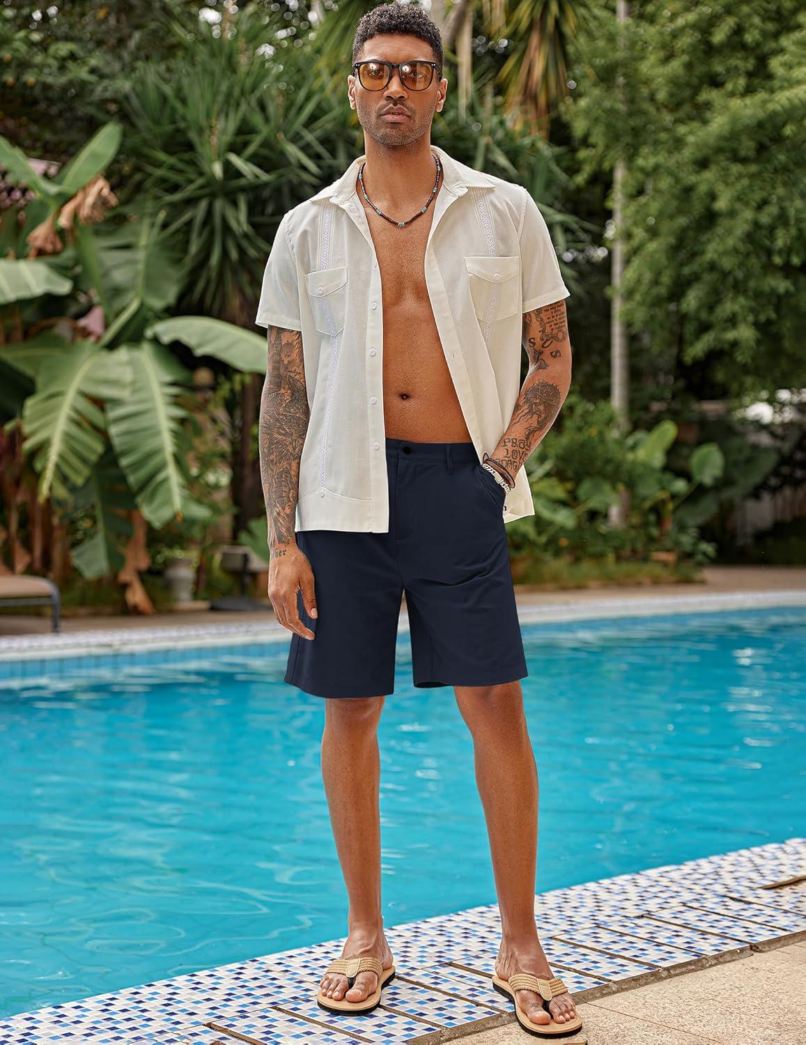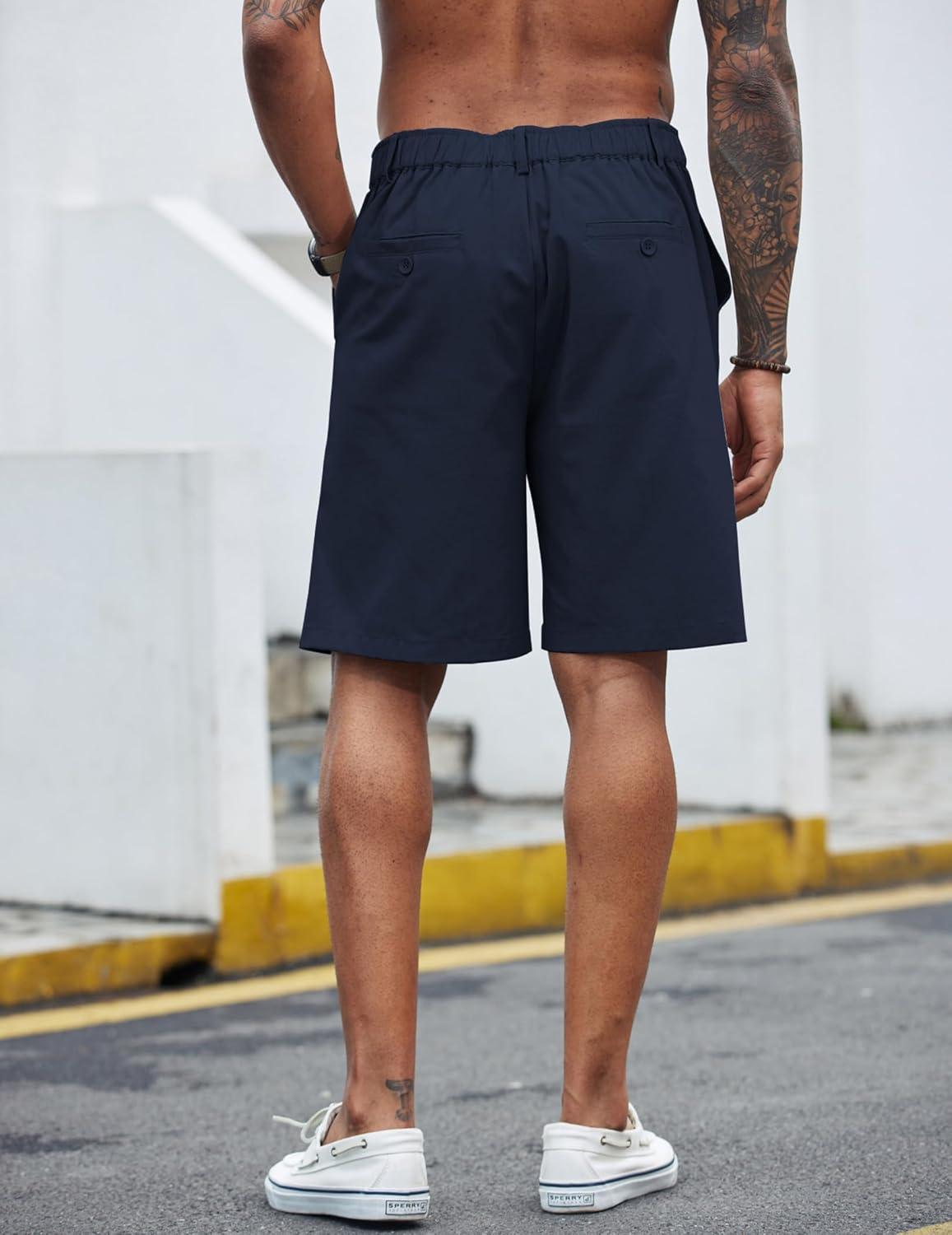 COOFANDY Men’s Casual Shorts Linen Flat Front Shorts Elastic Waist Summer Beach Shorts(Navy Blue)