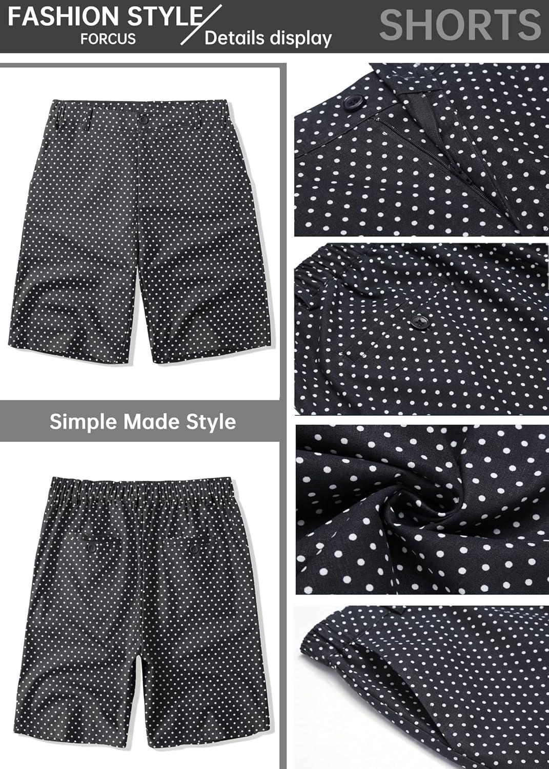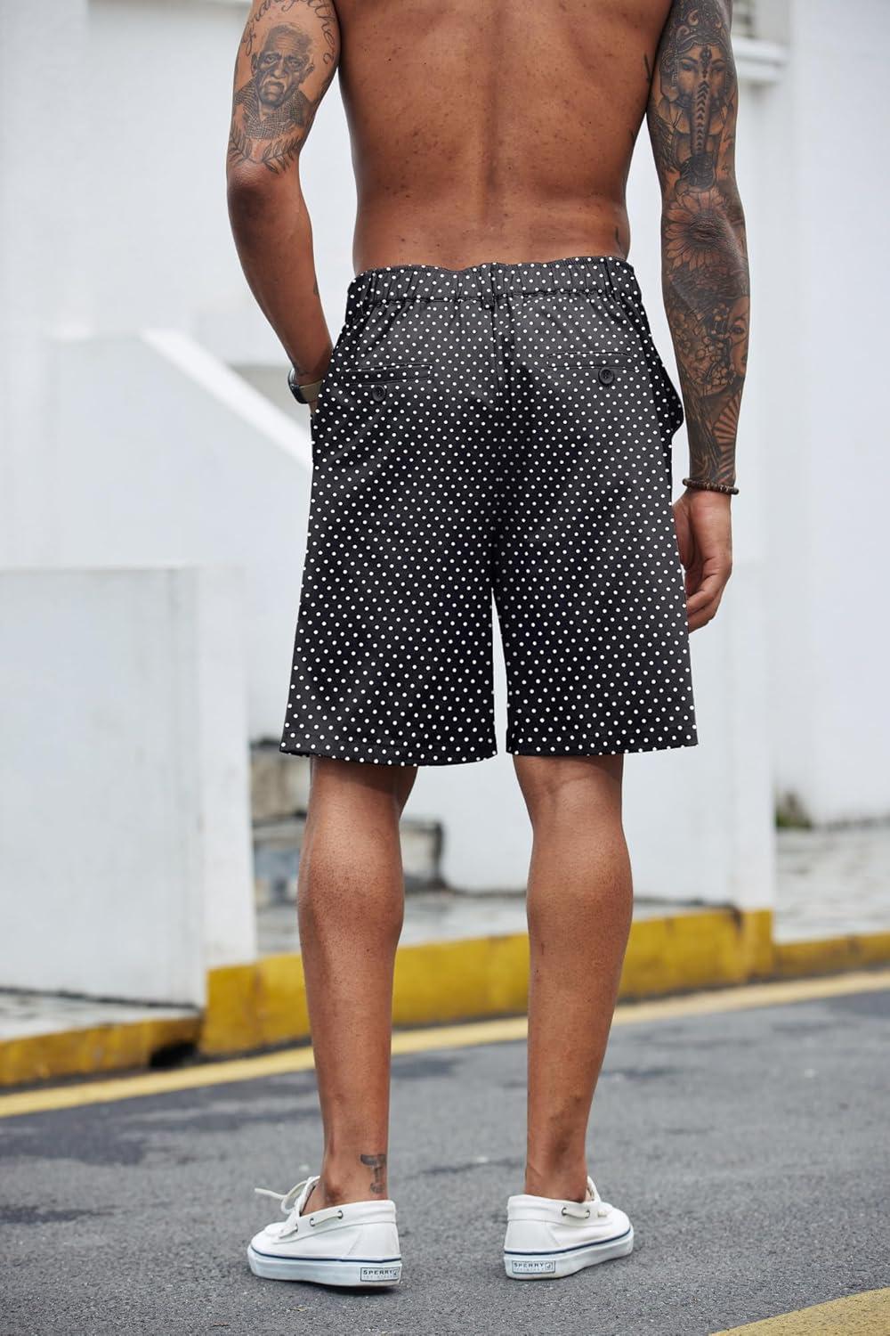 COOFANDY Men’s Casual Shorts Linen Flat Front Shorts Elastic Waist Summer Beach Shorts(Polka Dot)