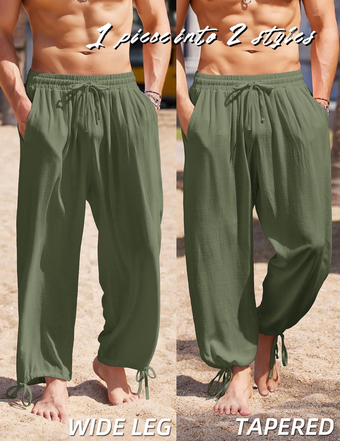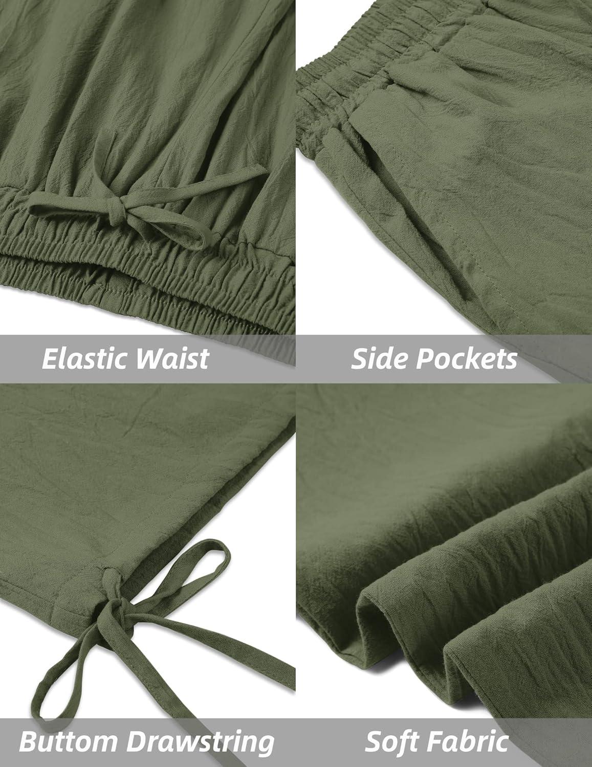 COOFANDY Men’s Cotton Linen Pants Casual Harem Pants Elastic Waist Beach Boho Yoga Trousers(Army Green)
