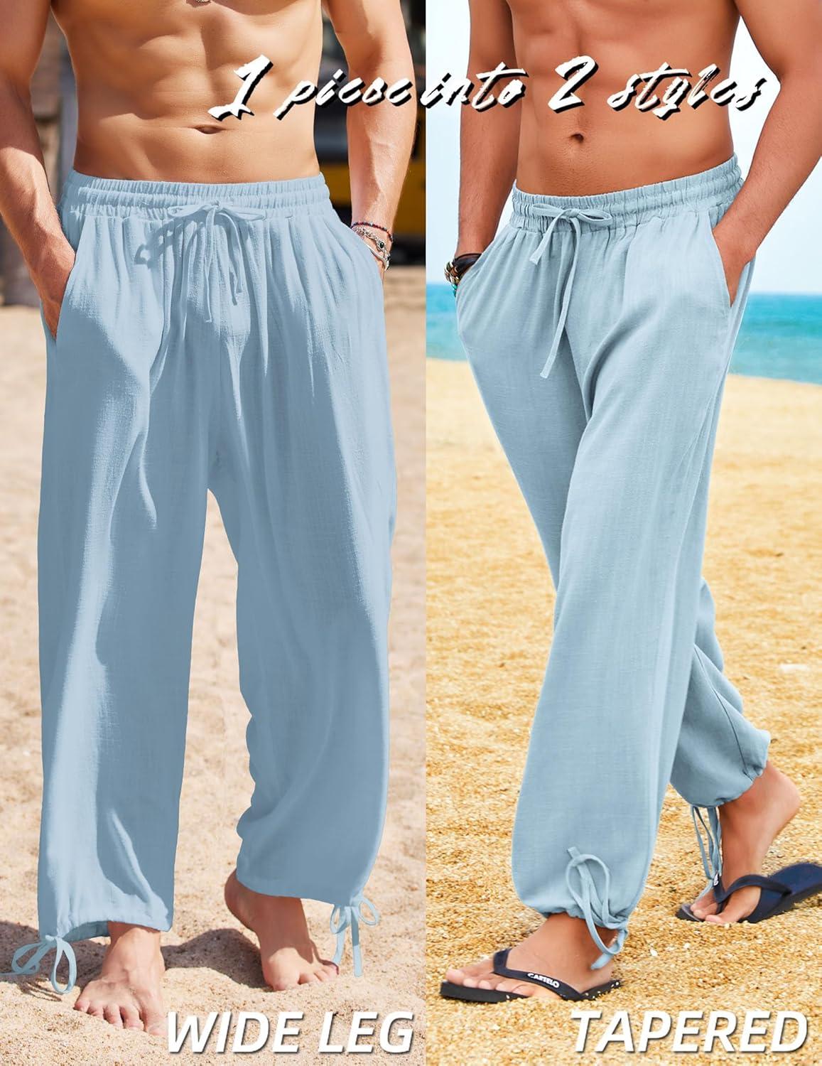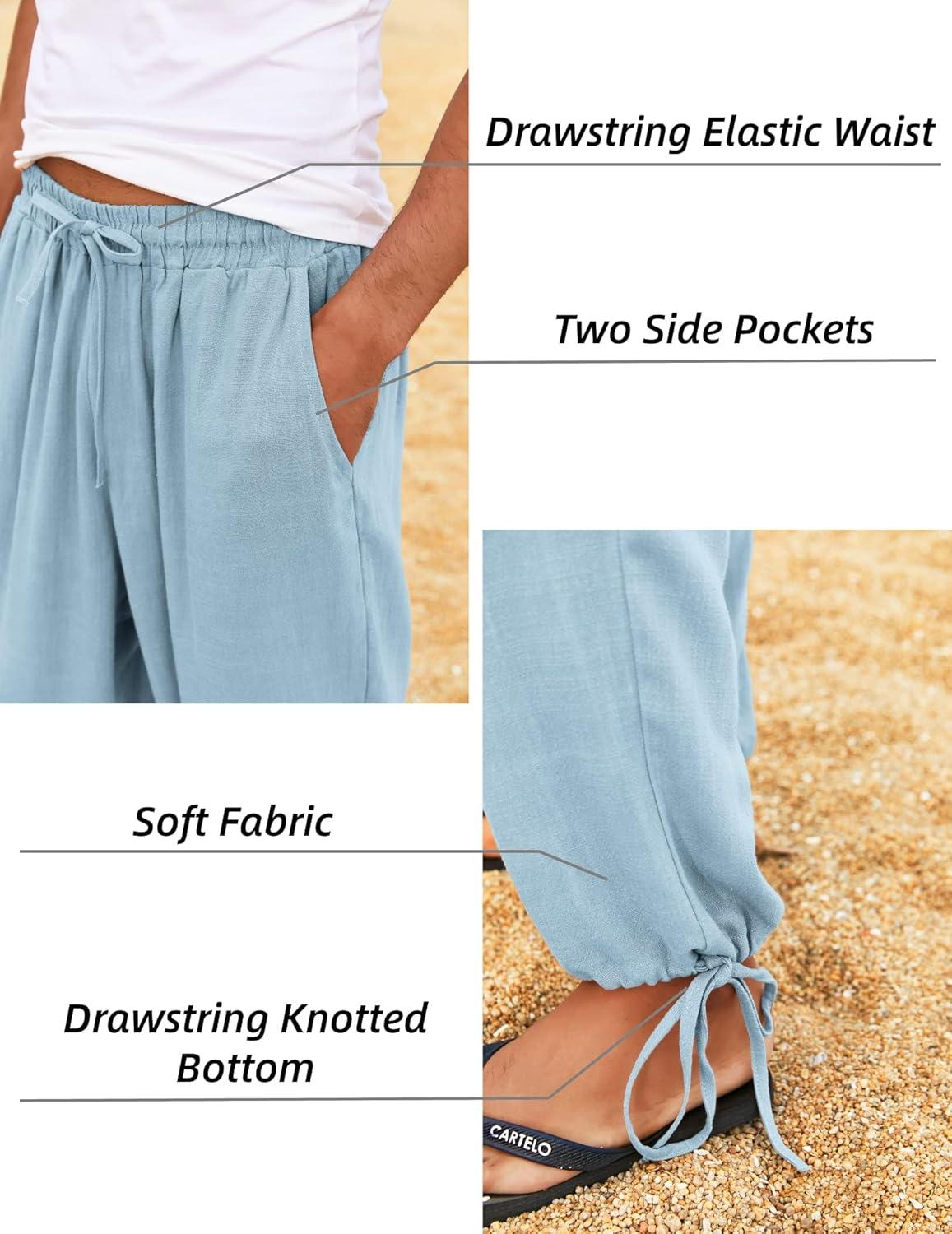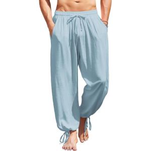 COOFANDY Men’s Cotton Linen Pants Casual Harem Pants Elastic Waist Beach Boho Yoga Trousers(Blue)