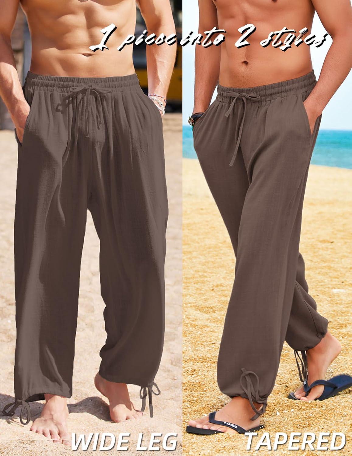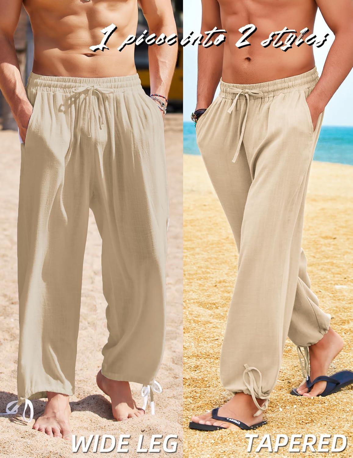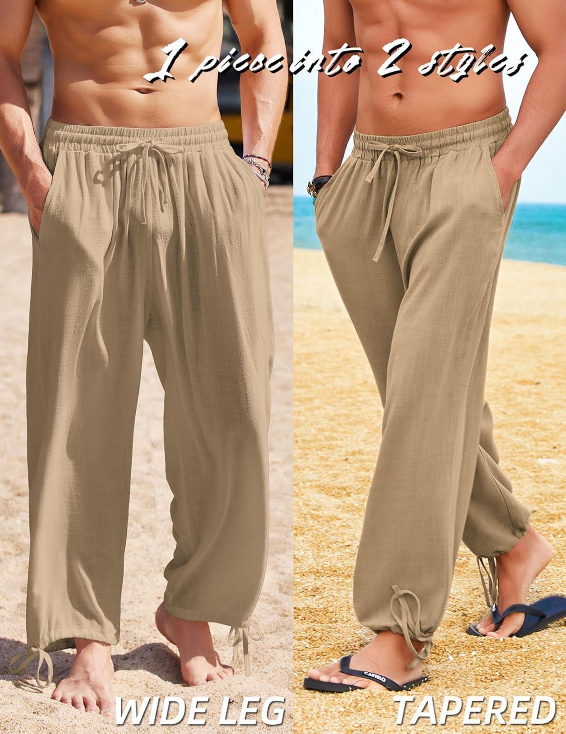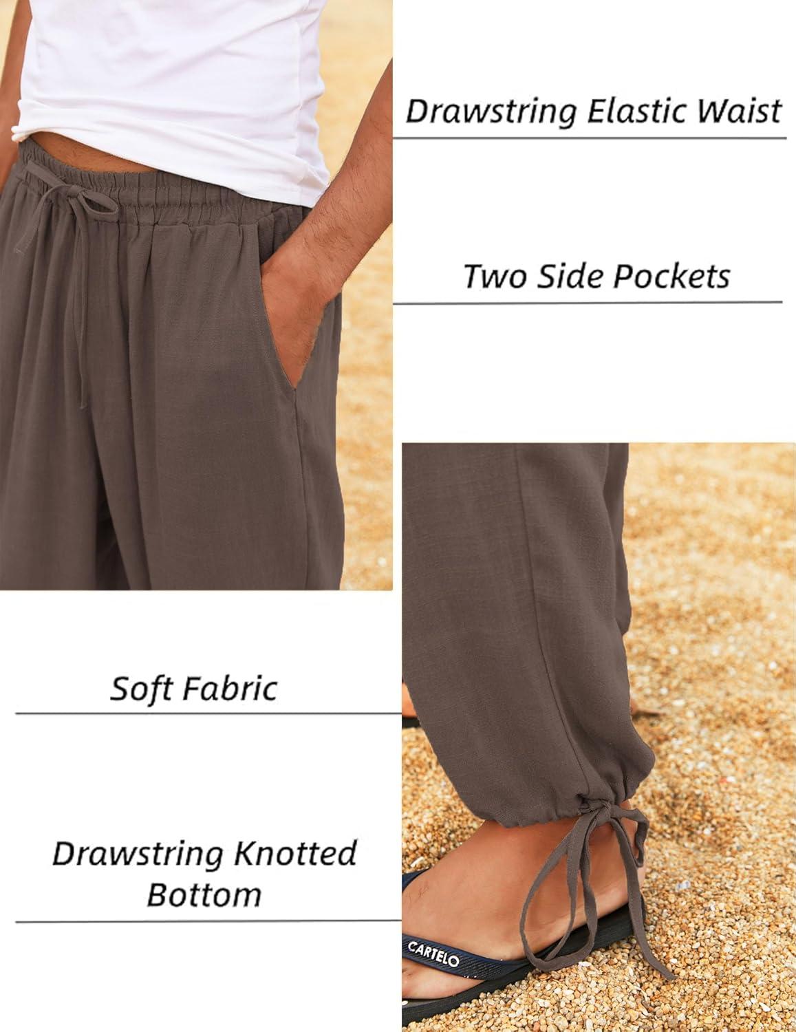 COOFANDY Men’s Cotton Linen Pants Casual Harem Pants Elastic Waist Beach Boho Yoga Trousers(Khaki)