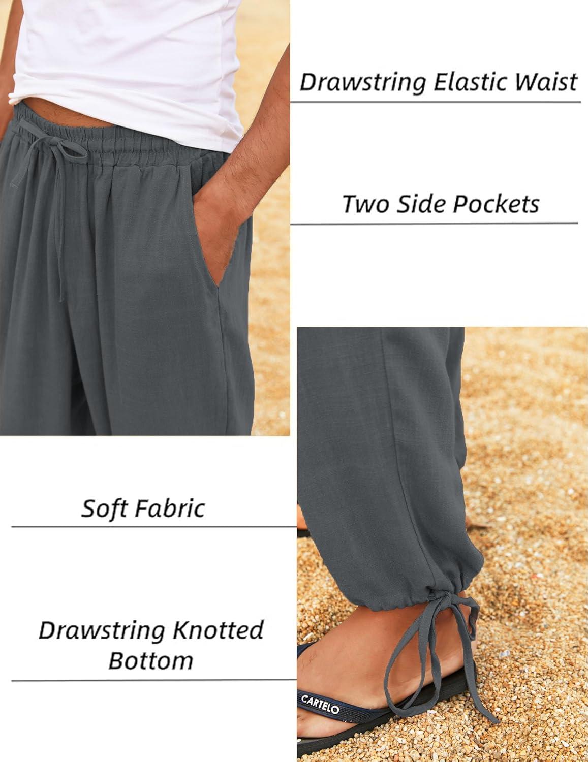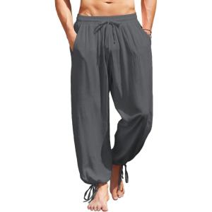 COOFANDY Men’s Cotton Linen Pants Casual Harem Pants Elastic Waist Beach Boho Yoga Trousers(Dark Grey)