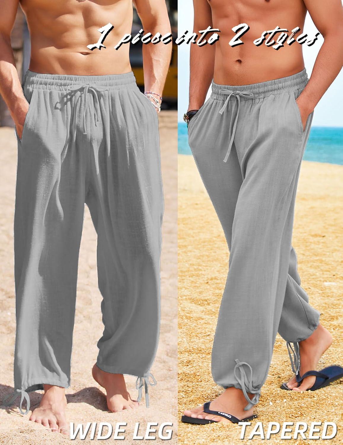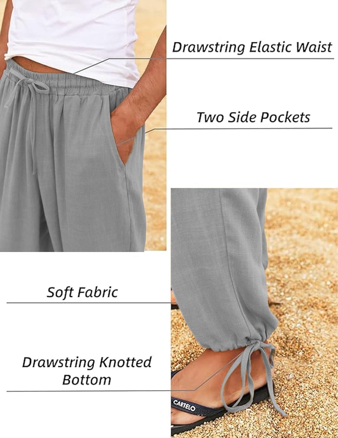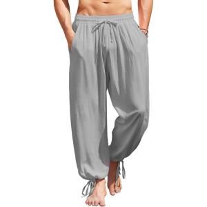 COOFANDY Men’s Cotton Linen Pants Casual Harem Pants Elastic Waist Beach Boho Yoga Trousers(Grey)