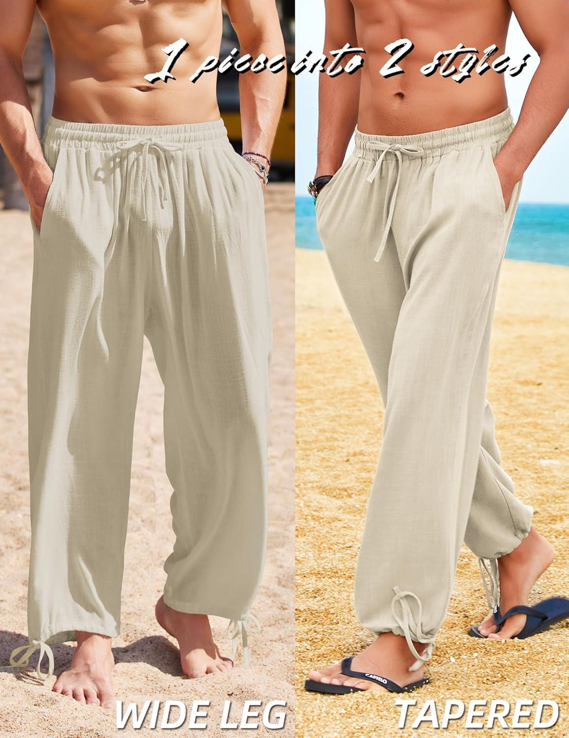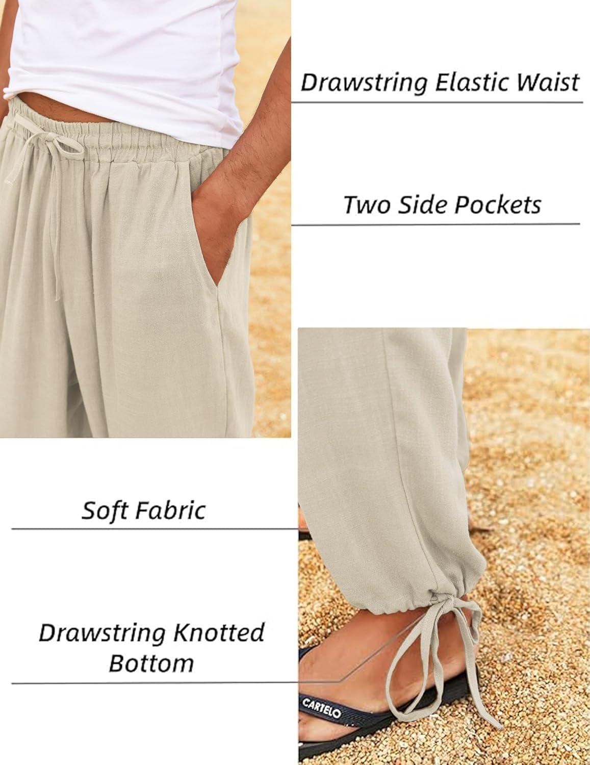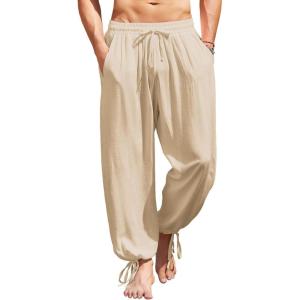 COOFANDY Men’s Cotton Linen Pants Casual Harem Pants Elastic Waist Beach Boho Yoga Trousers(Light Khaki)