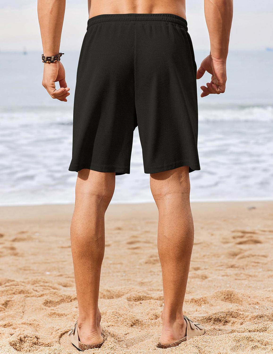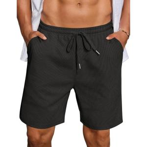 COOFANDY Mens Casual Waffle Shorts Elastic Waist Summer Beach Shorts 7″ Workout Sweat Shorts(Black)