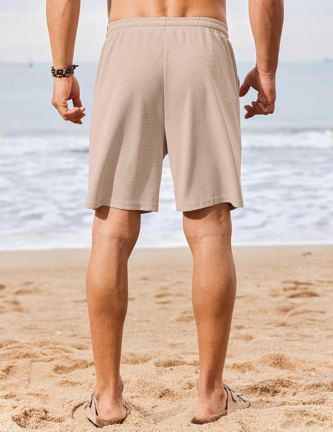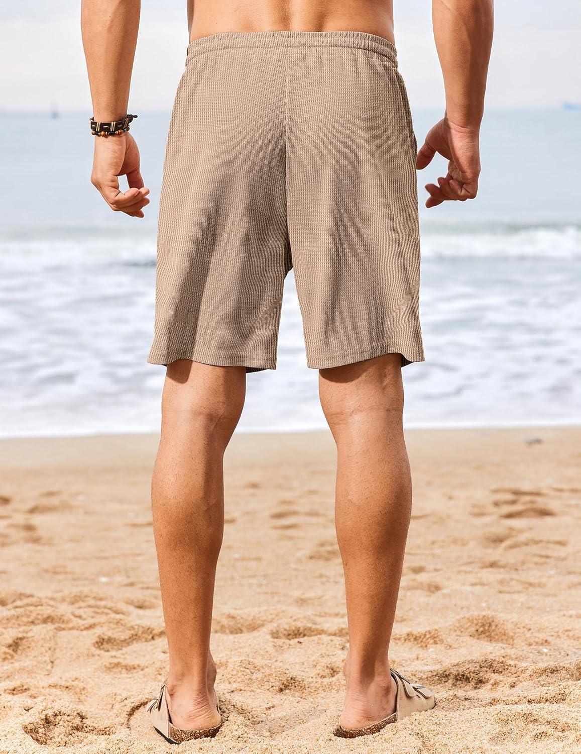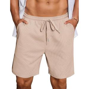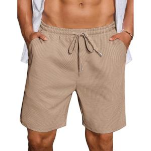 COOFANDY Mens Casual Waffle Shorts Elastic Waist Summer Beach Shorts 7″ Workout Sweat Shorts(Khaki)