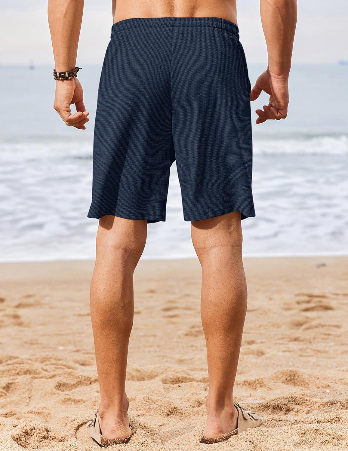 COOFANDY Mens Casual Waffle Shorts Elastic Waist Summer Beach Shorts 7″ Workout Sweat Shorts(Navy Blue)