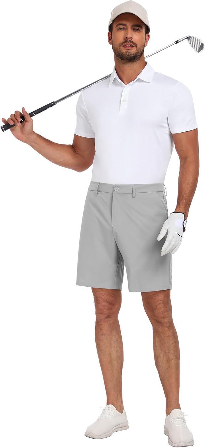 COOFANDY Mens Golf Dress Shorts Lightweight 7″ Hiking Shorts Casual Summer Shorts with Pockets(Light Grey)
