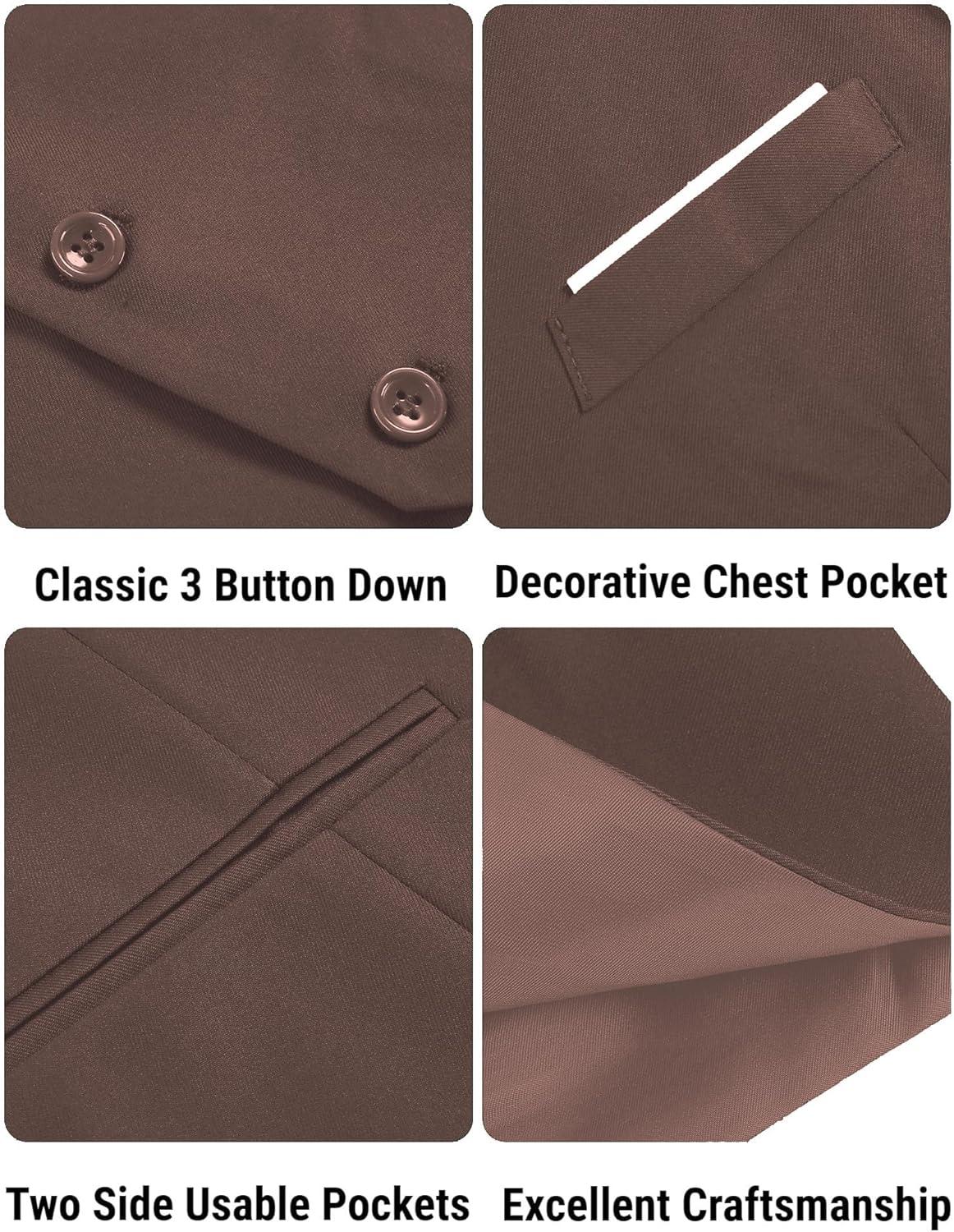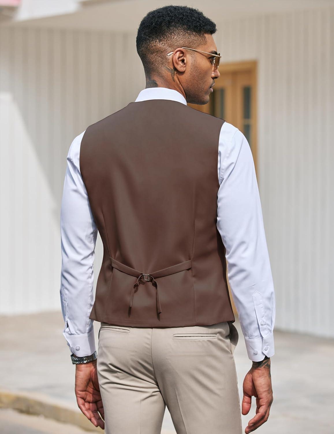 COOFANDY Men’s Suit Vest Slim Fit Formal Dress Waistcoat Casual Business Vests for Suit or Tuxedo(Dark Brown)