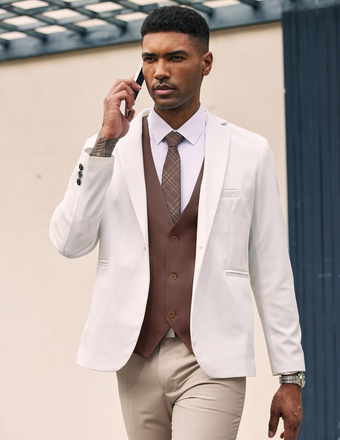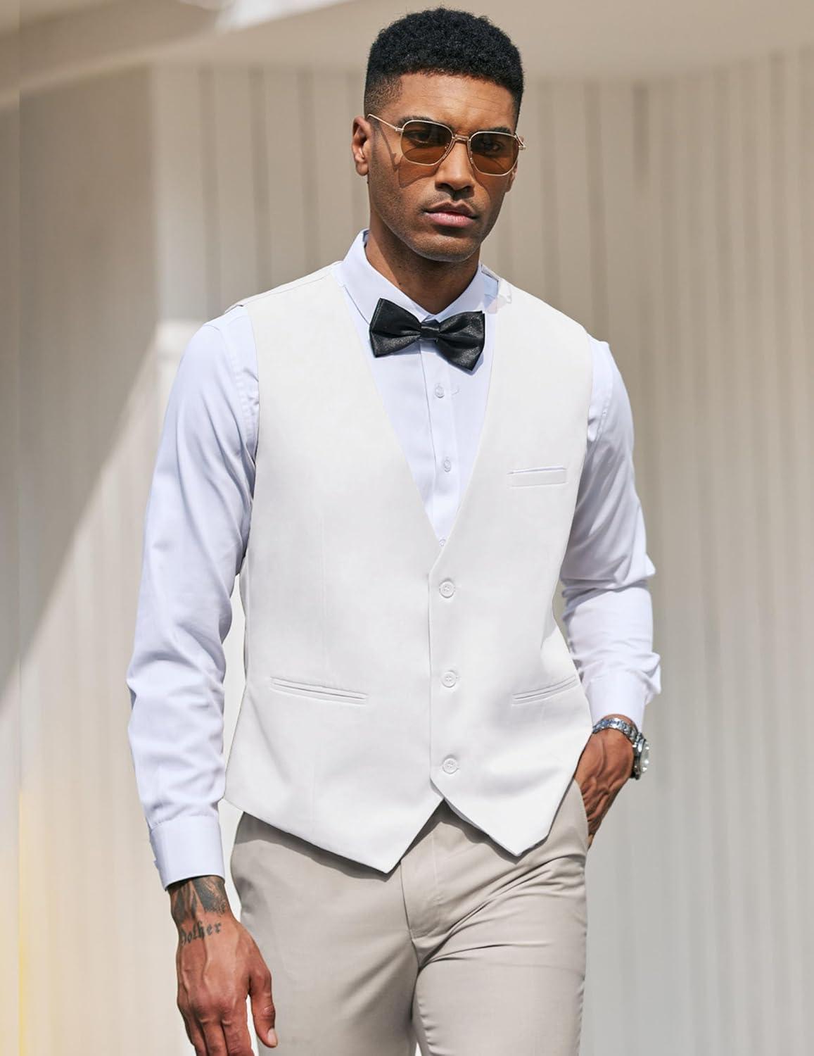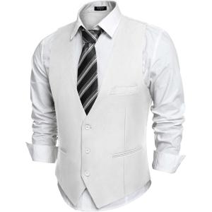 COOFANDY Men’s Suit Vest Slim Fit Formal Dress Waistcoat Casual Business Vests for Suit or Tuxedo(White)