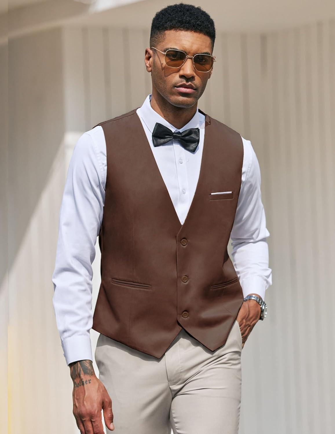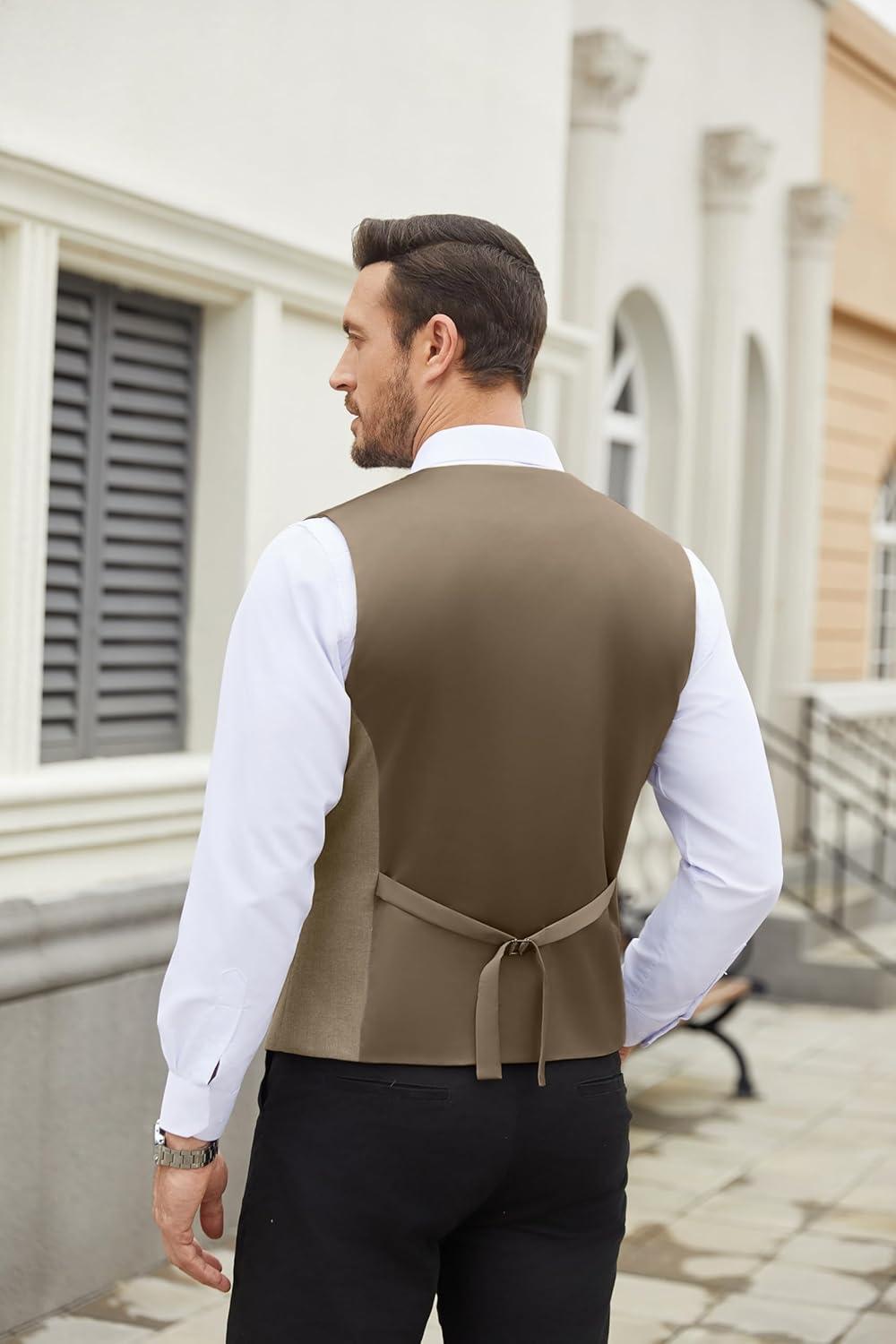 COOFANDY Men’s Suit Vest Slim Fit Formal Dress Waistcoat Casual Business Vests for Suit or Tuxedo(Coffee)